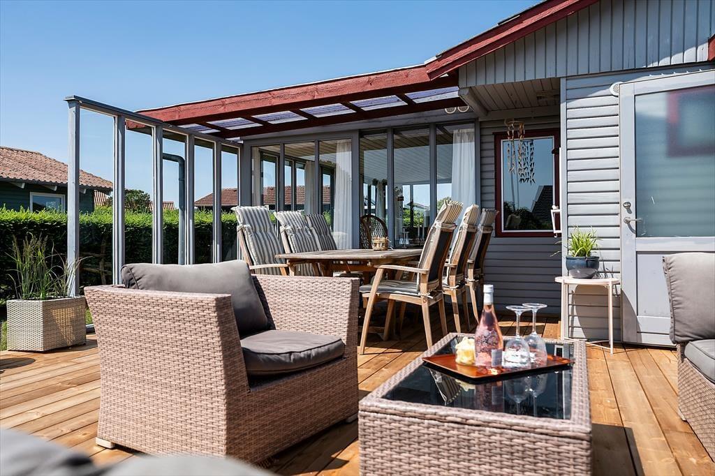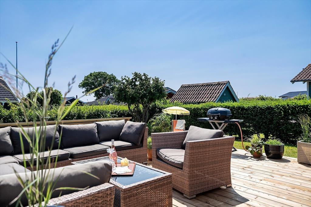 Dette hyggelige sommerhus ligger i et attraktivt ferieområde, blot 300 meter fra en dejlig sandstrand. Huset har en skøn terrasse med gode havemøbler, hvor I kan nyde solen og den friske luft i komfortable omgivelser. Når sulten melder sig, kan I tilberede feriens måltider på husets gasgrill og nyde dem under åben himmel. Den dejlige have indbyder både til leg og afslapning.