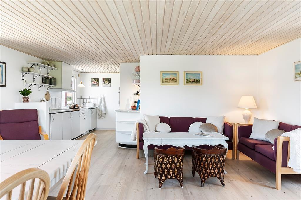 Vi byder velkommen til dette charmerende sommerhus i klassisk sommerhusstil. Her kan en familie på op til 6 personer nyde en dejlig ferie i skønne rammer. Køkkenet har en god størrelse og indeholder alt det nødvendige til ferien, herunder opvaskemaskine. Det er funktionelt og giver god plads til at tilberede feriens måltider, og det ligger i åben forbindelse med den store stue, der både rummer en spiseafdeling og et hyggeligt sofahjørne. Fra stuen er der adgang til en udestue samt terrassen, hvor I kan tilbringe mange hyggelige timer med brætspil eller gode samtaler.