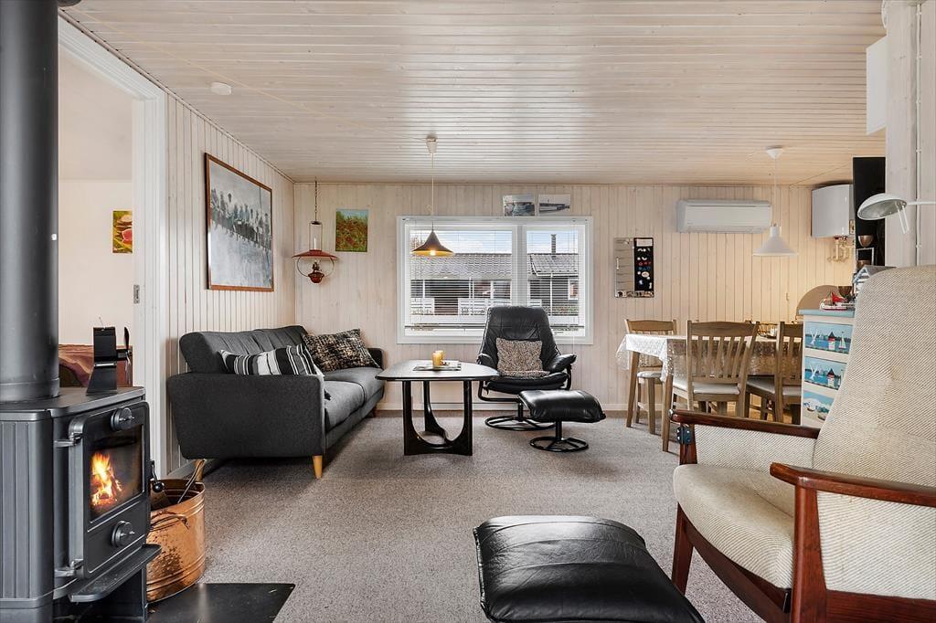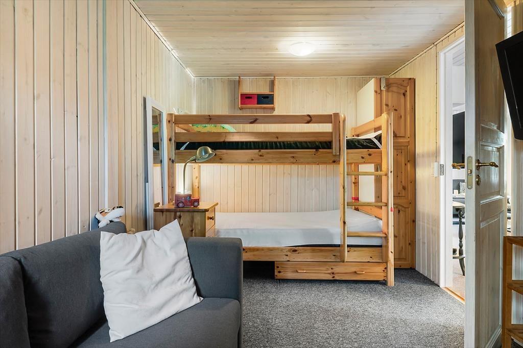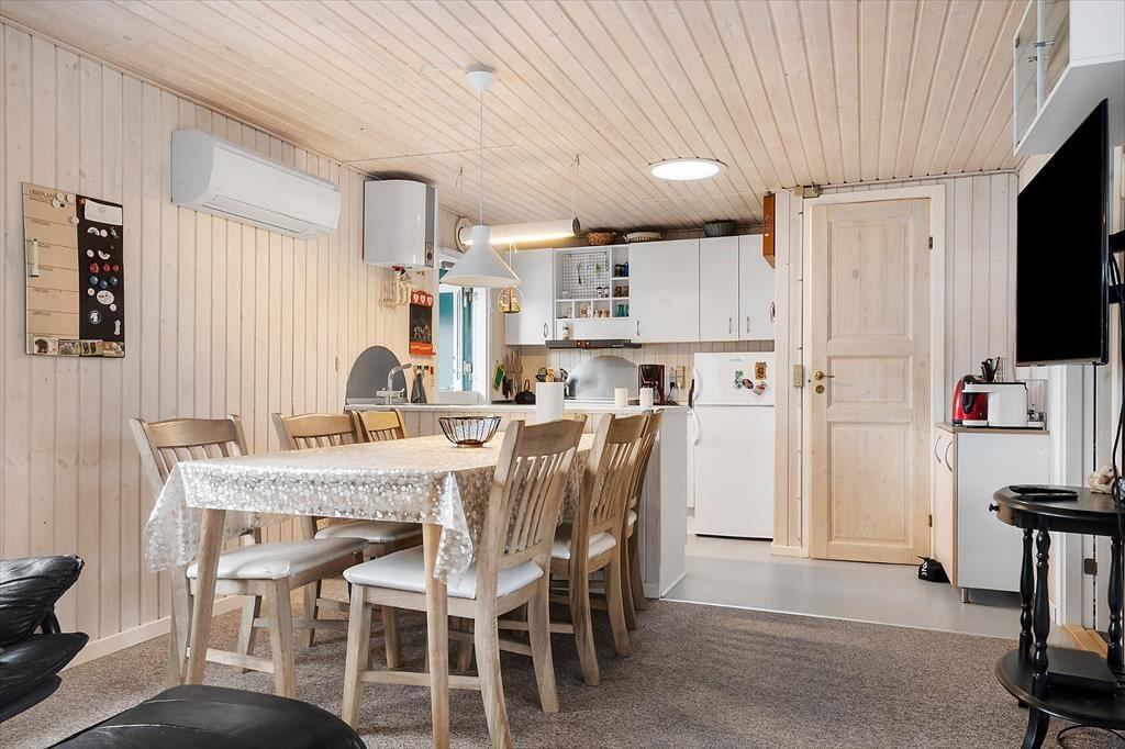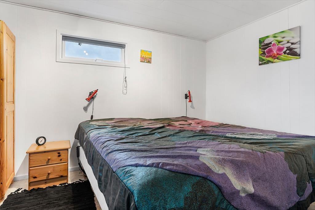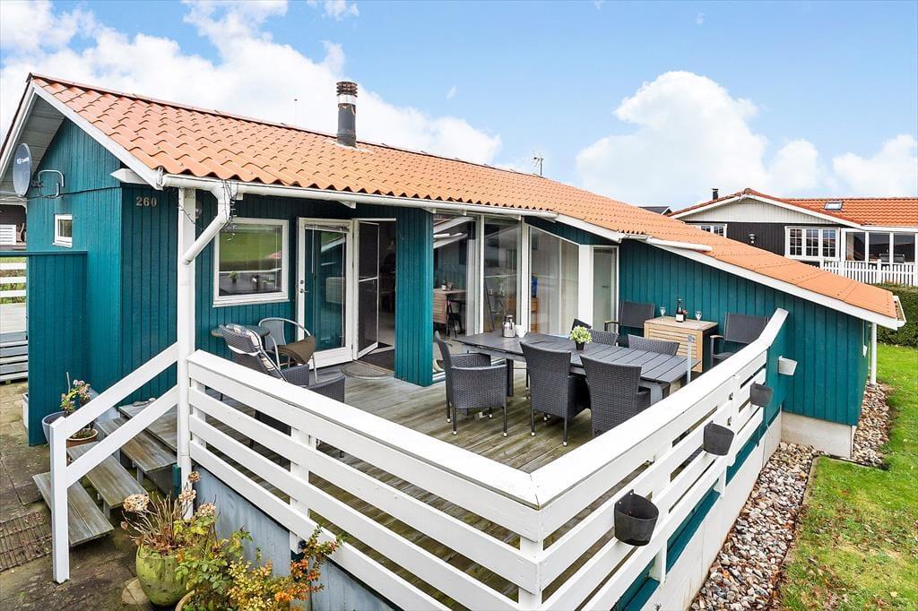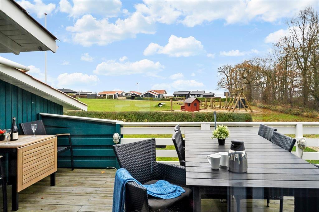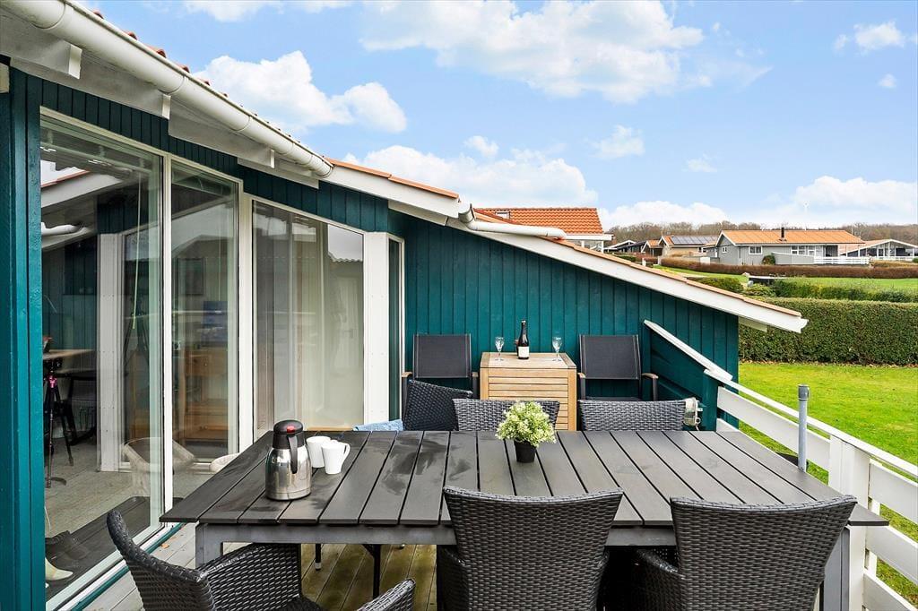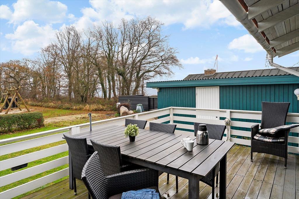 Udendørsområdet byder på en skøn terrasse. Den rummelige have med græsplæne er ideel til leg, spil og solbadning. Slap af i de komfortable solstole og nyd roen. Fra terrassen kan du beundre udsigten over sommerhusområdet, legepladsen samt et lille havkig. Ved ankomst kan du parkere bilen i indkørslen, som ligger lige op ad huset, så du nemt kan komme tørskoet indenfor. Her er der masser af plads til at nyde livet og den friske luft i fulde drag.