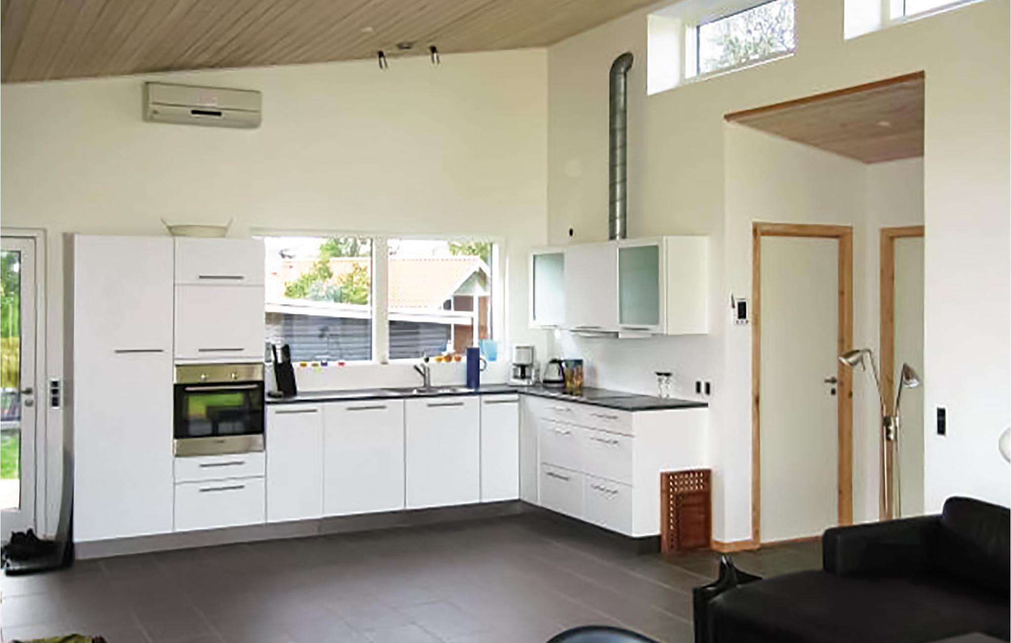 Virkelig flot arkitekttegnet feriehus med havudsigt, stor terrasse med gode havemøbler og en rigtig flot stue med loft til kip, så rummet indbyder til hyggelige stunder med familien og venner. Køkkenet er veludstyret, der er tre gode soveværelser, de to af værelserne er indrettet med dobbeltsenge og et med to køjesenge, sådan at børnene får deres eget soveværelse, så de inden sengetid kan hygge og tale om dagens oplevelser. Huset indeholder desuden to badeværelser, det ene er indrettet med spabad og sauna. Juelsminde ligger en kort køretur fra huset. Her kan den charmerende lystbådehavn og den helt specielle atmosfære nydes, enten med en stor god isvaffel eller på en af restauranterne der ligger ud til havnen. Har I mod på lystfiskeri er der mange muligheder både i havet og put and take søerne i nærheden. Hvad med en cykeltur i det smukke landskab? Måske en tur til Snaptun og med den lille færge til Hjarnø, det er en rigtig fin udflugt, hvor hele familien kan være med. Der er ikke langt til de store jyske attraktioner Legoland og Givskud Zoo - kun en køretur på ca. 45 minutter fra huset.