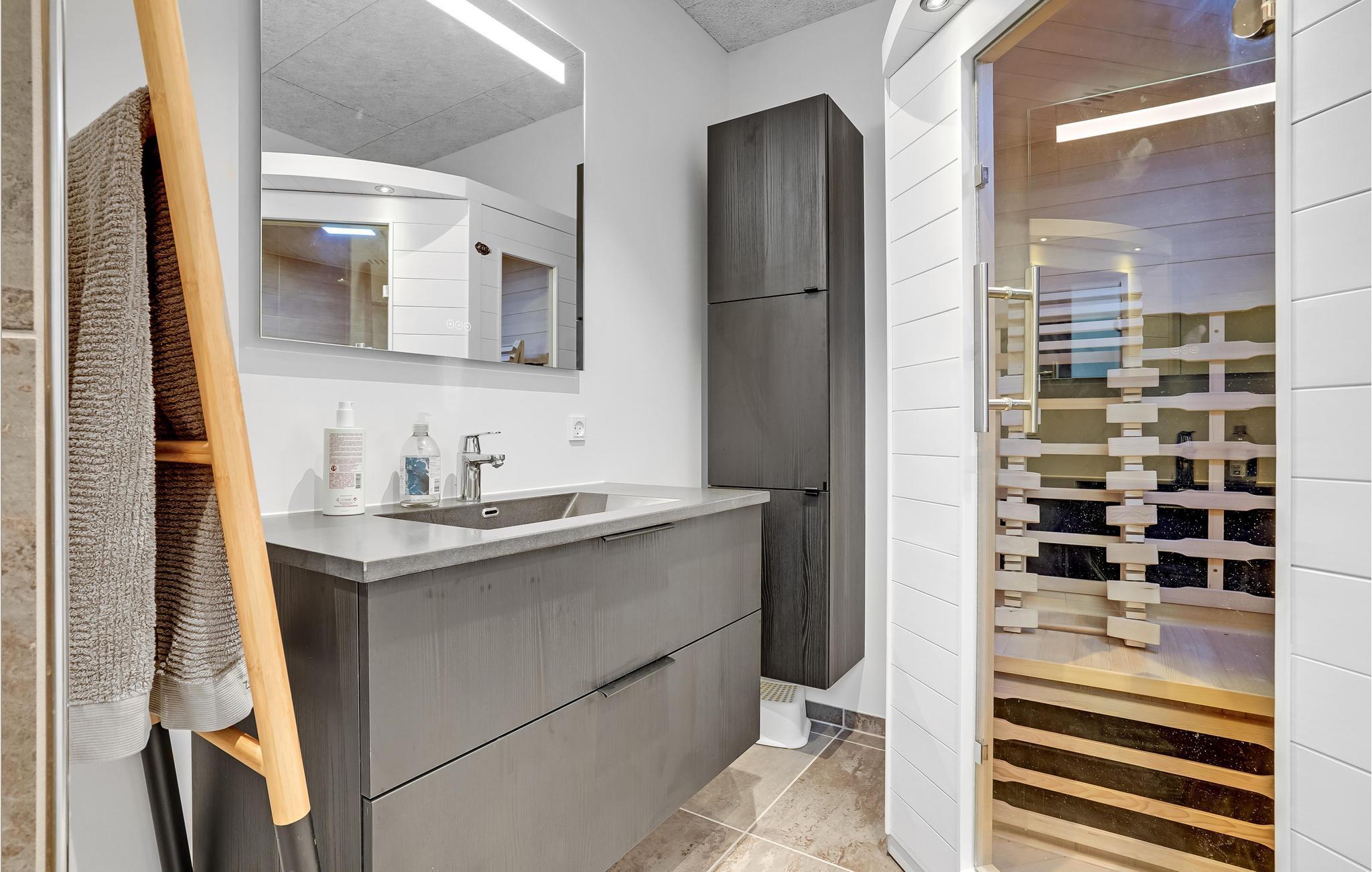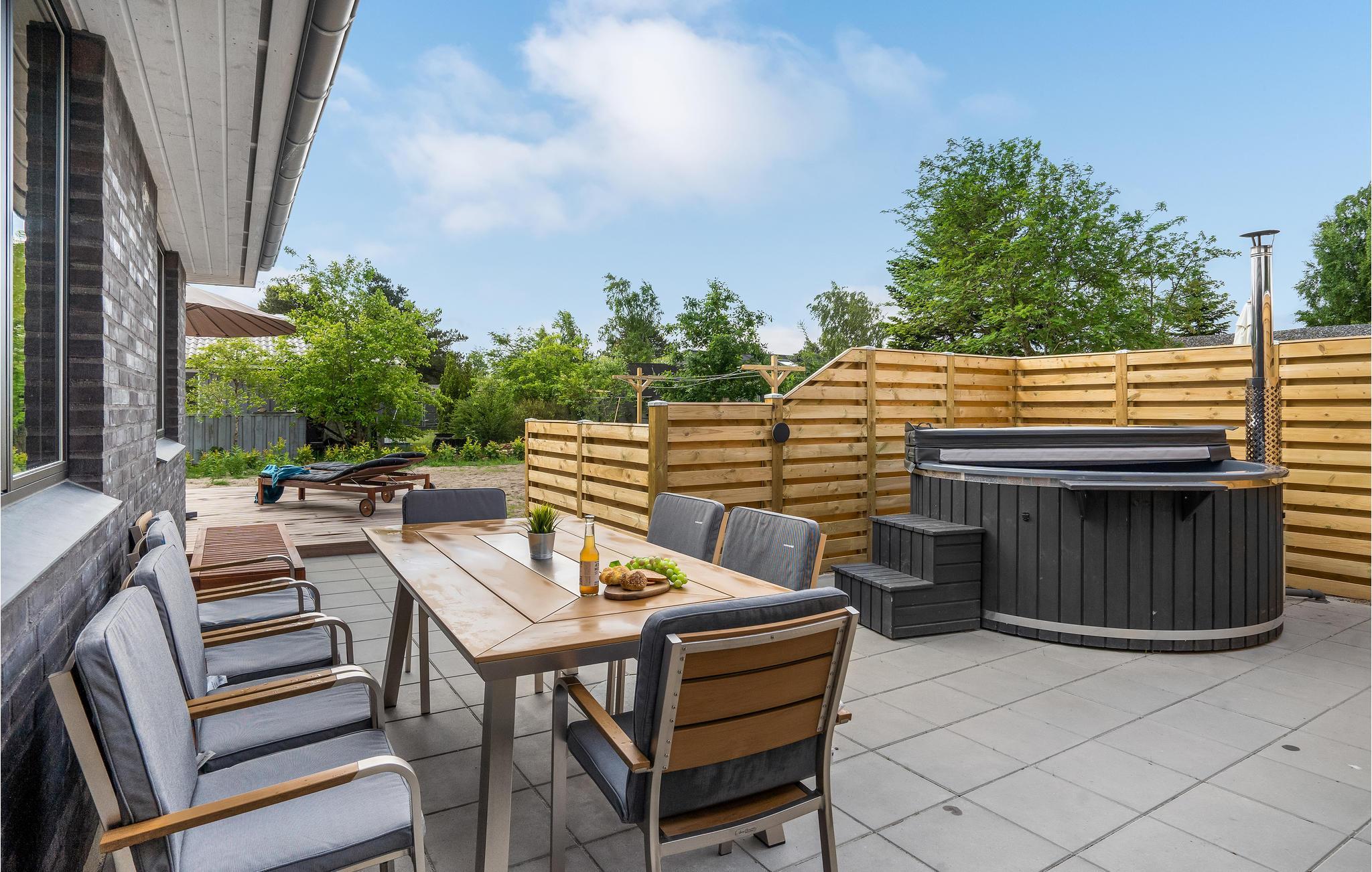 Derhjemme kan I virkelig slappe dejligt af og have det sjovt. Her kan I tilberede lækre feriemåltider i husets veludstyrede køkken, konkurrere i bordfodbold og bordtennis, se gode film og serier via Chromecast, spille indendørsspil og Playstation eller pleje kroppen i husets sauna. Udenfor kan I sole jer fra liggestole, grille på den store terrasse, og hvad med at afslutte en skøn feriedag med at sidde og nyde en drink i vildmarksbadet?