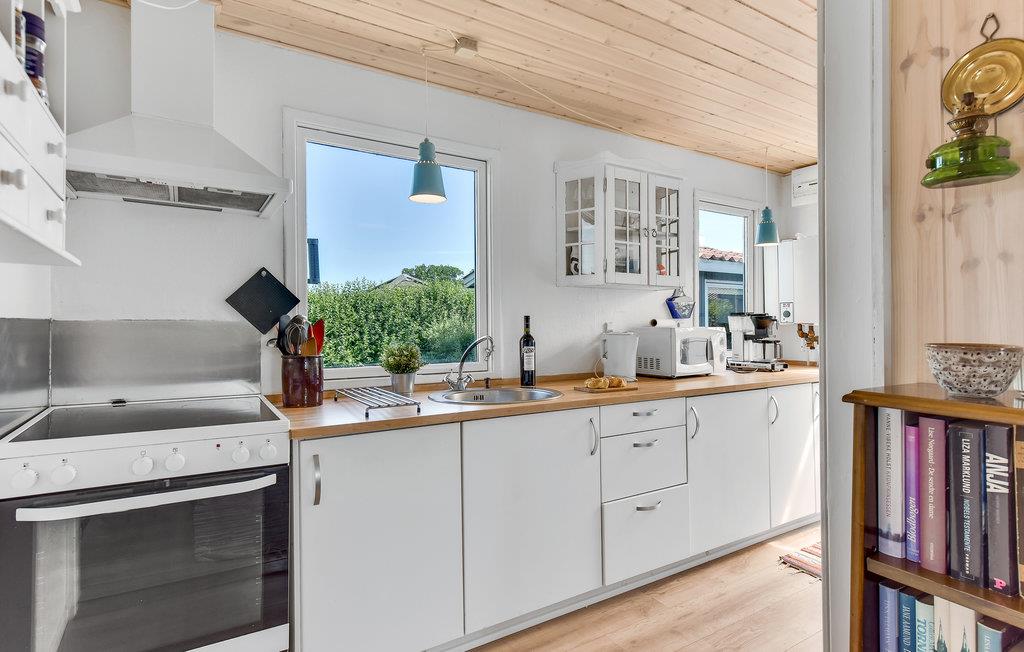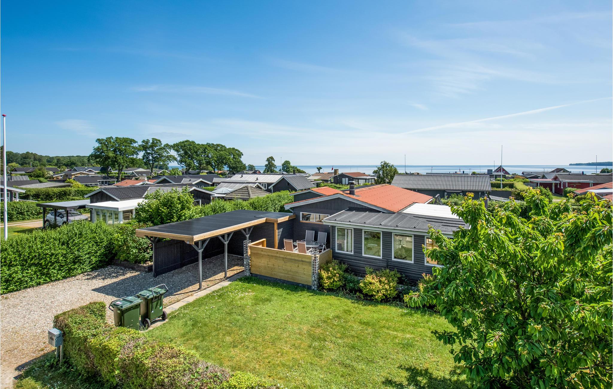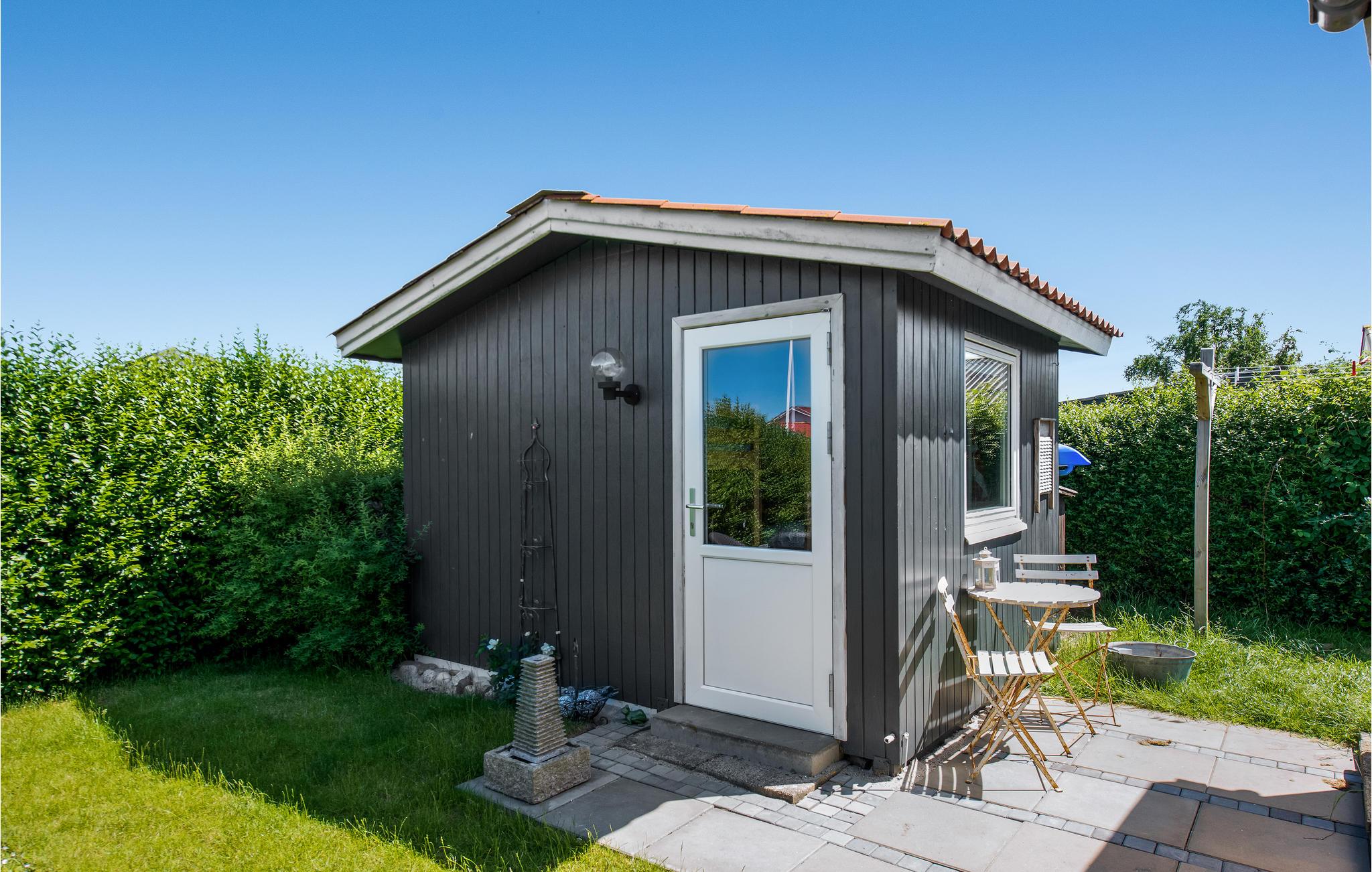 Tæt på en virkelig god og børnevenlig sandstrand og i et opvokset sommerhusområde ligger dette hyggelige sommerhus. Der er flere gode terrasser ved huset, to med overdækning og en af de overdækkede er lukket på alle sider som en havestue. Rummet vil helt sikkert blive brugt til hygge, at spille spil, nyde aftensmaden på en kølig aften eller måske som børnenes legerum. Huset er indrettet med en pæn stue med en god spiseplads og en sofagruppe tæt ved brændeovnen, og hvor det godt udstyrede køkken ligger i forlængelse af stuen. Der er to gode soveværelser i selve sommerhuset samt et anneks med yderligere fire sovepladser i etagesenge. Annekset ligger tæt på huset blot et smut over terrassen, de lidt større børn vil helt sikkert synes om, at have helt deres eget "hus". Der er to badeværelser i alt - et i huset og et med adgang fra den overdækkede terrasse. Ved huset findes desuden en carport, så jeres bil kan stå i ly for sol og regn.
