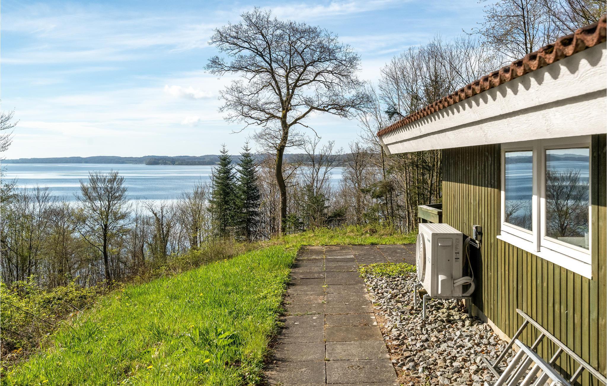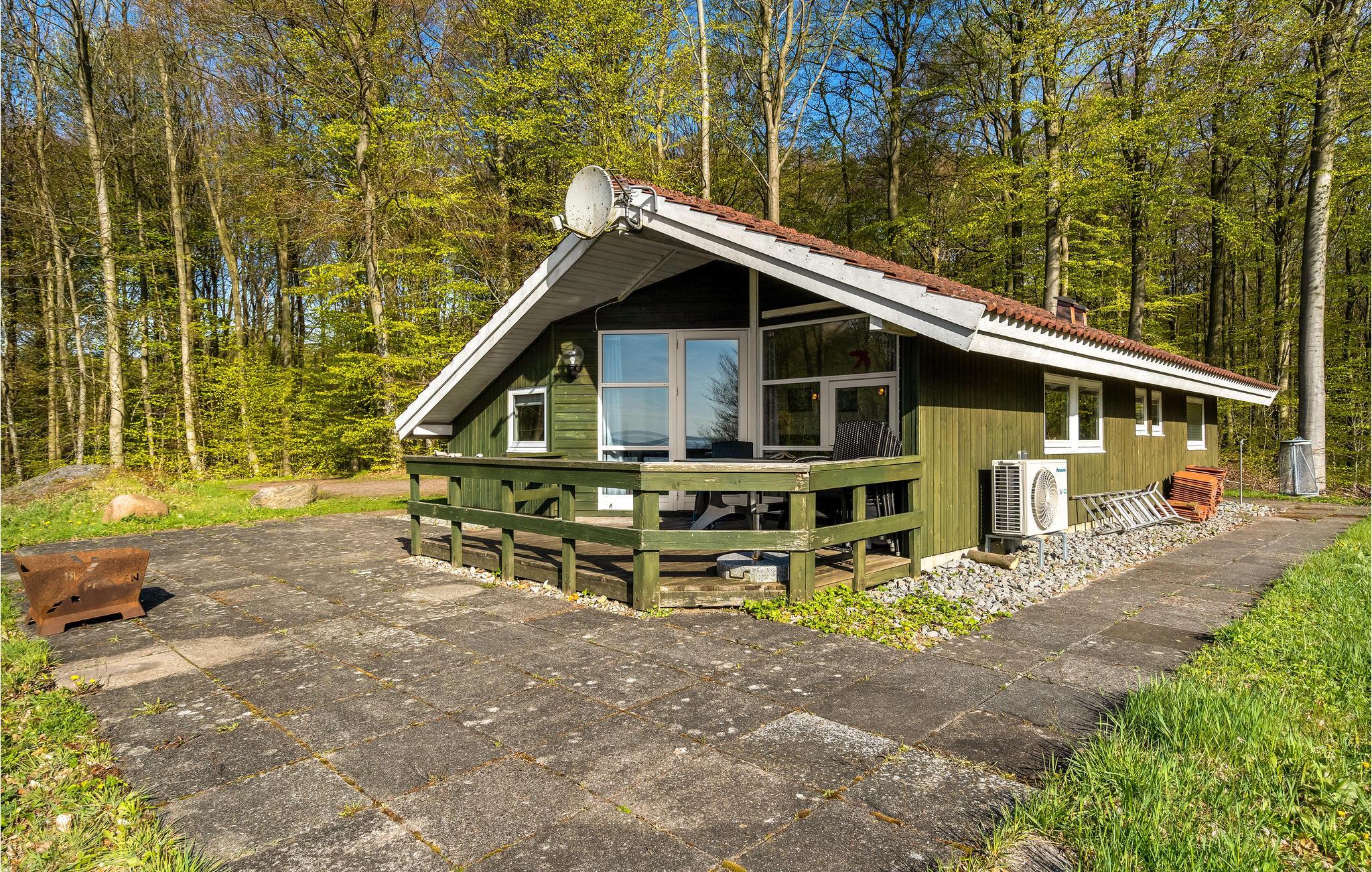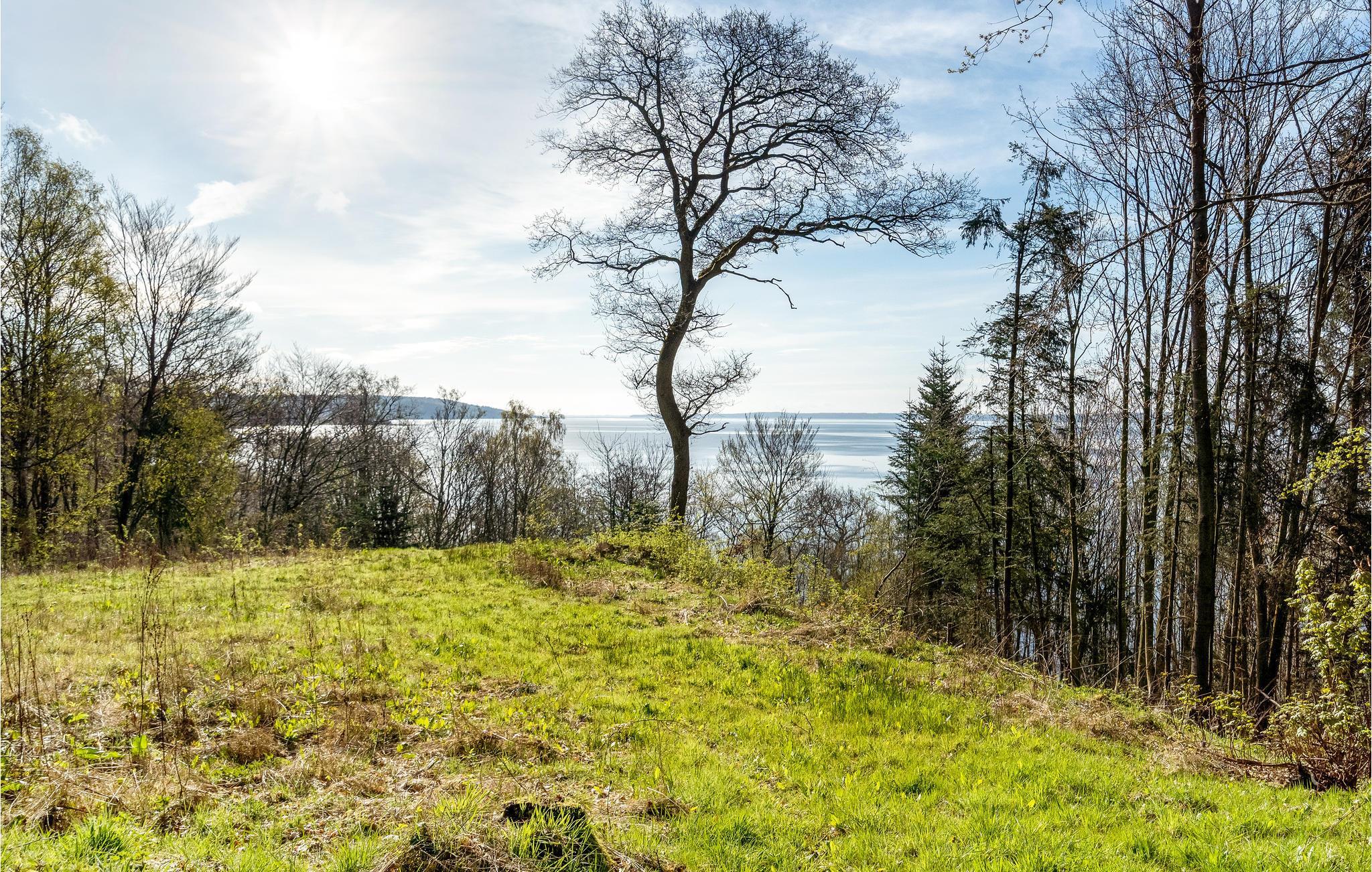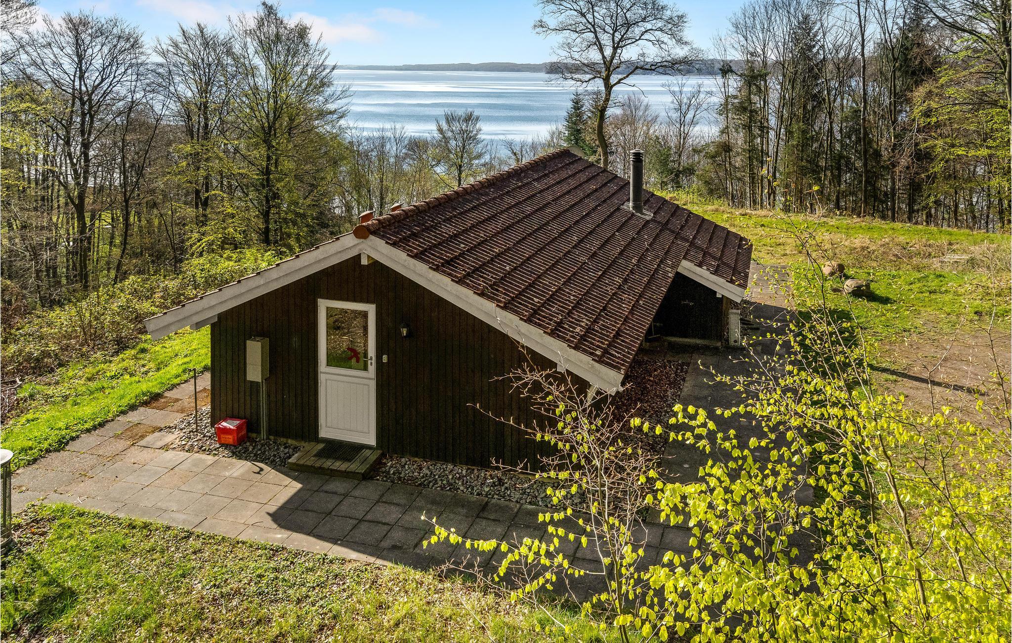Autentisk feriehus i skoven med udsigt over Vejle Fjord, tæt på natur og aktiviteter.