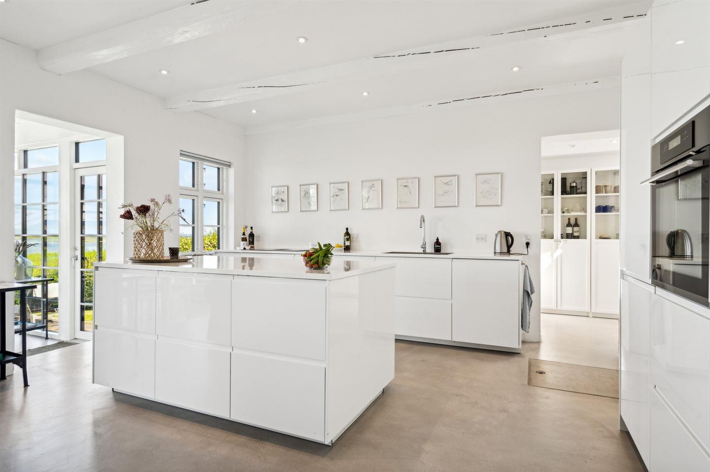 Køkkenet er udstyret med 1 køleskab. Der er 4 induktionskogeplader, varmluftovn, mikrobølgeovn samt opvaskemaskine.