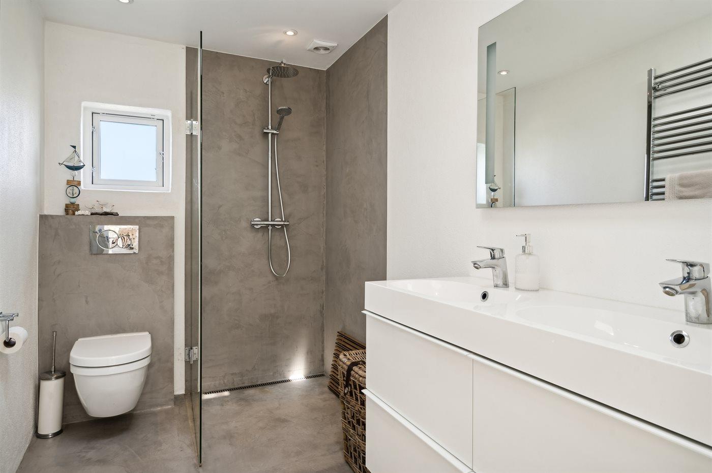 Der er 2 badeværelser med bruseniche og 2 toiletter. Der er gulvvarme på 2 badeværelser.