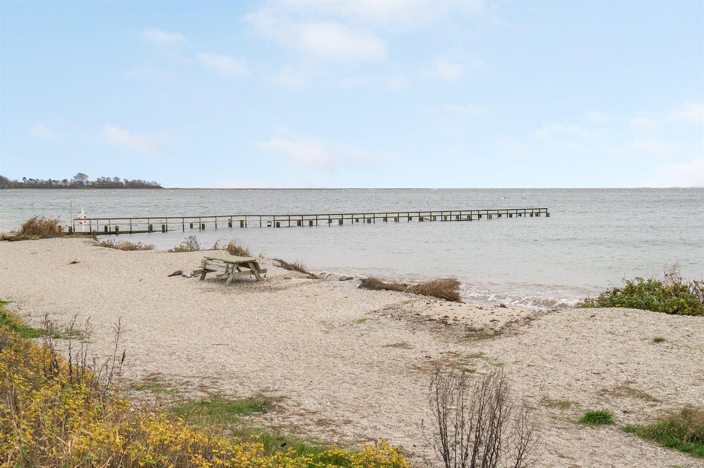 Huset ligger i 2. række - kun 50 meter fra stranden. Lige overfor huset ligger der en sti, som fører ned til den brede strand, hvor der i sommerperioden er opsat en stor og fælles badebro.