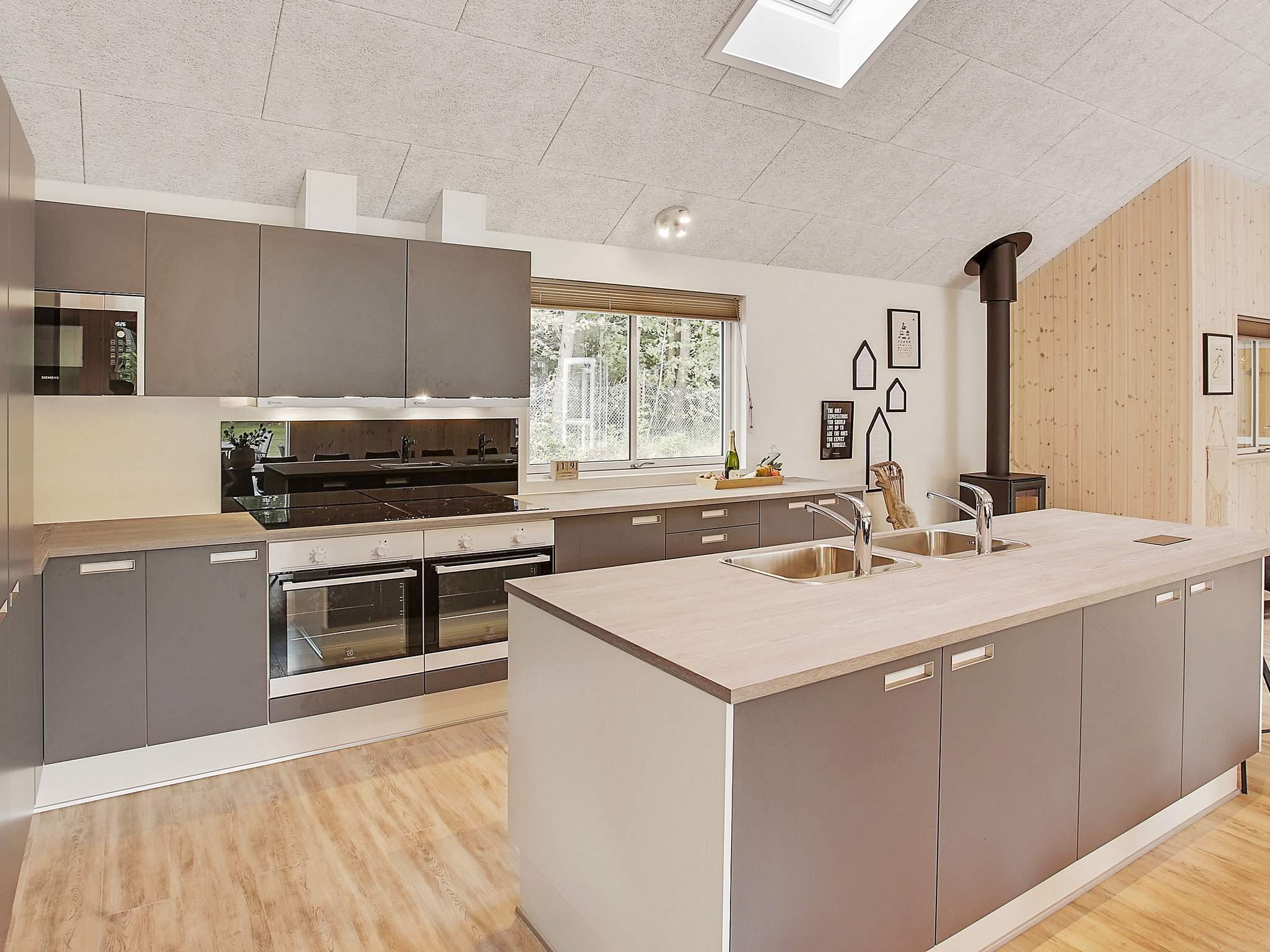 Spise-/opholdsrum er smagfuldt indrettet med stereoanlæg med cd-afspiller, tv, blu-ray afspiller, høj barnestol, sofaafdeling og brændeovn. I det gennemtænkte køkken med brændeovn er der stort køleskab, fryseskab samt to opvaskemaskiner og to komfurer, så der er rig mulighed for at kokkerere.