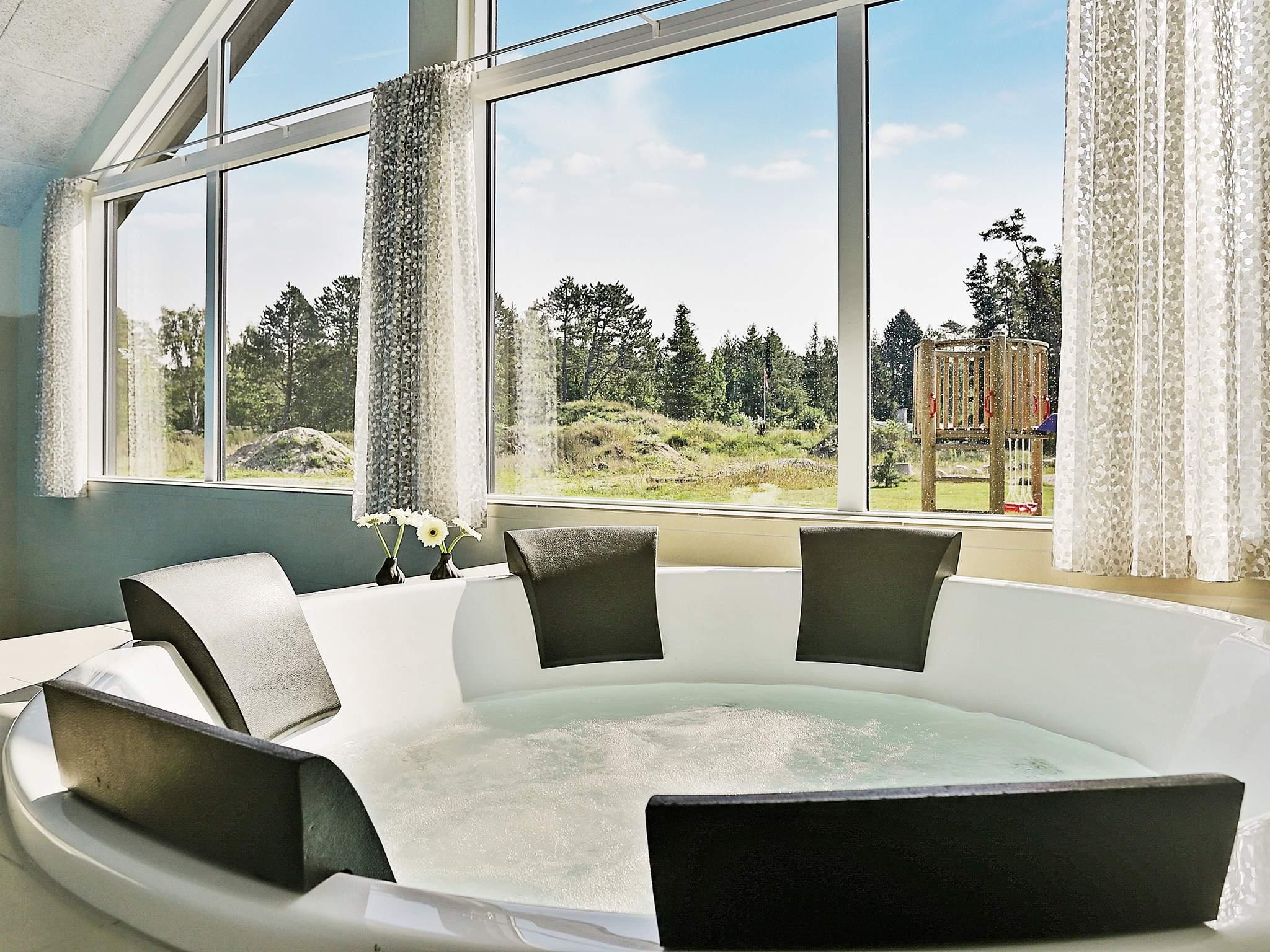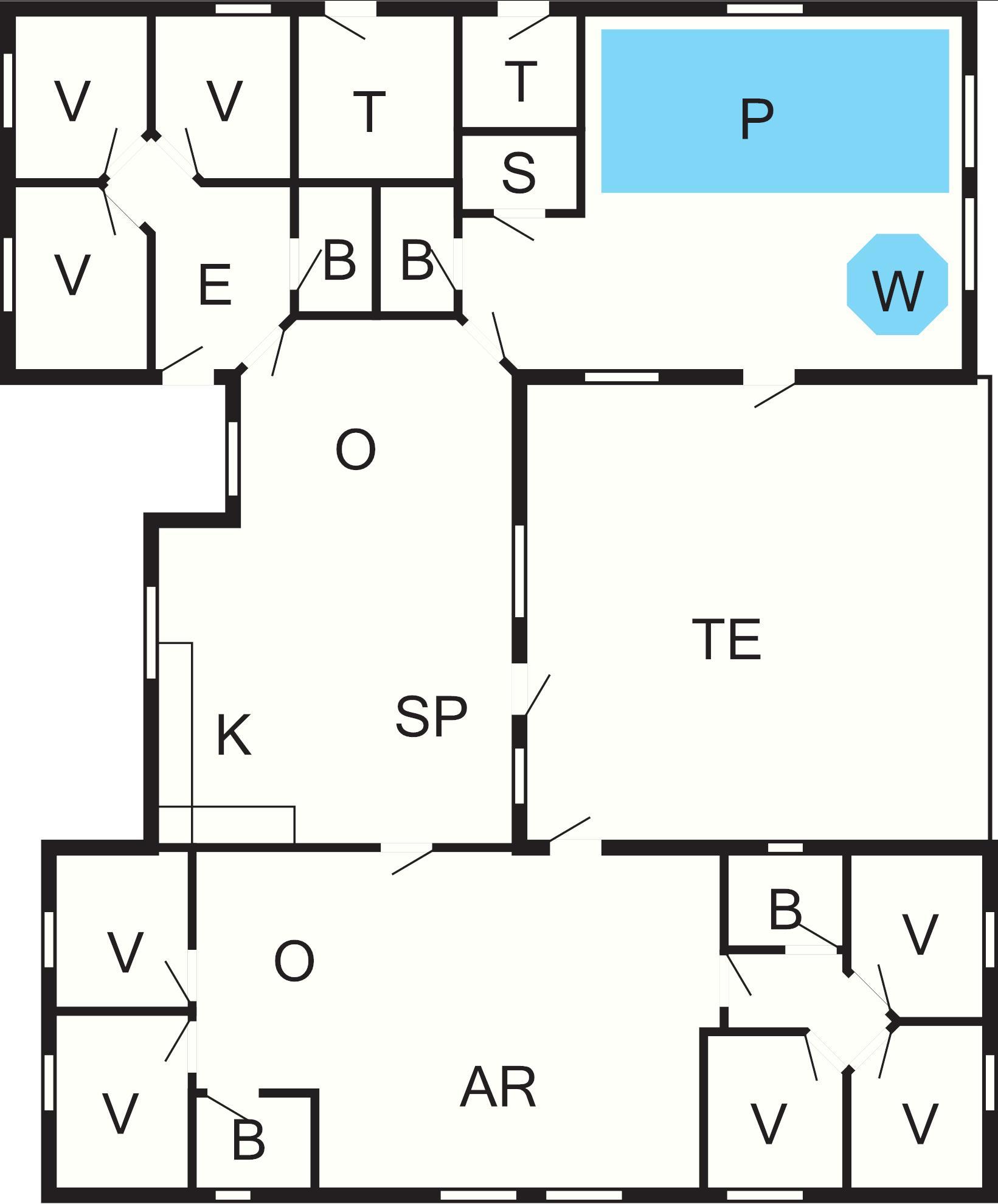 Velindrettet Skanlux-aktivitetshus med 3 separate soveafdelinger. Huset har en poolafdeling, som indeholder både stor 18 m² swimmingpool, vandrutschebane, svømmetræner, stort indbygget spabad og sauna. Hver soveafdeling har eget badeværelse og der er et ekstra badeværelse i forbindelse med poolafdelingen.