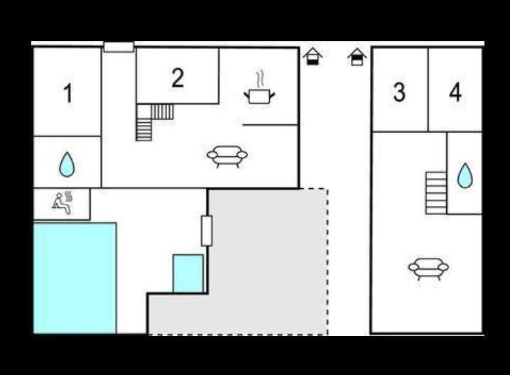 Dette charmerende feriehus i to etager tilbyder den perfekte kombination af komfort og luksus med egen swimmingpool, spabad og sauna. Huset er rummeligt og funktionelt indrettet med to soveværelser i stueetagen og to yderligere på førstesalen, hvor der også er en stor opholdsstue. Der er badeværelser på begge etager for ekstra bekvemmelighed.