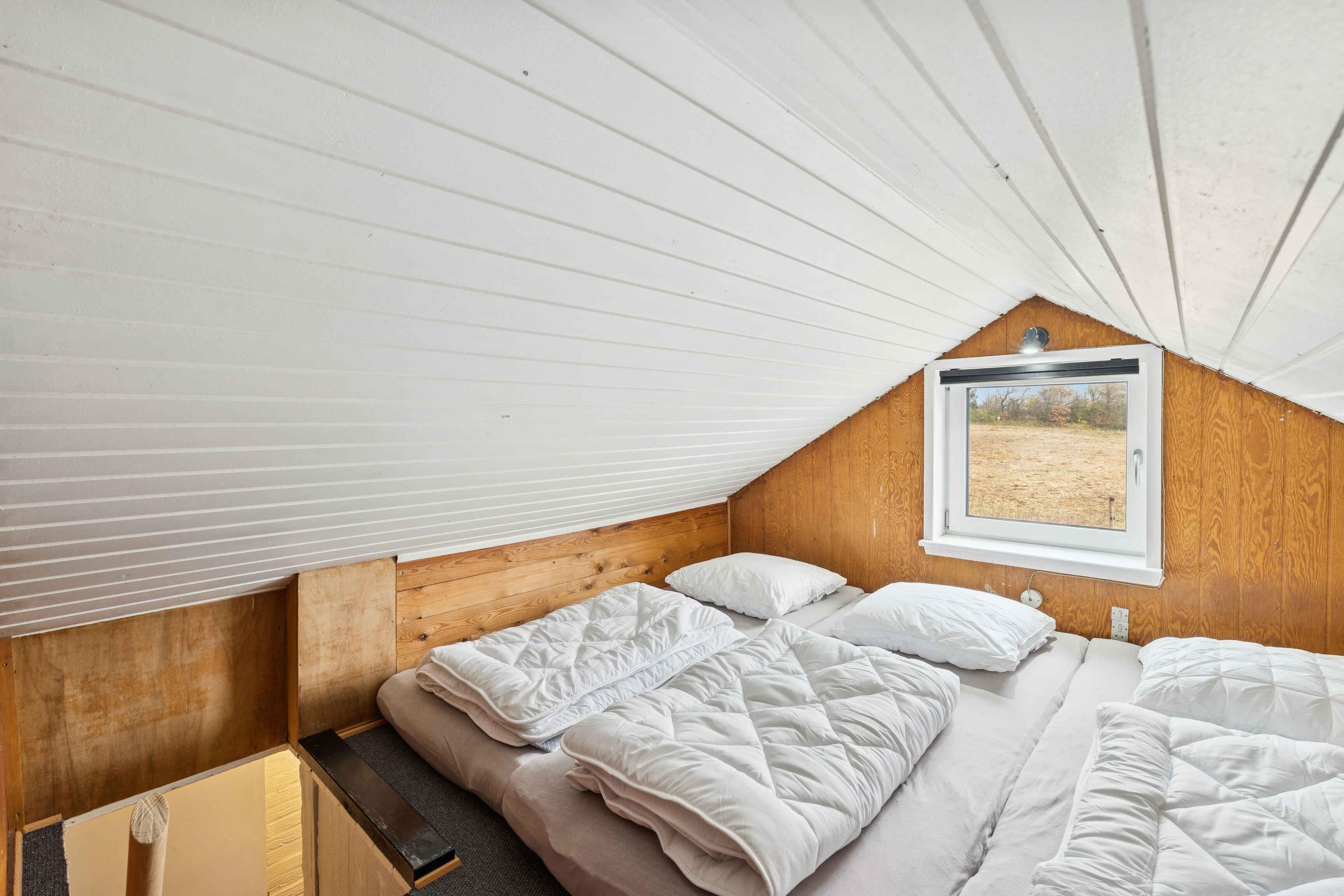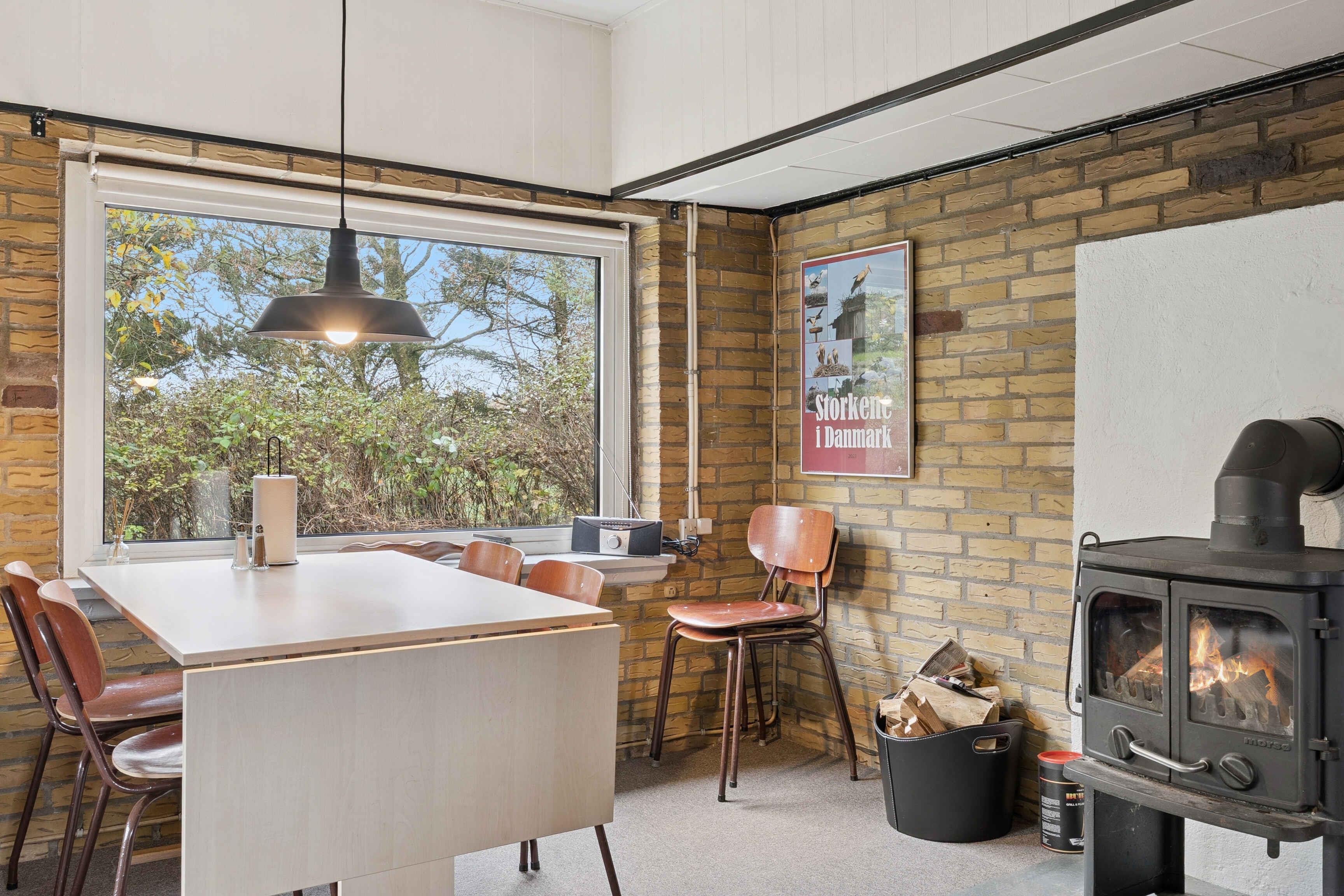 Dette hyggelige sommerhus på 50 m² er et oplagt valg for par eller den lille familie, der ønsker en rolig ferie med naturen tæt på. Huset rummer ét soveværelse og i alt fem sovepladser, så der er plads til både overnatning og afslapning. Indretningen er funktionel og indbydende med brændeovn og varmepumpe, som gør huset behageligt året rundt. Her findes et lille badeværelse med bruseniche samt et køkken med komfur, mikroovn, køle-/fryseskab og bordopvaskemaskine. Derudover er der vaskemaskine, wifi, tv/DVD og radio. Fra huset er der kort afstand til dagligdagens bekvemmeligheder. Indkøb og Tangsø Centret med svømmehal, wellness, motionscenter, hal og udendørs padel nås på få minutter. Togforbindelser giver let adgang til Vemb, Lemvig og Thyborøn, og Klosterhedens store naturområder ligger inden for overskuelig køreafstand. Området omkring huset er en oplevelse i sig selv og byder på cirka 100 ords feriekvaliteter i ren natur. Huset ligger direkte ned til Flynder Å, hvor der er mulighed for at fiske og nyde livet langs vandet. Her præges ferien af ro, åbne vidder og skiftende årstider. Dyrelivet er rigt og nærværende. Bævere ses ofte ved åen, og deres imponerende dæmninger er fascinerende at opleve. Traner, rådyr og ænder er en del af hverdagen, og om aftenen kan flagermus vise sig. I efteråret kan man høre kronhjortenes brøl, hvilket giver opholdet en helt særlig stemning.