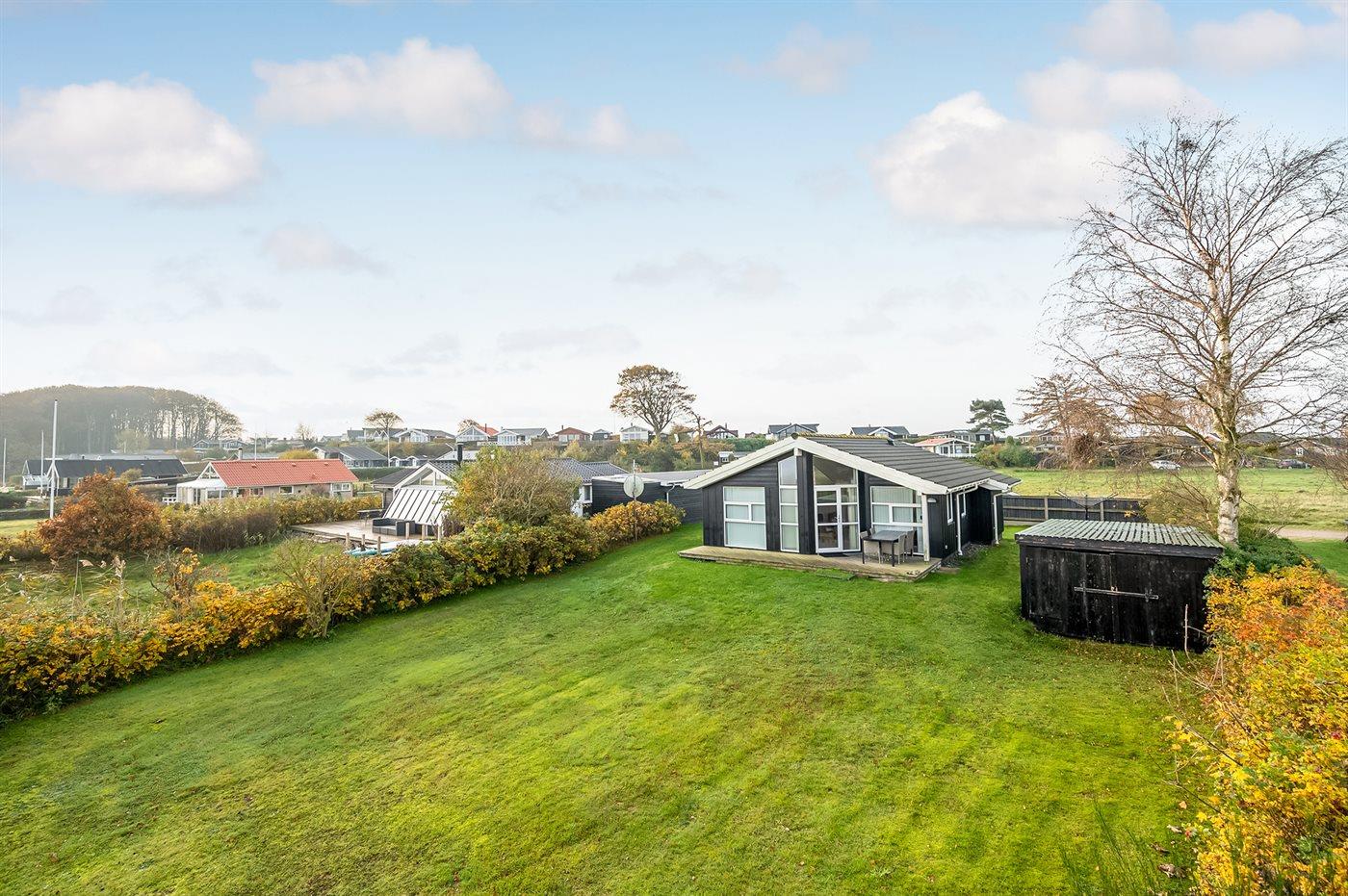 Ferieboligen er beliggende på en 500 m² stor naturgrund. Der er 50 m til fjorden. Nærmeste forretning er beliggende i en afstand af 1000 m. Til ferieboligen hører 10 m² terrasseareal. Desuden er der 10 m² overdækket terrasse. Der er redskabsrum. Parkering ved ferieboligen.