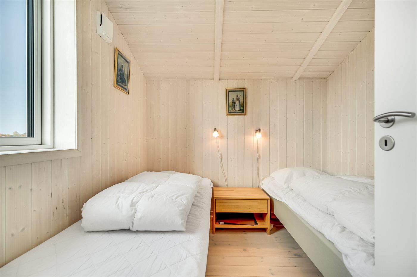 Der er i alt 3 soveværelser. Sovepladserne fordeler sig på: 4 sovepladser i dobbeltsenge. 2 sovepladser i enkeltsenge.