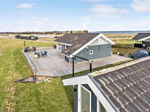 Hyggeligt feriehus ved Bøgeskov Strand med spabad, terrasse og fantastisk udsigt over Vejle Fjord.