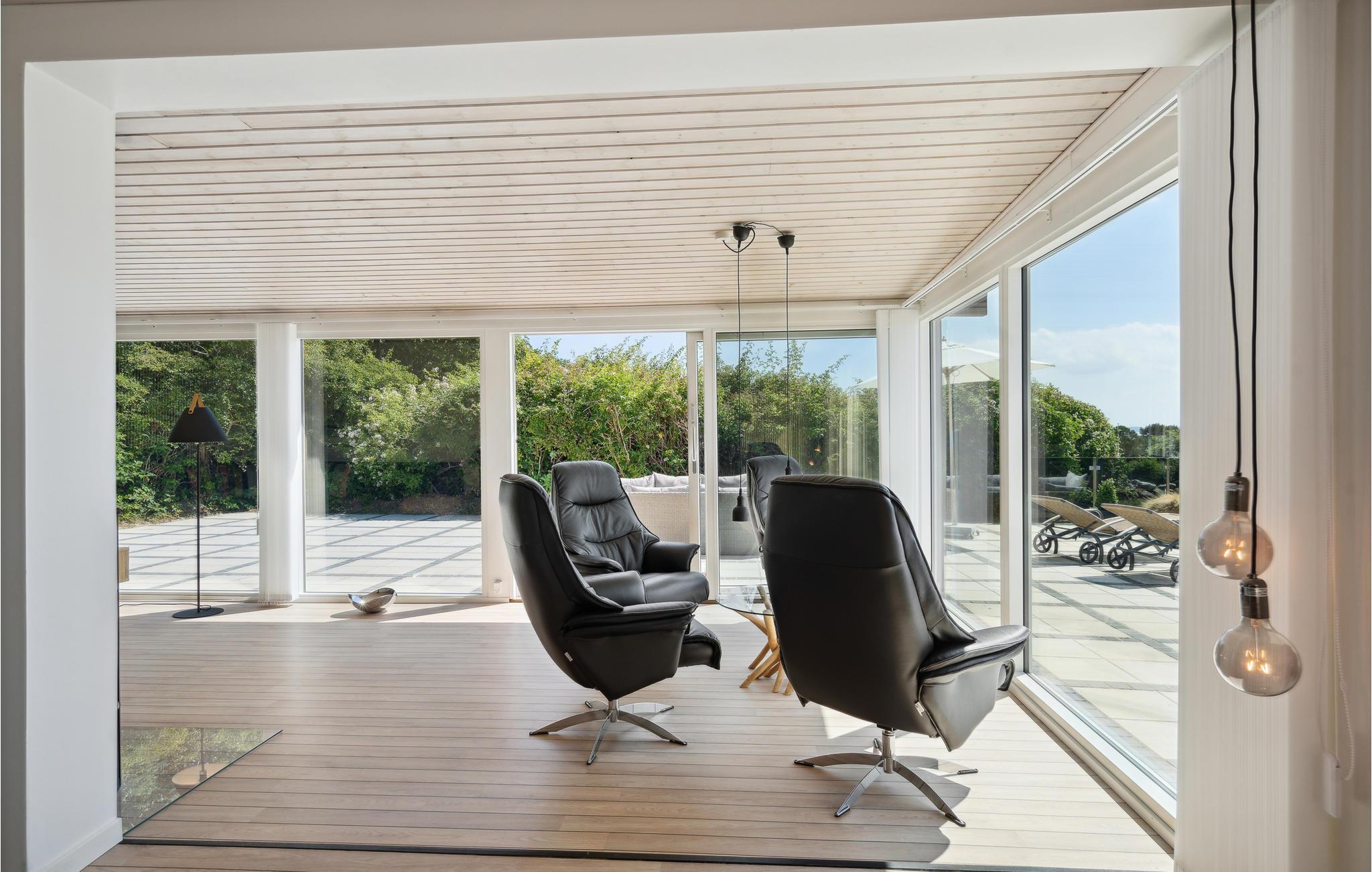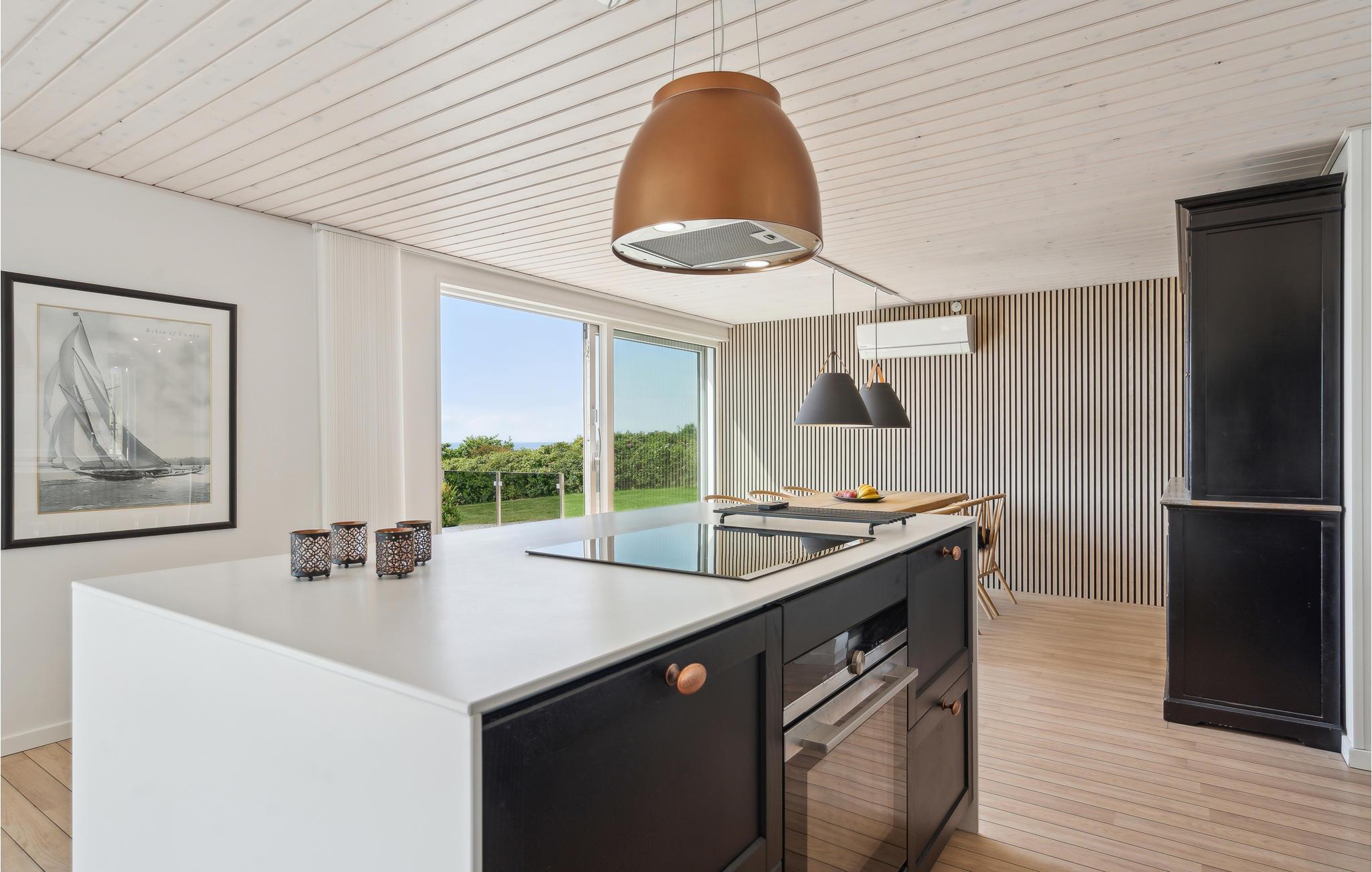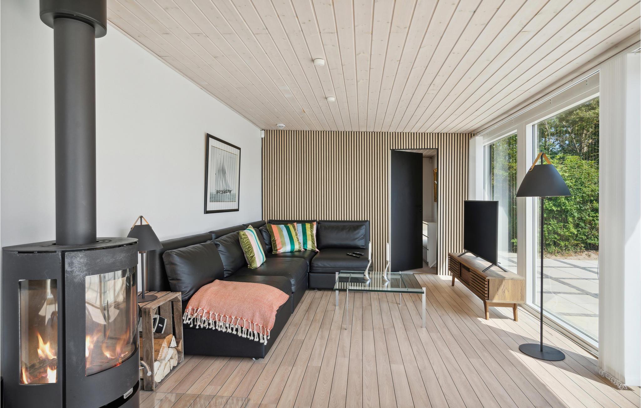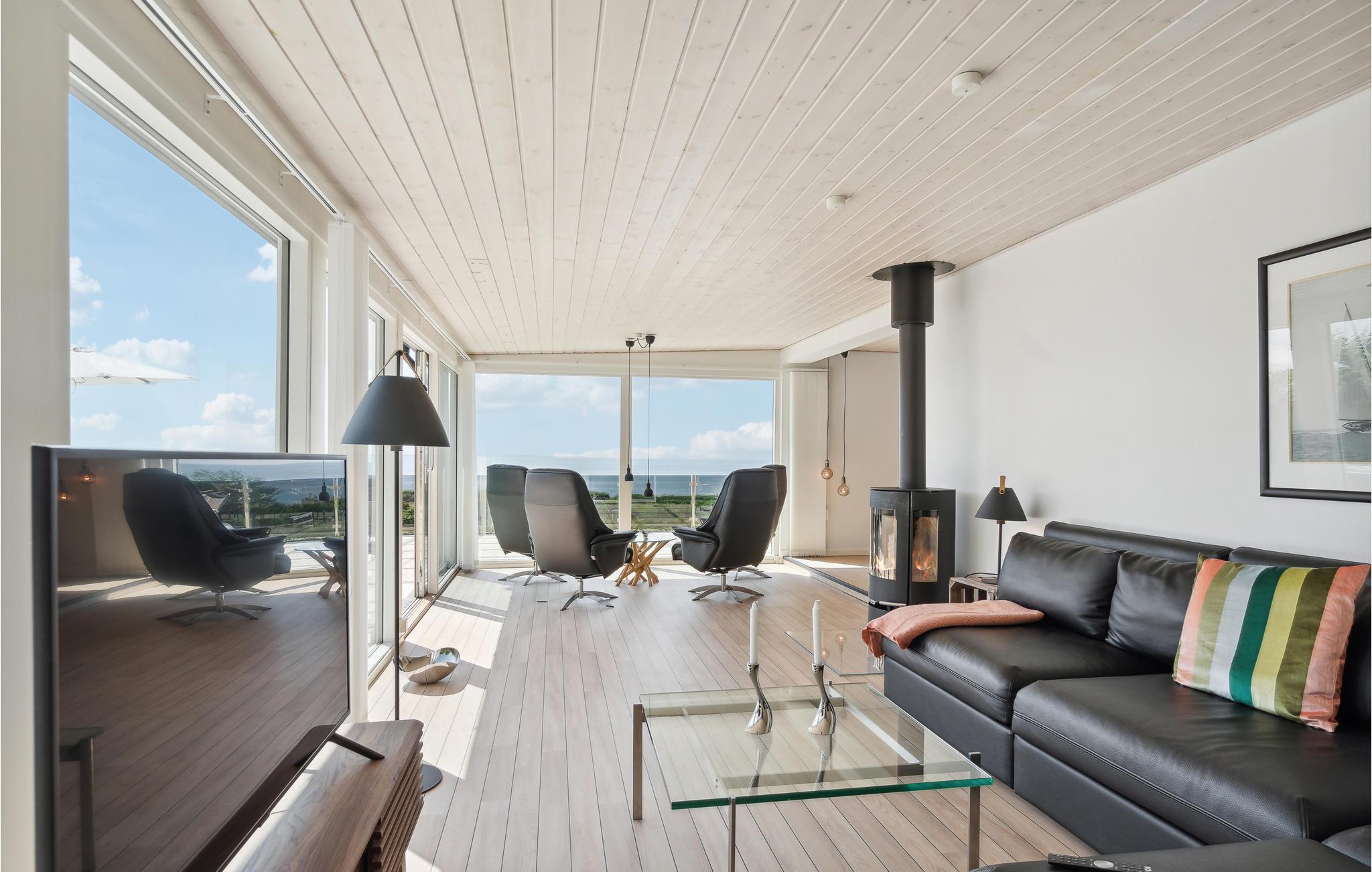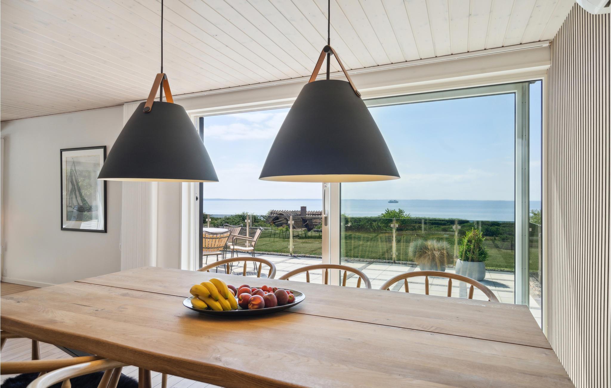 Velkommen til dette store, moderne feriehus, som ligger i udkanten af Bøjden. Her får I den skønneste base, hvor det er nemt at slappe af. Huset emmer af kvalitet og stilrene løsninger. Efter en lang dag på farten kan I samles i den lyse stue og nyde varmen fra brændeovnen, mens I kigger ud på vandet. Det er også hyggeligt at tilberede aftensmaden, mens man har den samme skønne udsigt. Om aftenen kan I læne jer tilbage i loungemøblerne på den store terrasse og drikke et glas vin, mens solen synker over det sydfynske øhav.