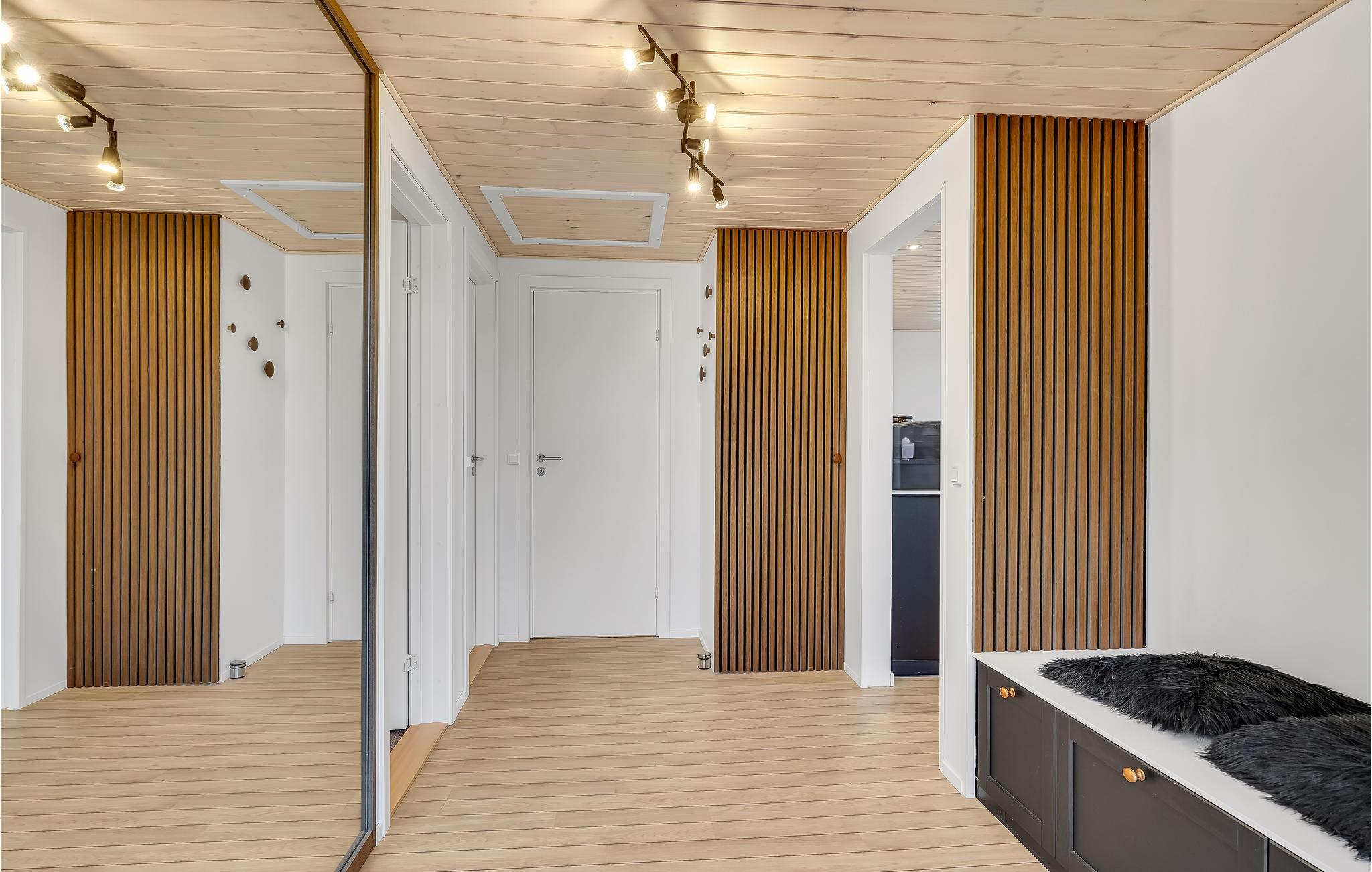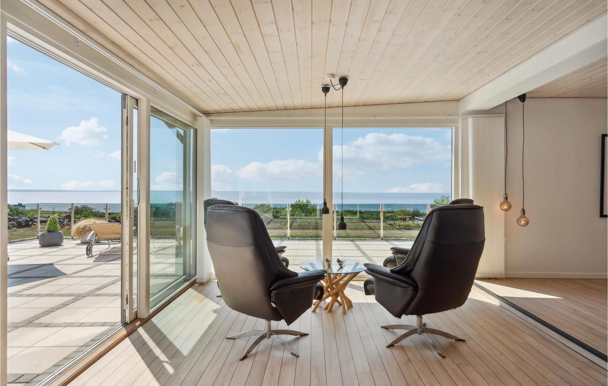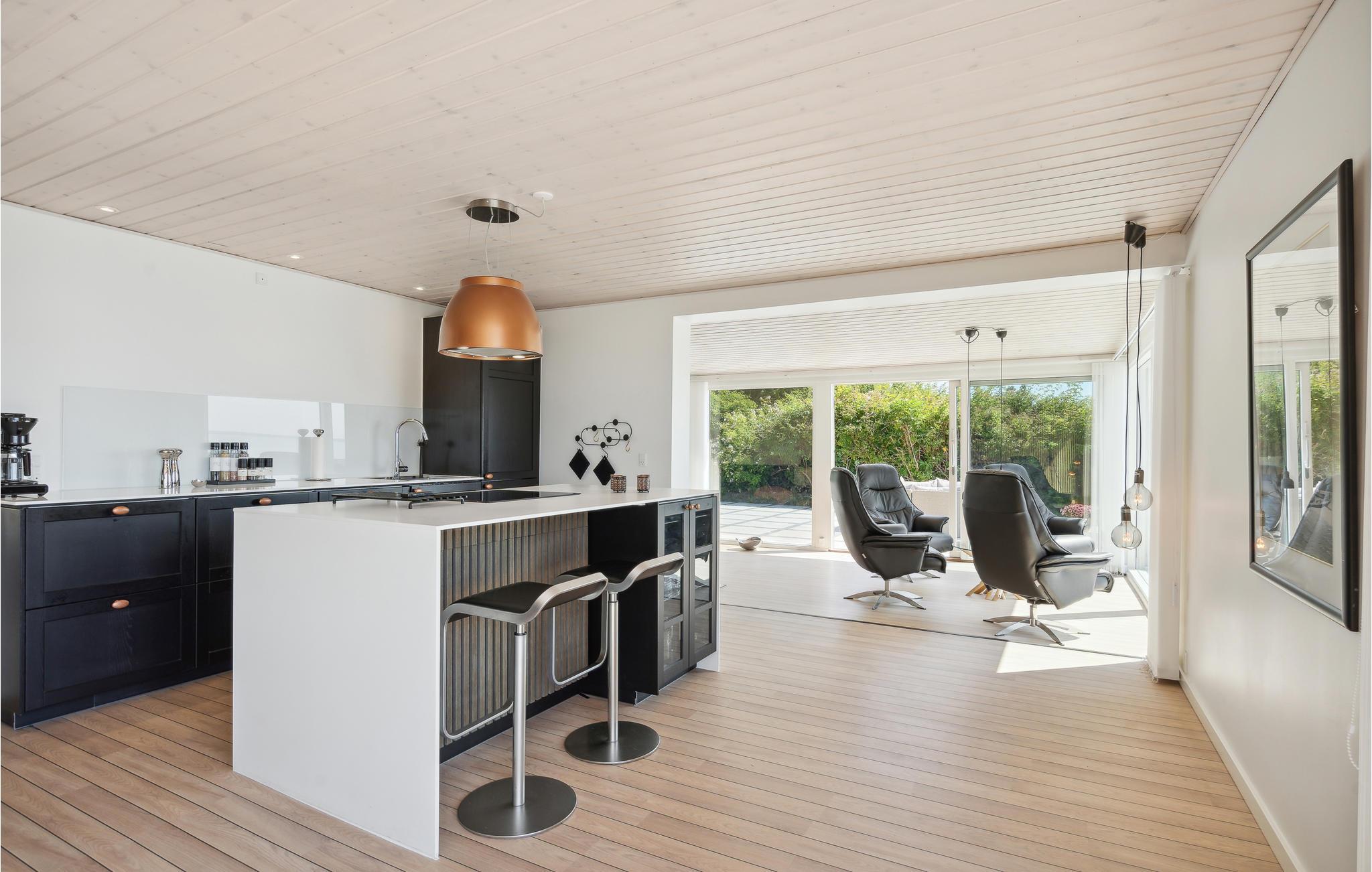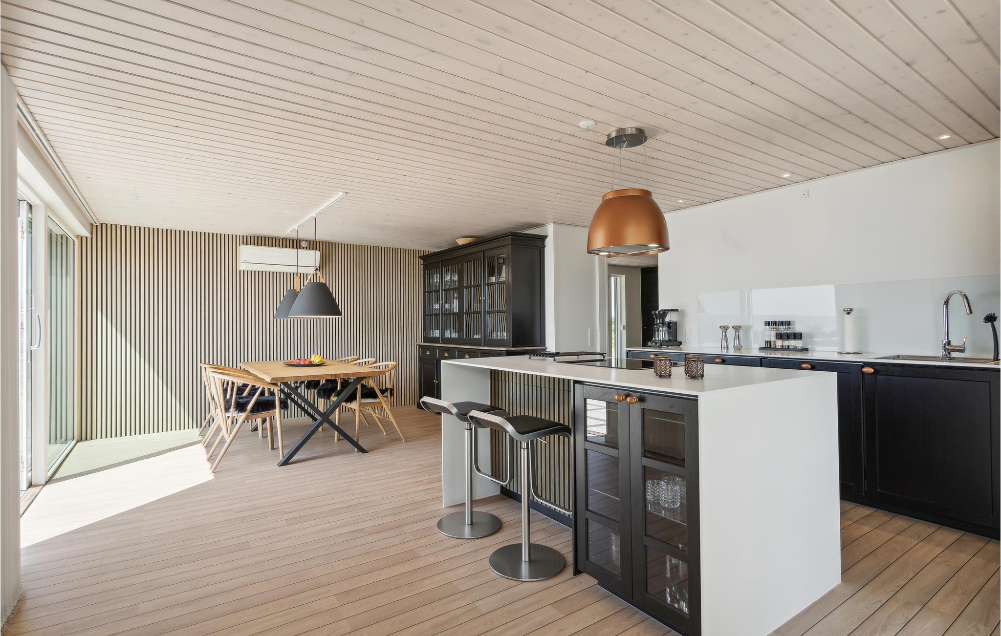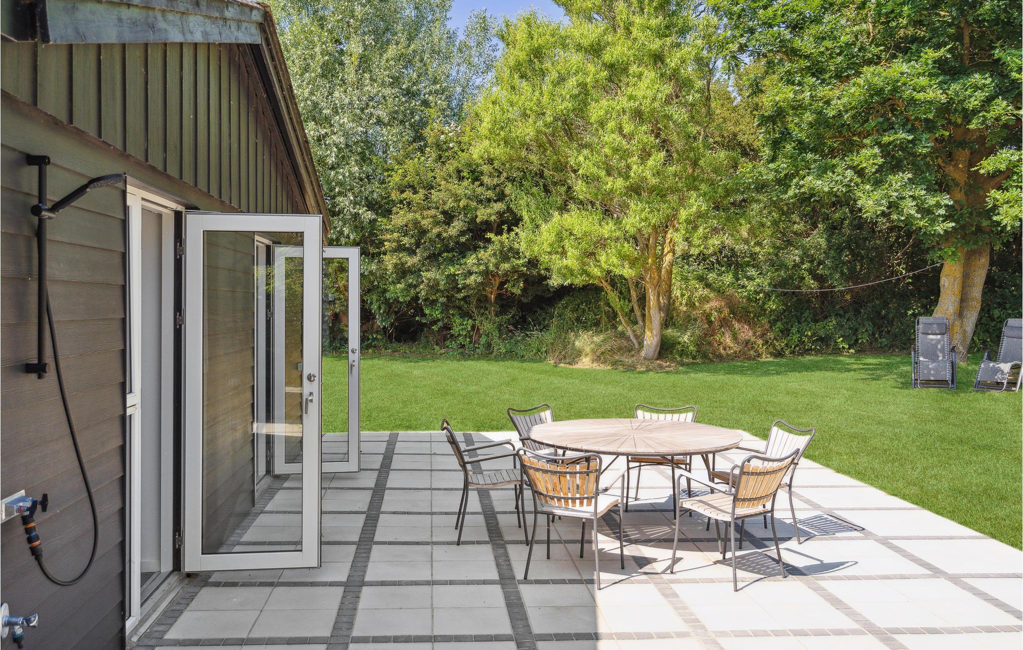 Velkommen til dette store, moderne feriehus, som ligger i udkanten af Bøjden. Her får I den skønneste base, hvor det er nemt at slappe af. Huset emmer af kvalitet og stilrene løsninger. Efter en lang dag på farten kan I samles i den lyse stue og nyde varmen fra brændeovnen, mens I kigger ud på vandet. Det er også hyggeligt at tilberede aftensmaden, mens man har den samme skønne udsigt. Om aftenen kan I læne jer tilbage i loungemøblerne på den store terrasse og drikke et glas vin, mens solen synker over det sydfynske øhav.