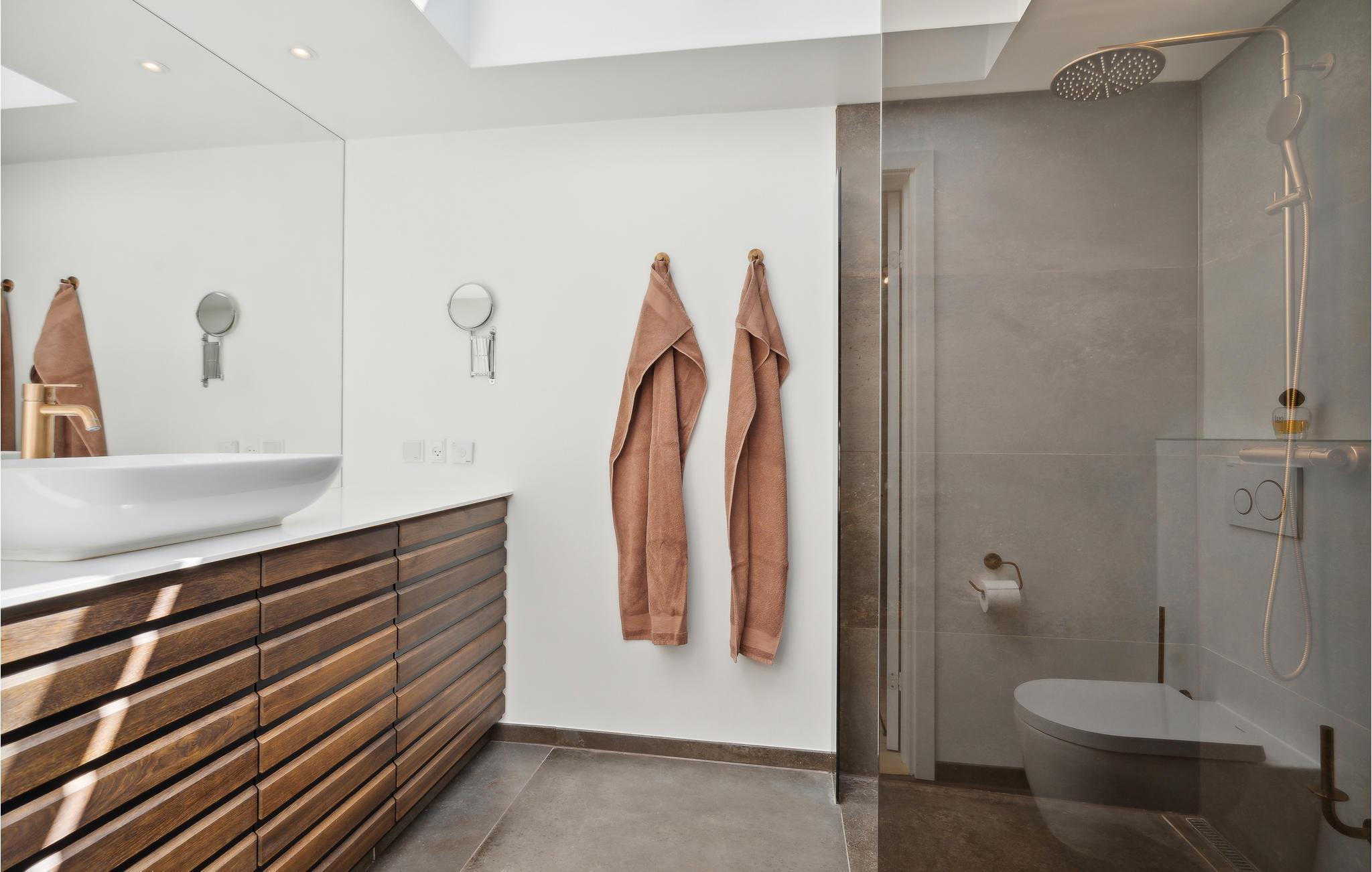 Badeværelse (nr. 1) - WC. Varmt og koldt vand. Bruser