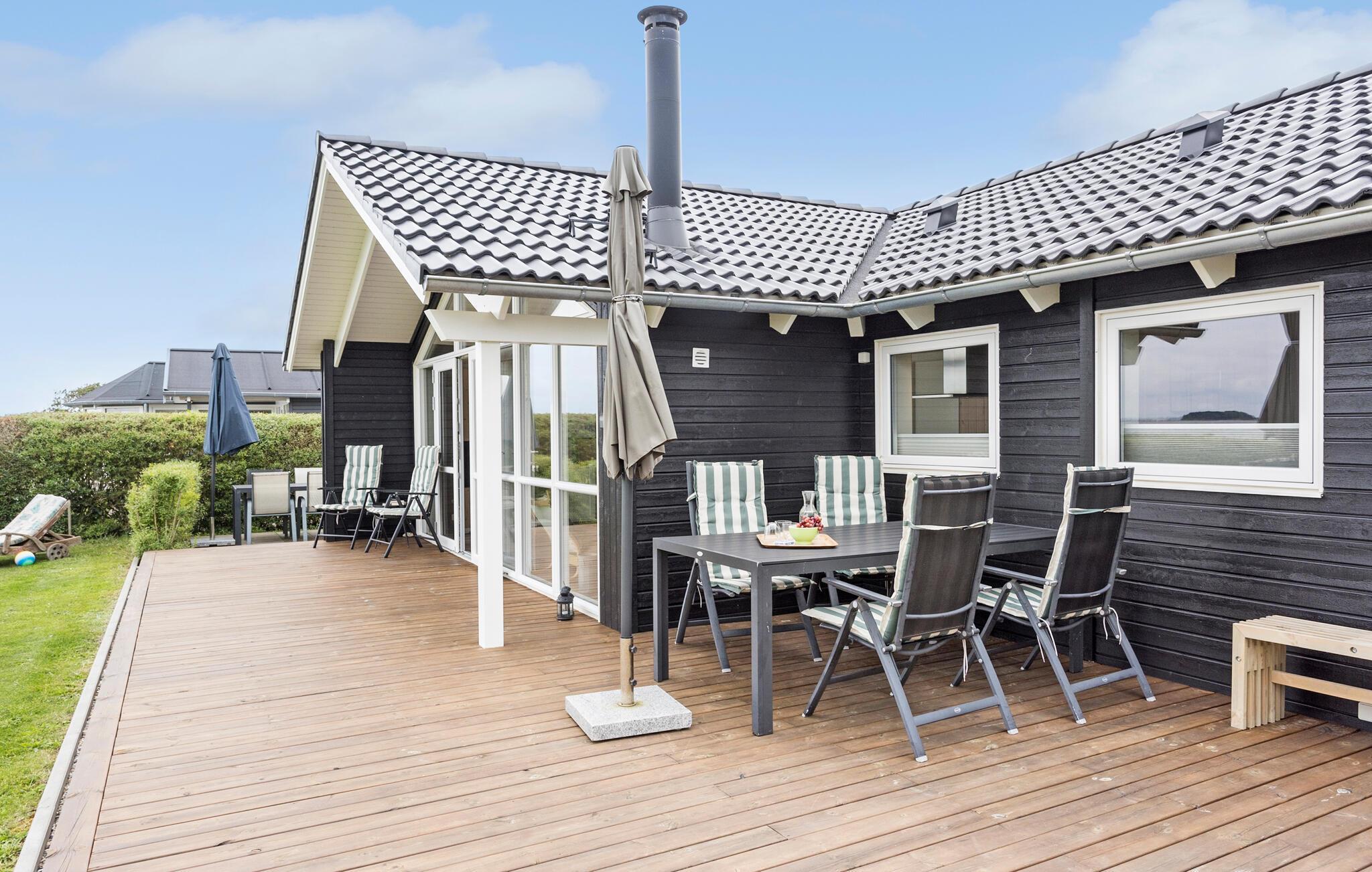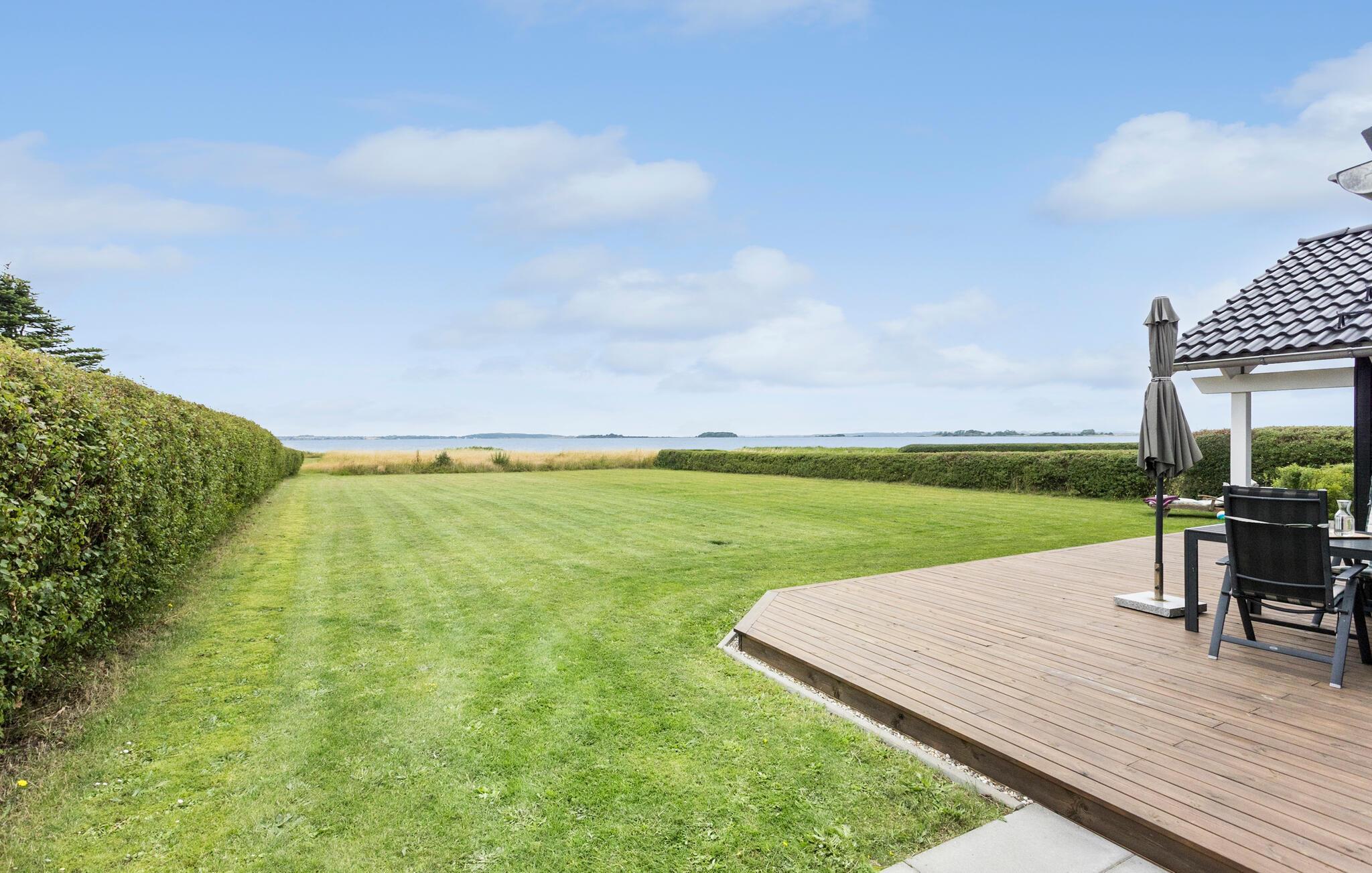 Ude på terrassen kan I holde grillaftener med drinks og lækkert mad. Dagens første kop kaffe kan også med fordel nydes herude i den friske luft og til synet af vandet i horisonten.