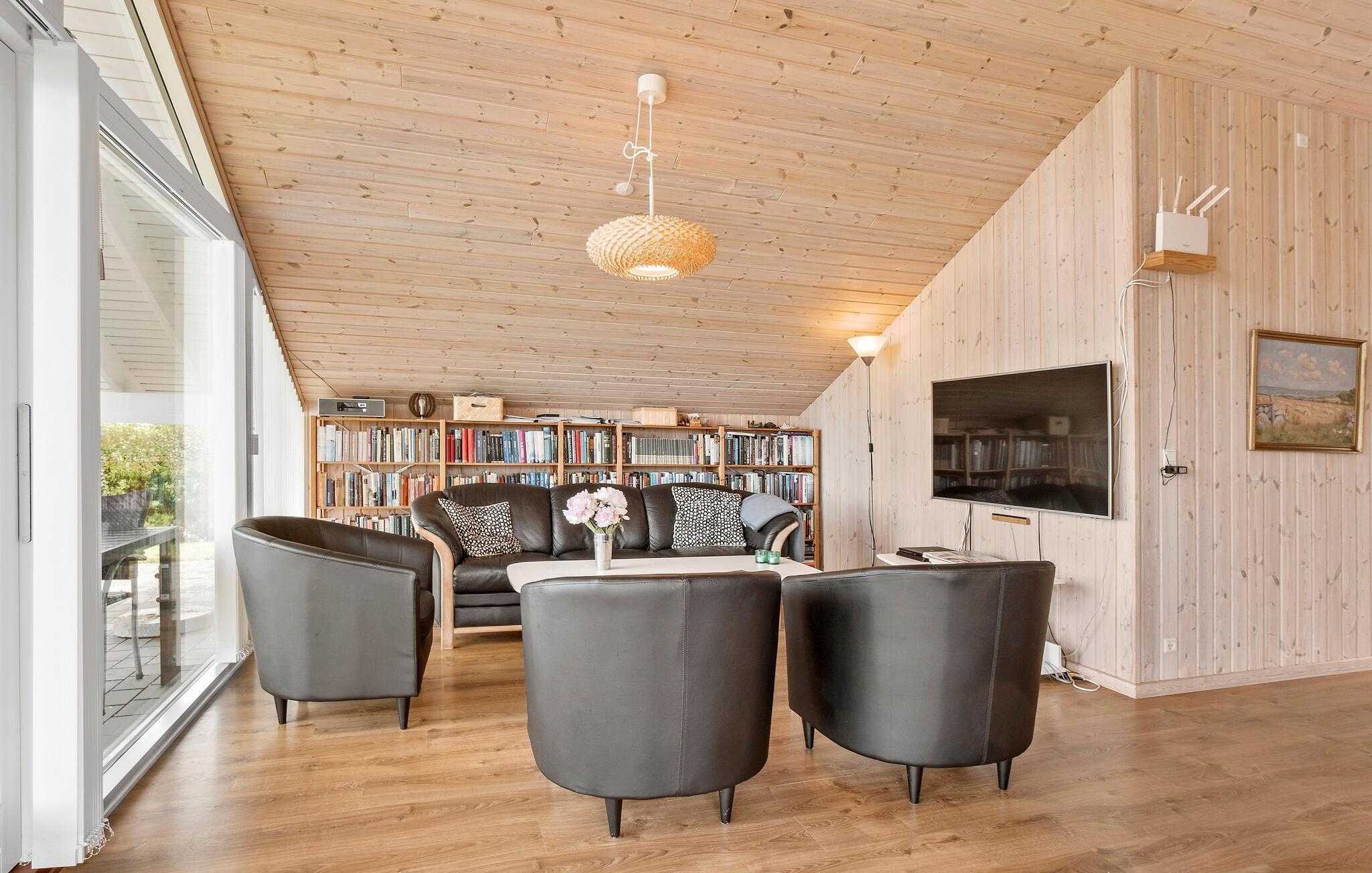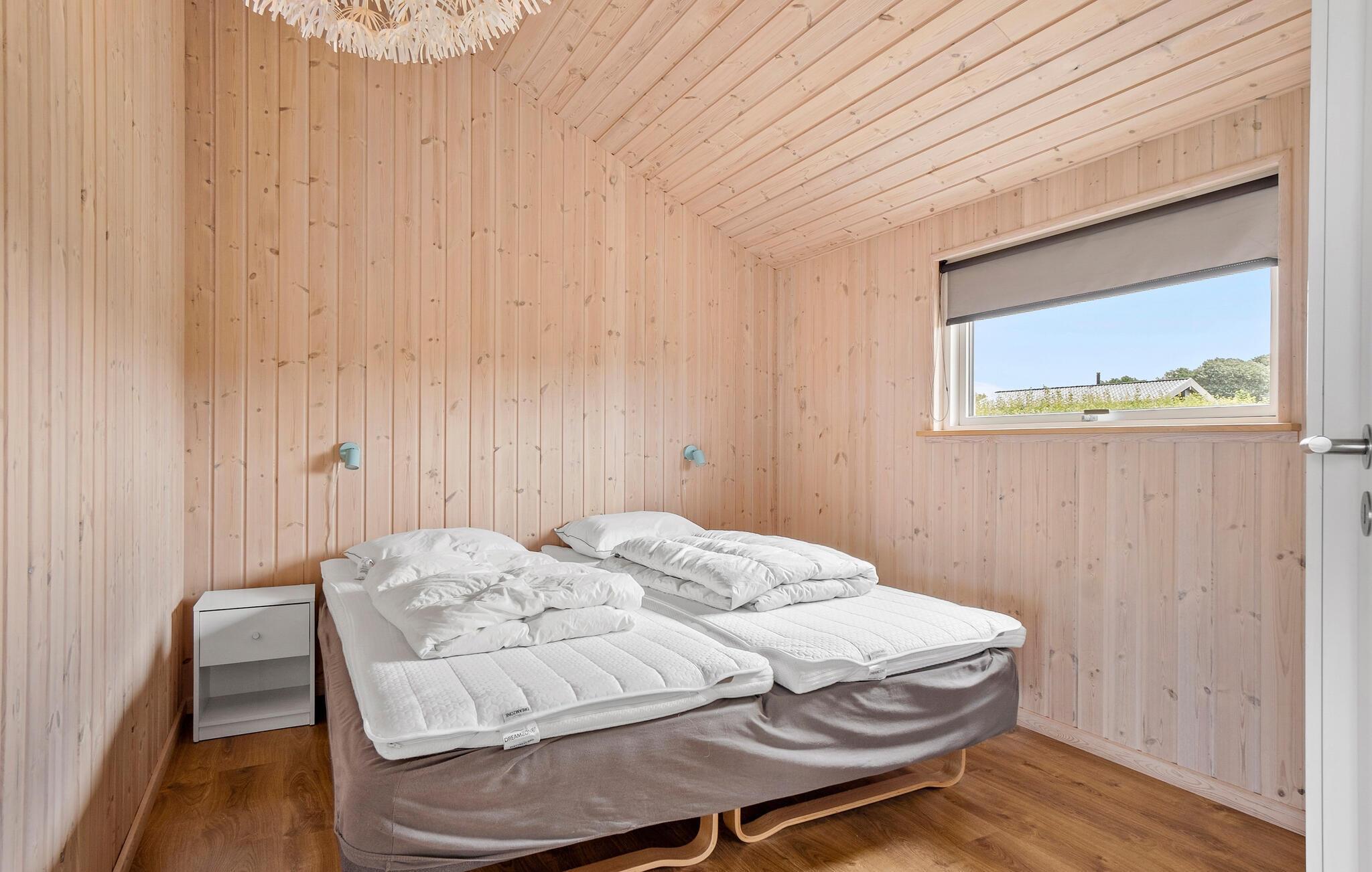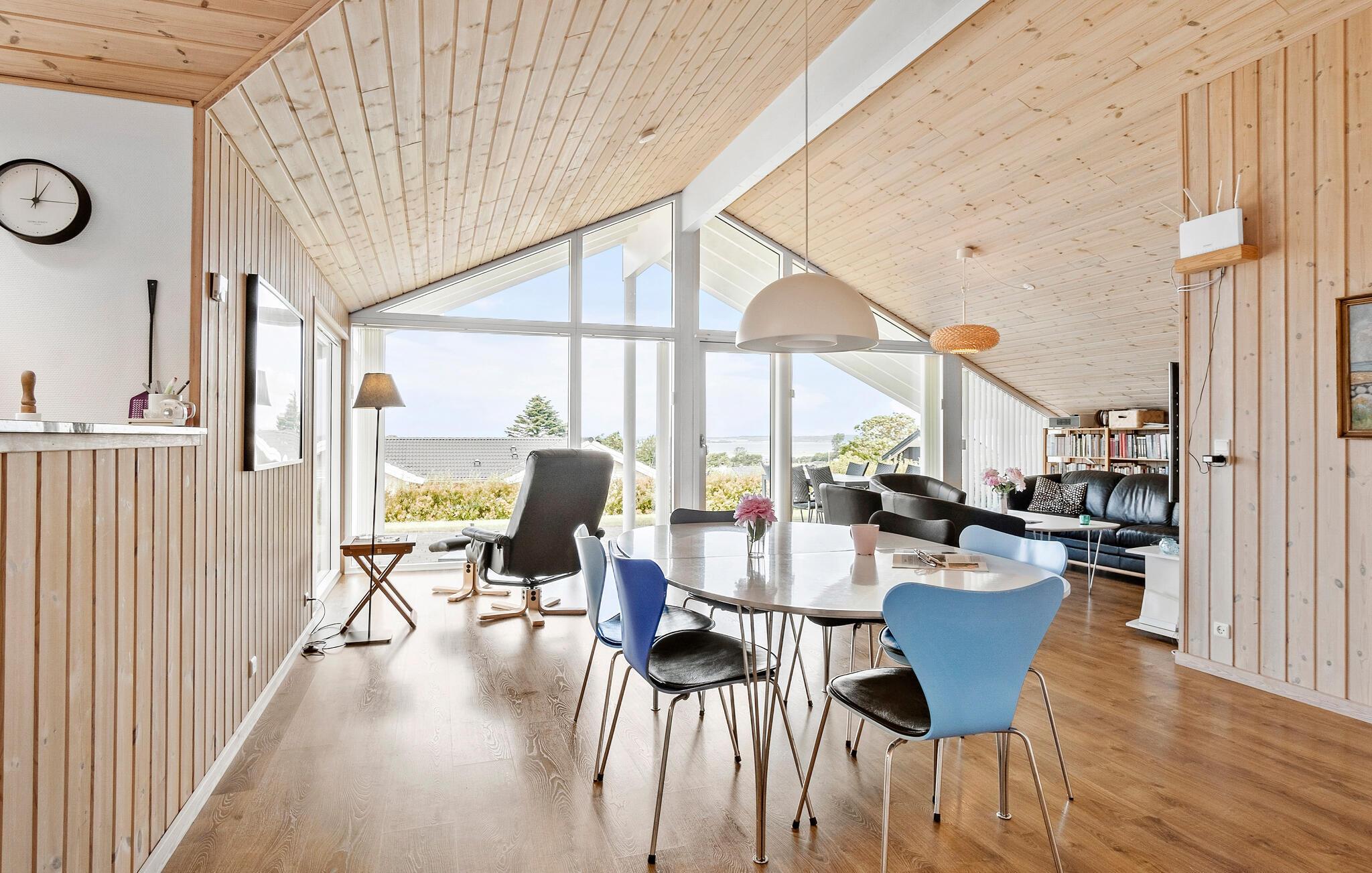 Er I på udkig efter et hyggeligt sommerhus til jeres næste familieferie, så er dette et godt bud. Her får I et hus, som har højt til loftet med træbelagte lofter og vægge. Huset har et skønt lysindfald, da der både er ovenlysvinduer og store vinduespartier med udsigt over vandet og er et af de få huse, som er placeret på en nordvestvendt kyst i det sydfynske øhav. Det bevirker, at den spektakulære solnedgang brager direkte ind i stuen og på terrassen. I det åbne køkken kan I lave lækre retter eller smide jer i sofaen med en god film på tv’et om aftenen. Efter en begivenhedsrig dag kan I forkæle jer selv med en tur i spabadet og derefter i saunaen.