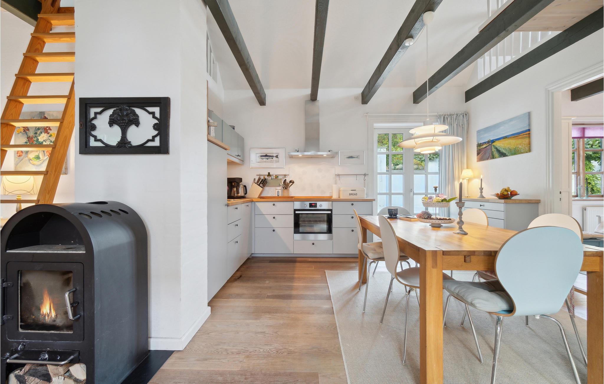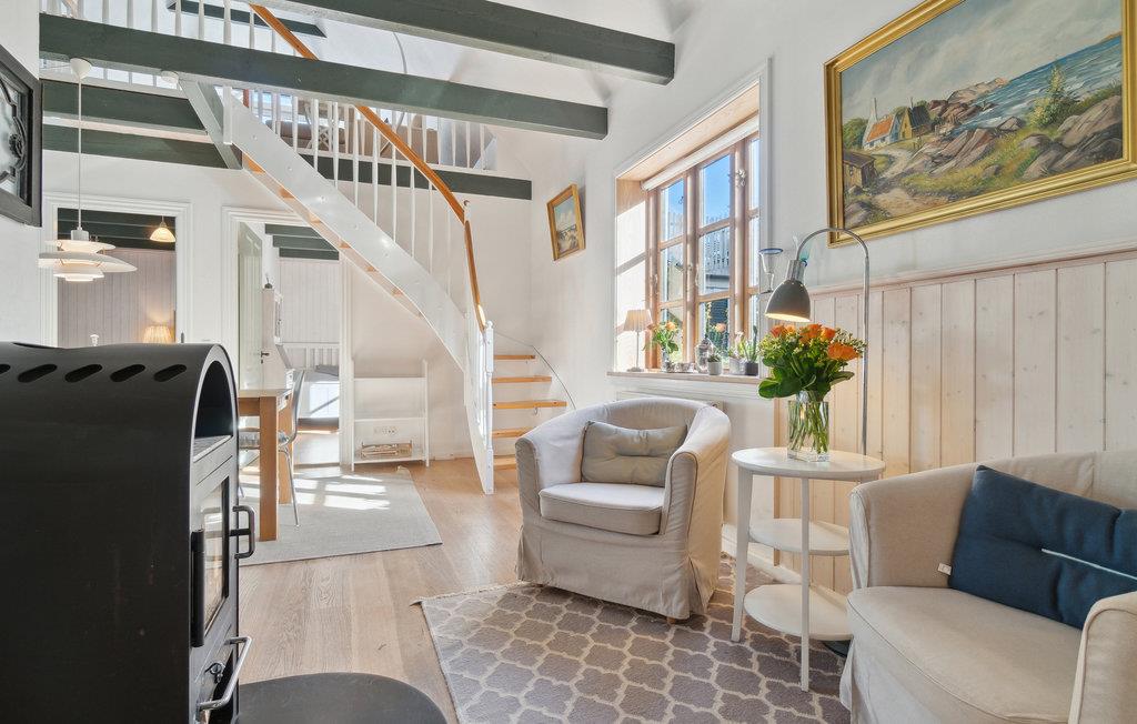 Velkommen til denne helt igennem skønne lejlighed, som giver jer en herlig ramme om familieferien på Bornholms østkyst. Boligen er fordelt over to etager og præsenterer sig lyst og velindrettet, hvilket skaber en skøn oase, hvor I kan slappe af mellem dagens udflugter. Lejligheden er forsynet med store vinduespartier, så I har den flotte udsigt med jer, når I samles om de hyggelige fællesaktiviteter. Tænd op i brændeovnen efter en frisk tur ned til stranden, læn jer tilbage i de bløde møbler og find sammen om en god film før næste dags eventyr.