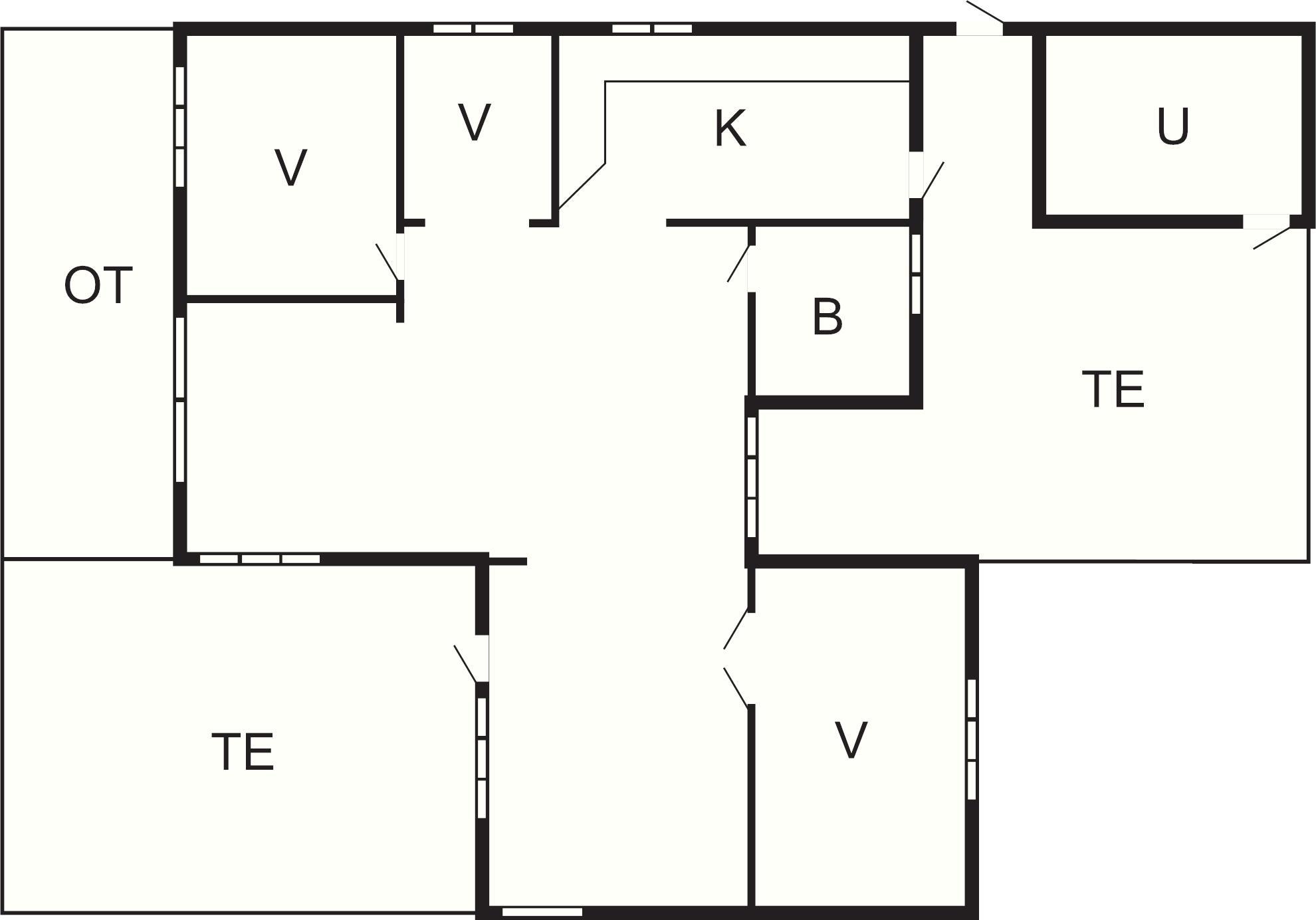 1 Opholdsstue: Brændeovn, stereoanlæg med cd, tv, parabol, høj stol
