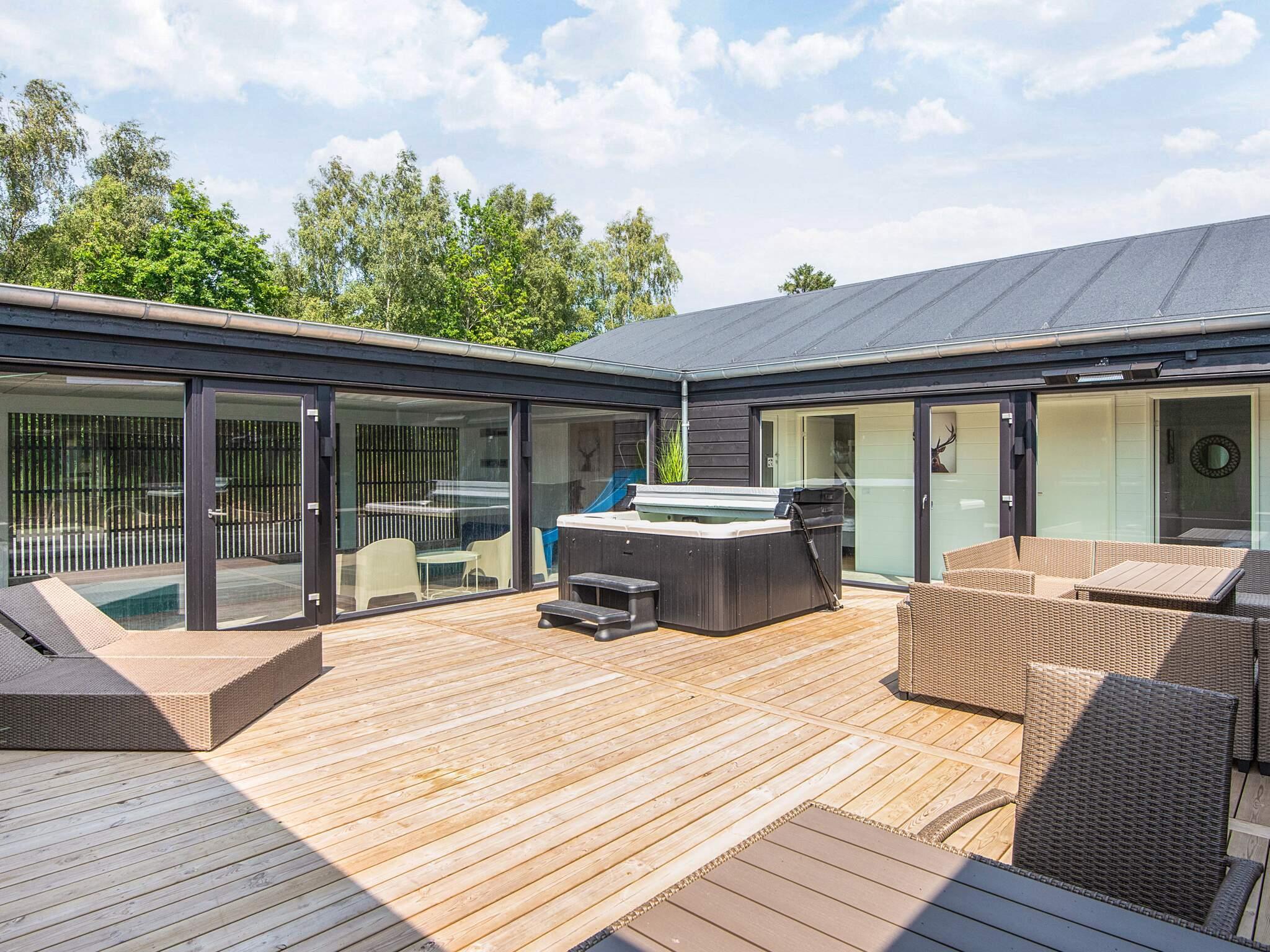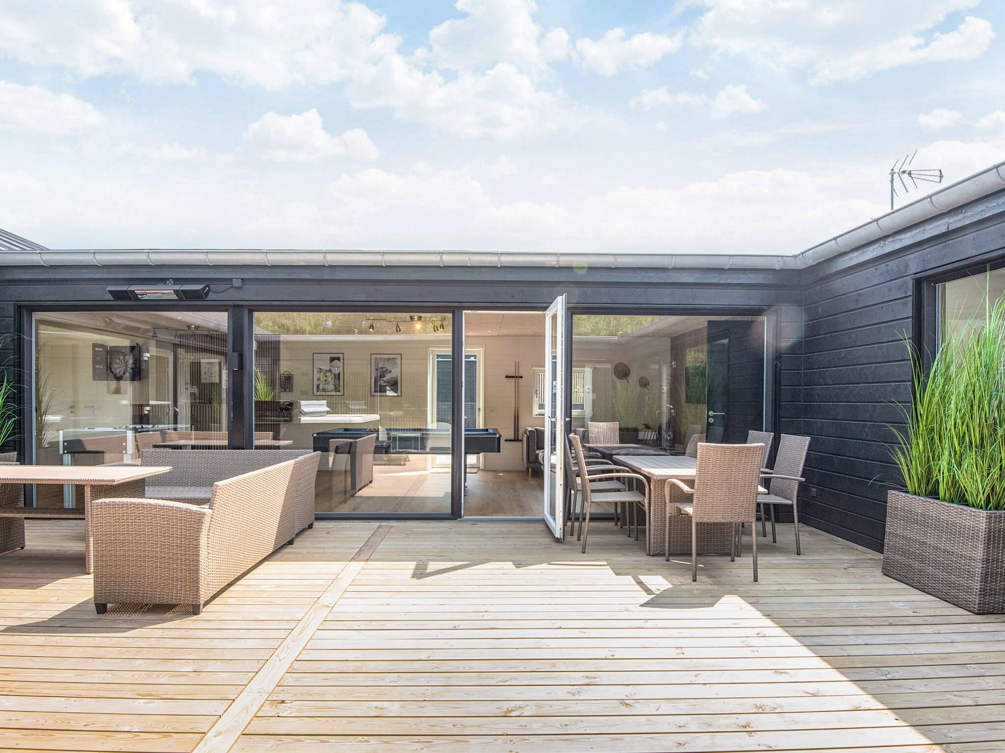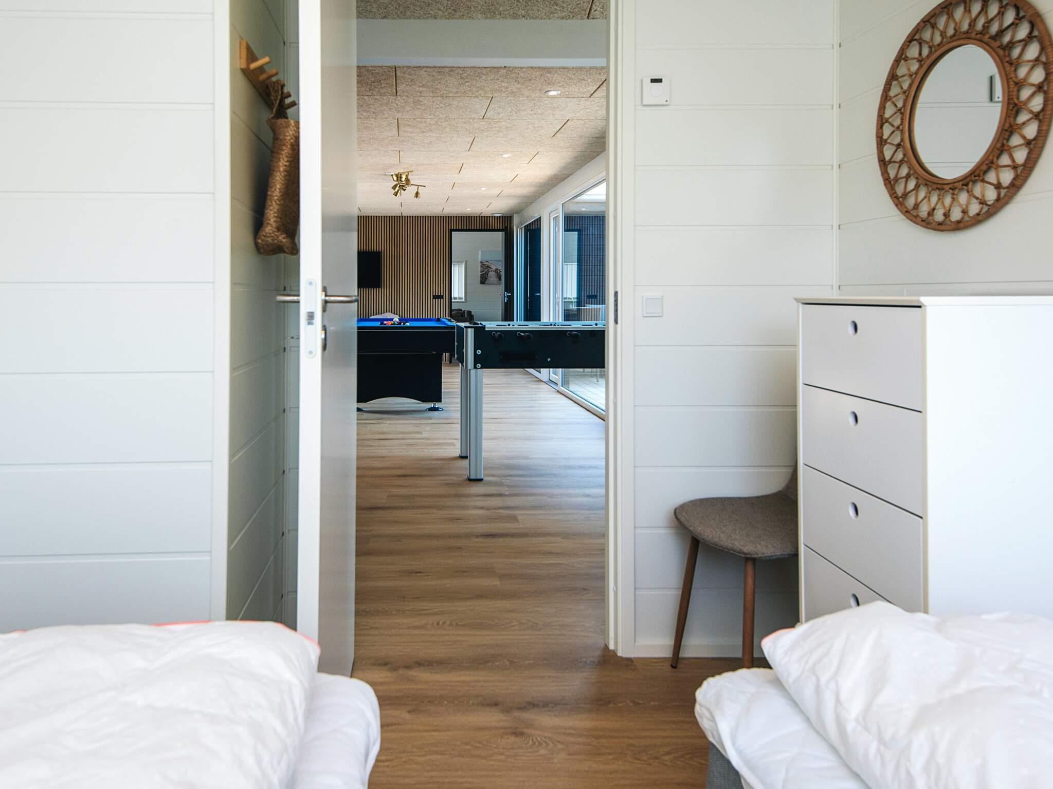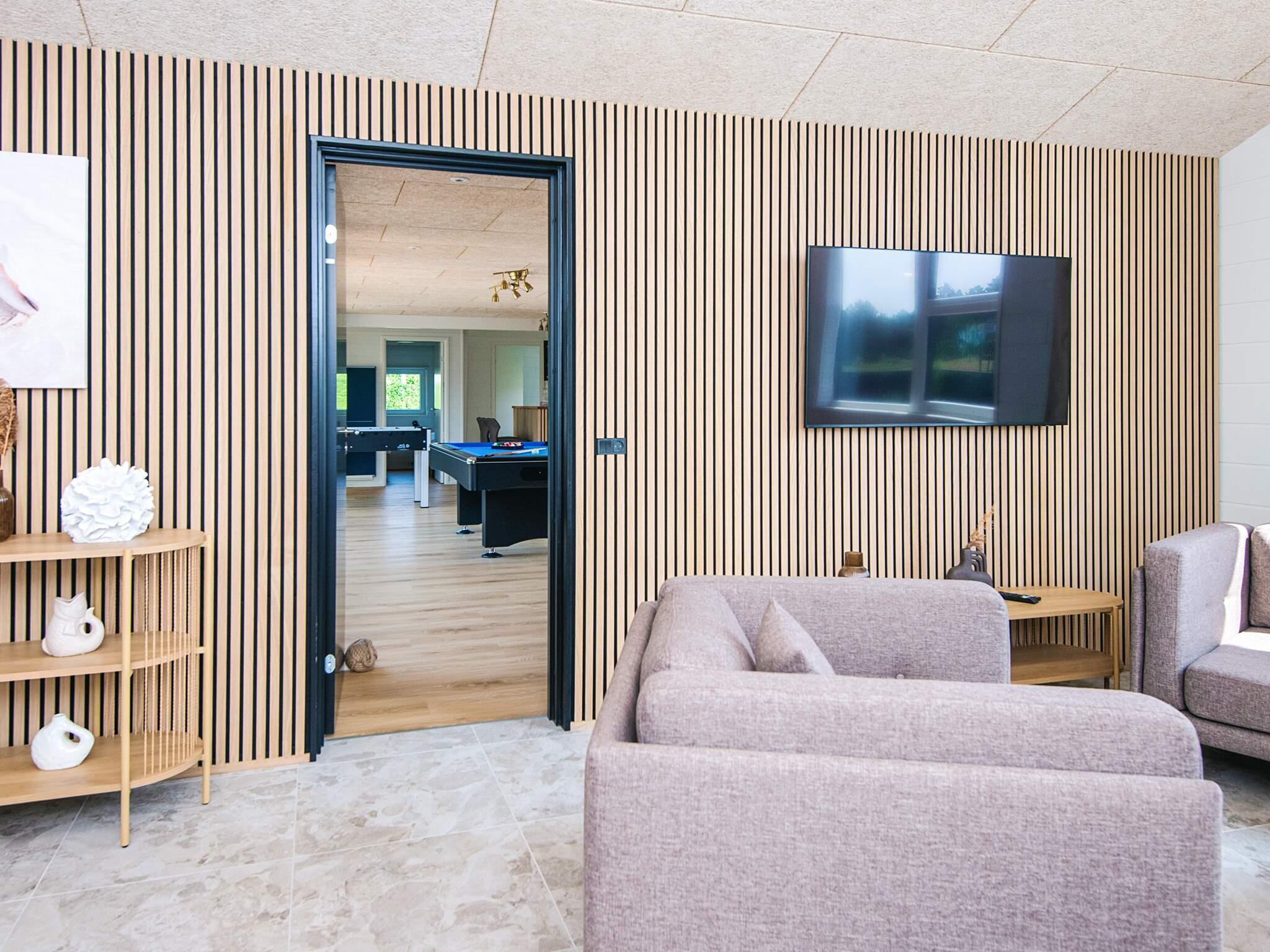 Denne rummelige og moderne feriebolig er ideel til op til 22 personer og rummer hele 268 m². Huset er opført i 2025 og er indrettet med fokus på komfort, energioptimering og gode faciliteter for både børn og voksne. Boligen opvarmes via en energivenlig luft-til-vand-varmepumpe, og der er desuden solvarme og gulvvarme i hele huset. Til de praktiske gøremål er der både vaskemaskine, tørretumbler og en fryser med en kapacitet på 160 liter. Der er også en hyggelig brændeovn, som skaber en varm og indbydende stemning. Til de mindste er der to barnestole og to barnesenge. Feriehuset ligger på en 2.023 m² stor naturgrund, blot 800 meter fra havet og samme afstand til nærmeste indkøbsmulighed. Udendørs finder du en lukket terrasse med både gynge, sandkasse, trampolin, legetårn og rutsjebane. Der er også et udekøkken samt gasgrill, så du kan nyde maden under åben himmel (gas skal selv medbringes). Desuden er der installeret stik til opladning af elbil (Type 2) med en ladeeffekt på 11 kW, og der er parkering lige ved boligen. Indendørs byder boligen på en dejlig swimmingpool med en temperatur mellem 24 og 28 °C. Poolen er 6 meter lang, 3 meter bred og op til 1,4 meter dyb – perfekt til både leg og afslapning. I aktivitetsrummet er der rig mulighed for underholdning med billard, bordtennis, dart og bordfodbold. Feriehuset rummer i alt 7 soveværelser fordelt på: 3 soveværelser med dobbeltsenge 2 værelser med en dobbelt og enkeltseng 2 værelser med 2 enkeltsenge 6 sovepladser på madrasser fordelt på 3 hemse Køkkenet er godt udstyret til store grupper med 3 køleskabe, 4 induktionskogeplader, 2 varmluftsovne, mikrobølgeovn og 2 opvaskemaskiner. Der er i alt 4 badeværelser med bruser og 3 toiletter – alle badeværelser har gulvvarme. Til afslapning tilbyder huset både en indendørs spa med plads til 4 personer, en udendørs spa med stående vand til 7 personer samt en sauna. På terrassen er der desuden 4 terrassevarmere med indbyggede højttalere, så I kan nyde aftenerne udendørs – også når temperaturen falder. Underholdningen er også sikret med 2 Smart TV'er, hvor der kan modtages 1-3 hollandske kanaler, mindst 4 tyske og 1-3 engelske kanaler. Trådløst internet er naturligvis tilgængeligt i hele huset. Bemærk: Det er ikke tilladt at leje huset som ungdomsgruppe.