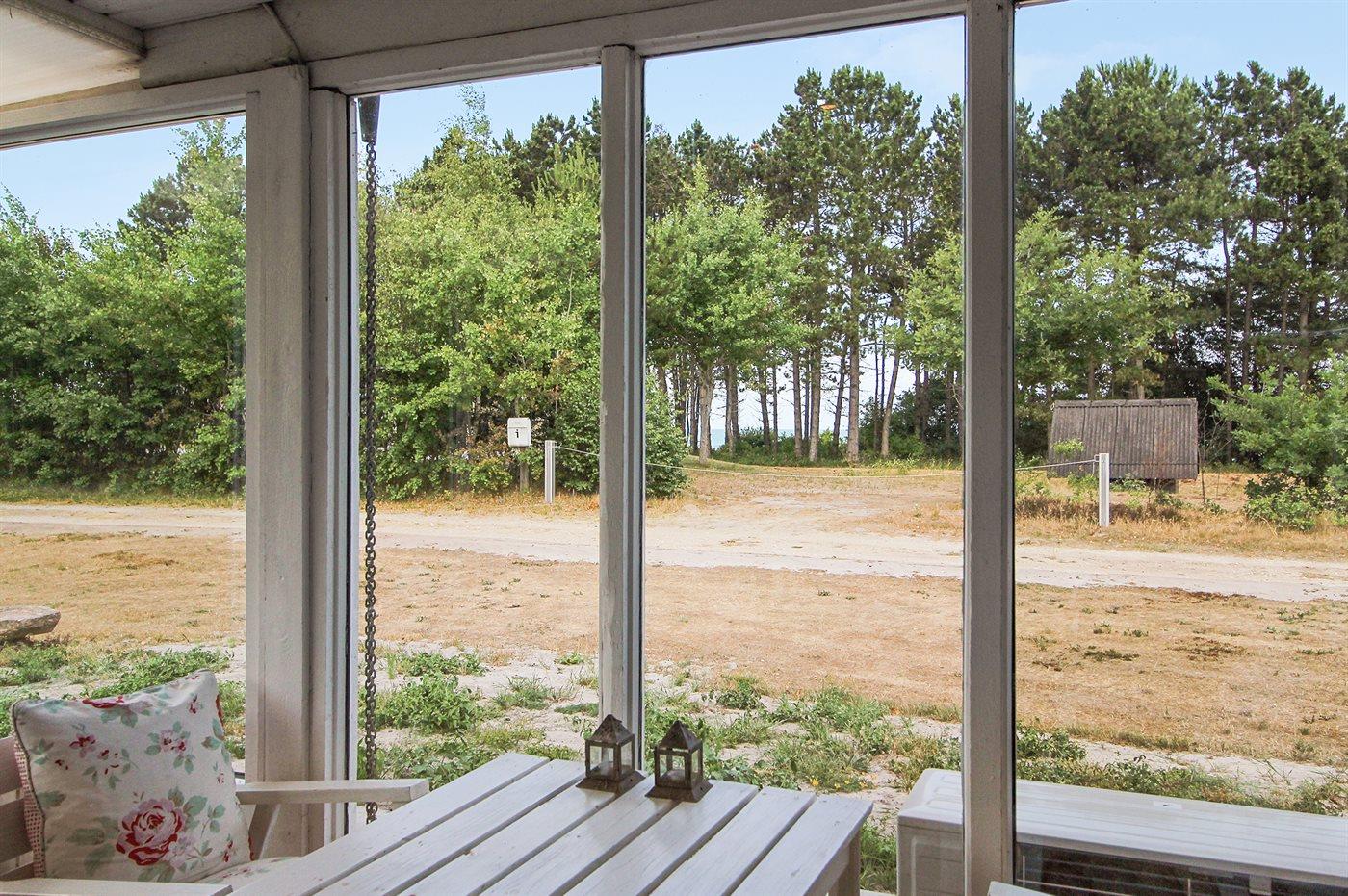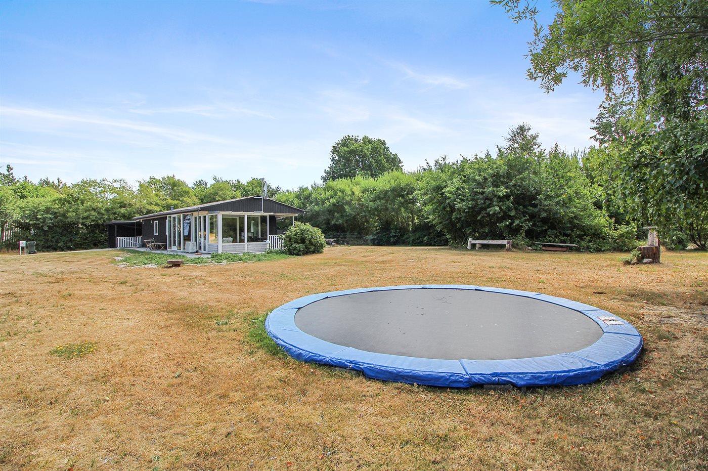 Ferieboligen er beliggende på en 1203 m² stor naturgrund. Der er 100 m til havet. Der er en badebro i nærheden. Nærmeste forretning er beliggende i en afstand af 1500 m. Til ferieboligen hører 25 m² terrasseareal. Desuden er der 16 m² overdækket terrasse. Der er redskabsrum. Trampolin. Der er carport til rådighed. Parkering ved ferieboligen.