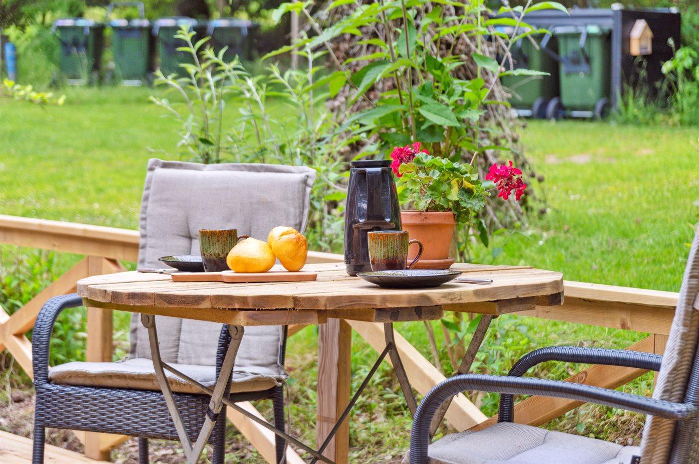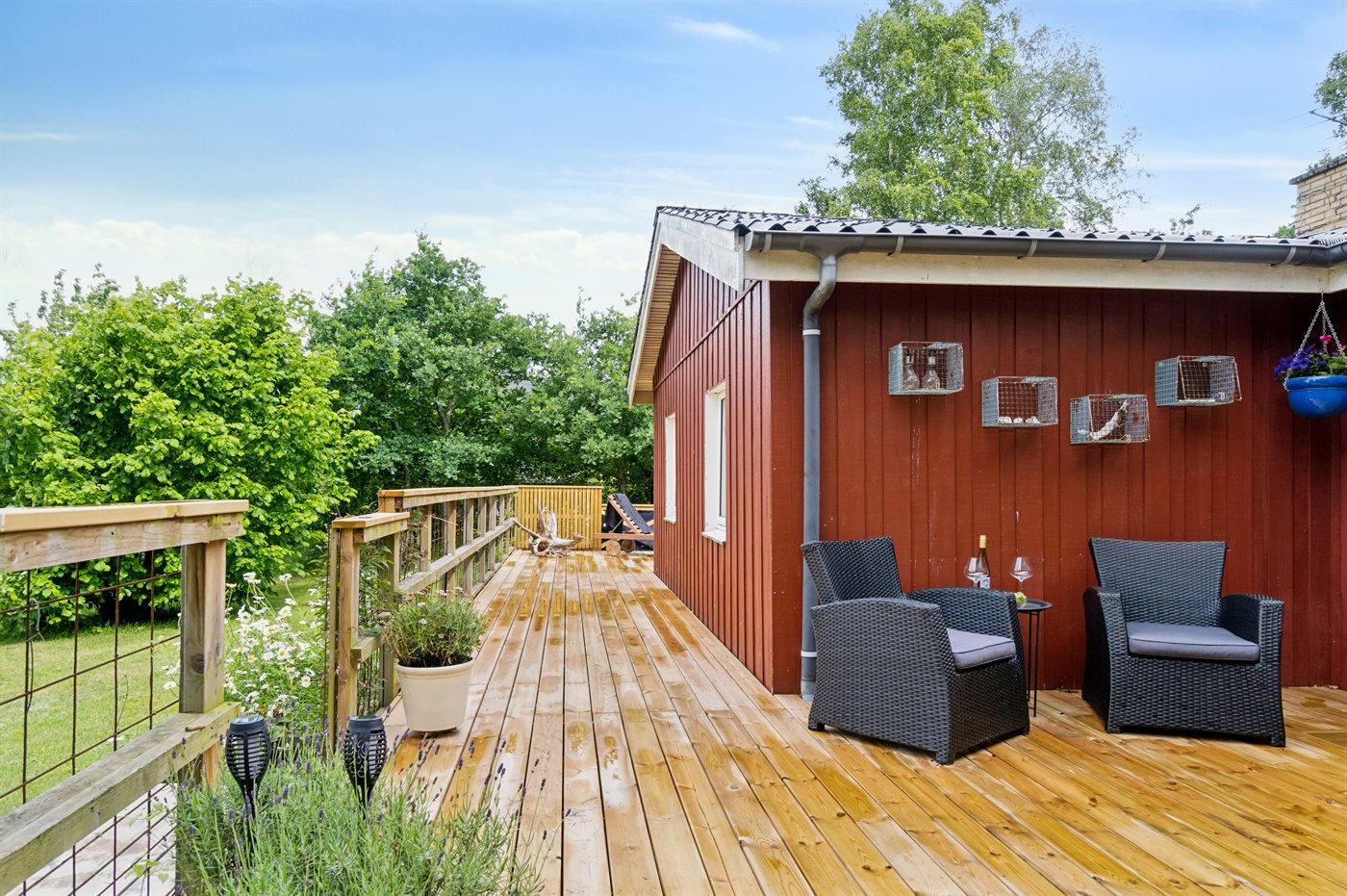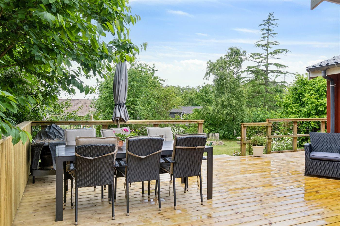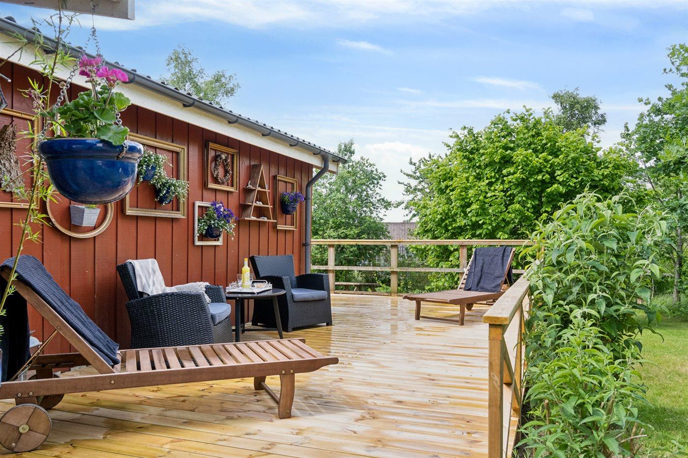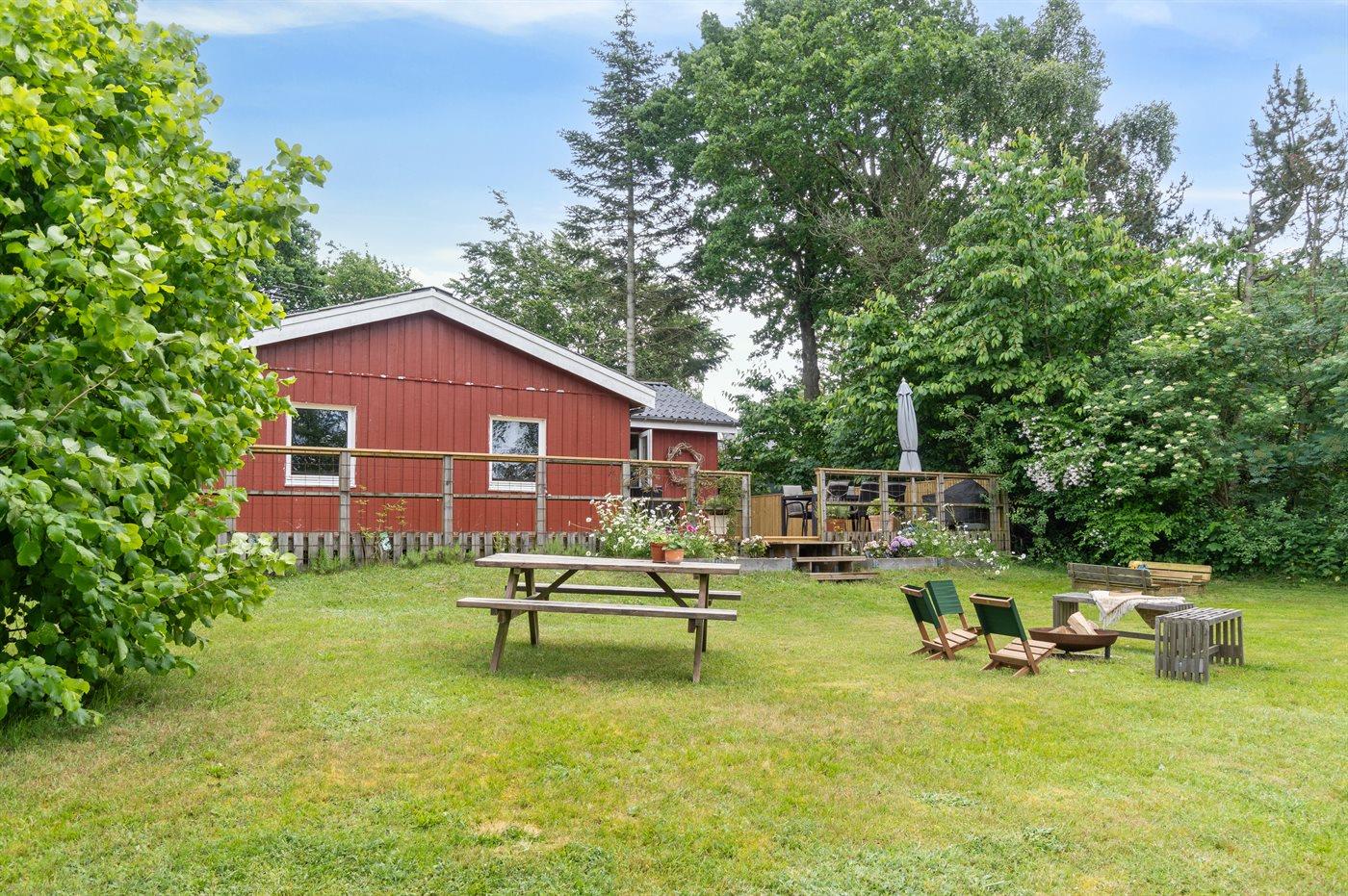 Hyggeligt sommerhus i naturskønne omgivelser nær stranden og med stor terrasse til afslapning.
