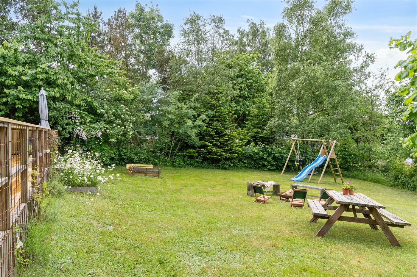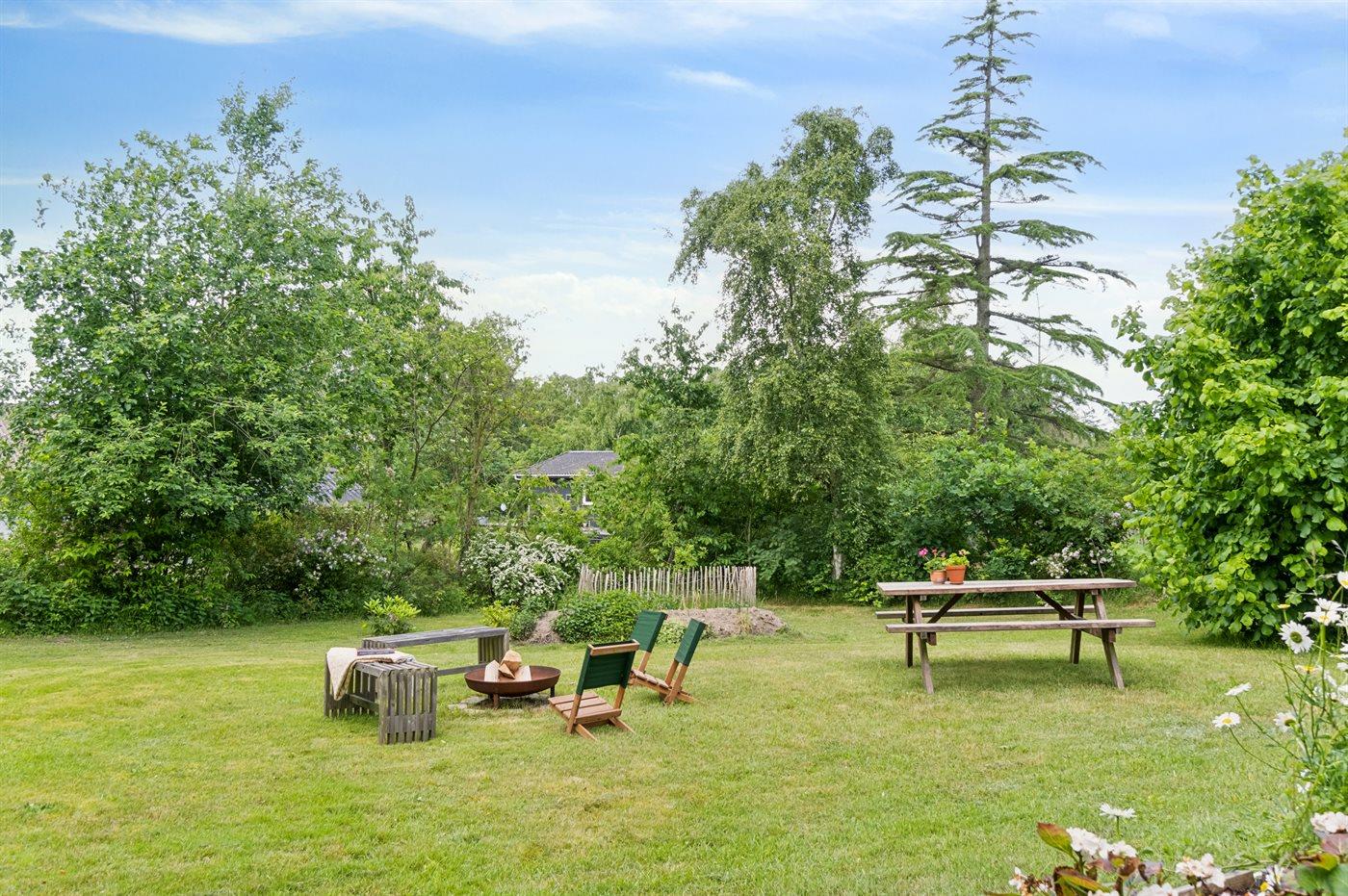 Ferieboligen er beliggende på en 1265 m² stor naturgrund. Grunden er indhegnet. Der er 1000 m til havet. Nærmeste forretning er beliggende i en afstand af 2000 m. Til ferieboligen hører 50 m² terrasseareal. Der er redskabsrum. Gynge. Sandkasse. Bålsted. Grill til rådighed. Parkering ved ferieboligen.