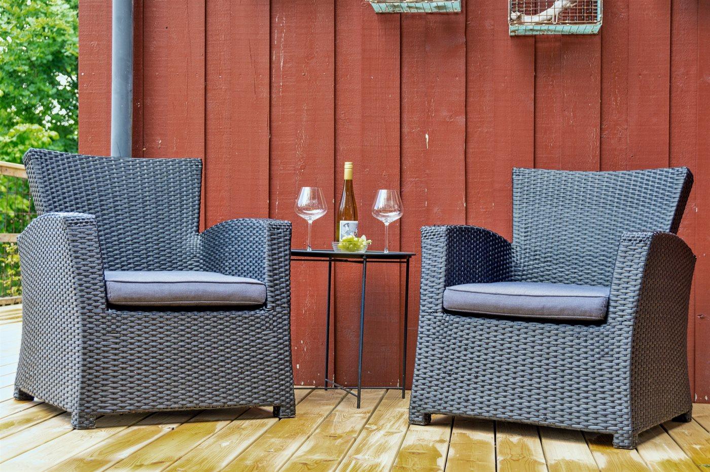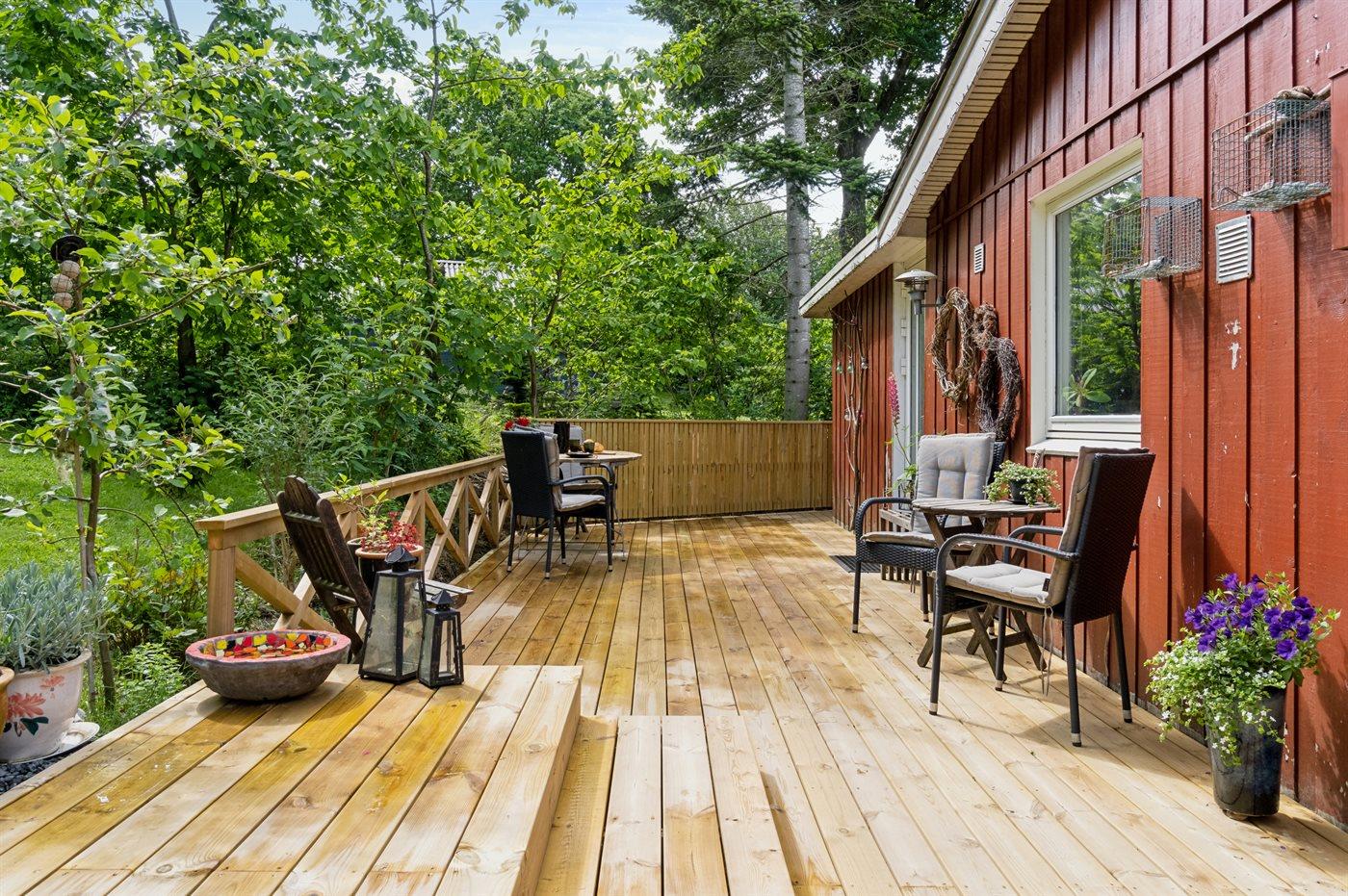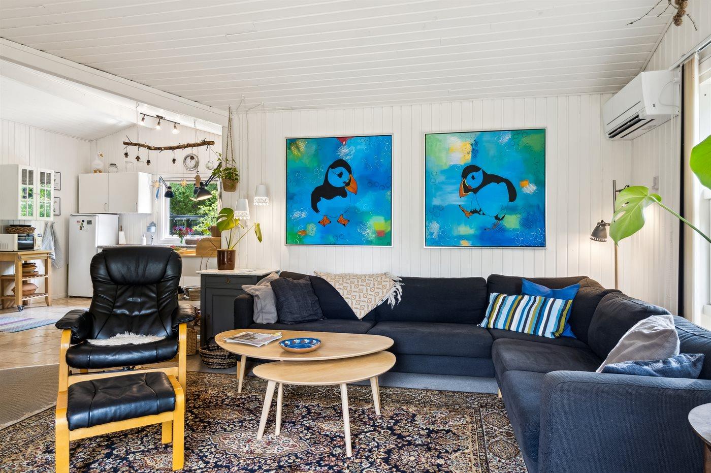 Dette sommerhus ligger på en ugeneret grund med udgang til skønne terrassearealer. Her findes gode udendørsmøbler, hvor i solen kan nydes i naturskønne omgivelser. Havet og den gode badestrand ligger lige i nærheden. Desuden byder området på en hyggelig havn.