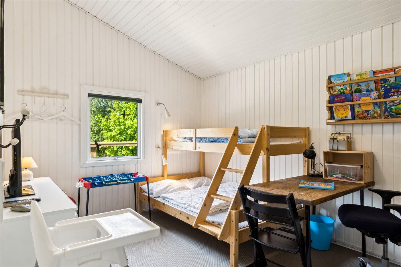 Der er i alt 3 soveværelser. Sovepladserne fordeler sig på: 4 sovepladser i dobbeltsenge. 3 sovepladser i køjesenge. Derudover er der 1 stk. barneseng.