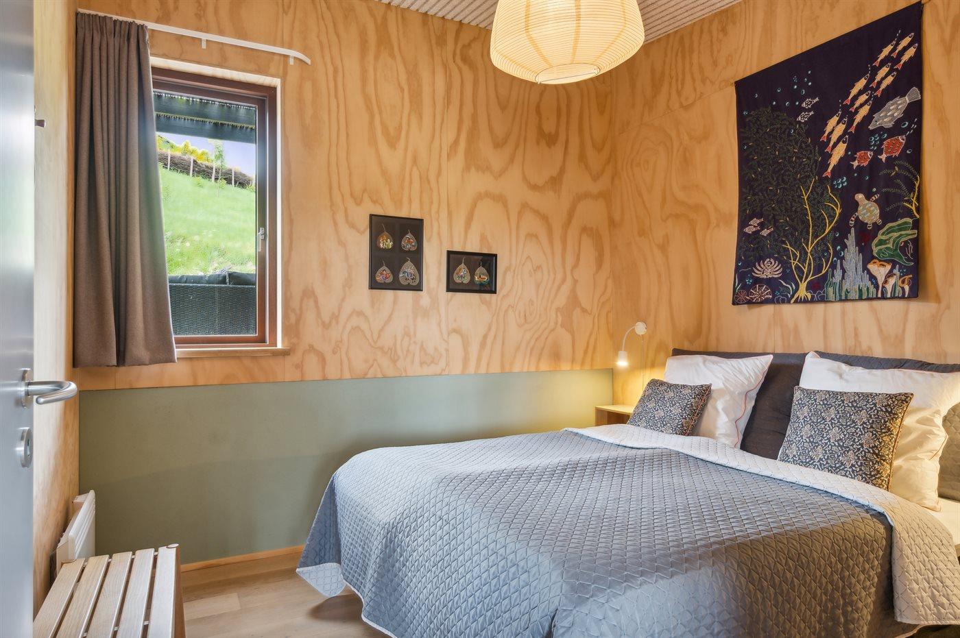 Der er i alt 3 soveværelser. Sovepladserne fordeler sig på: 4 sovepladser i dobbeltsenge. 2 sovepladser i køjeseng. Derudover er der 1 stk. barneseng.