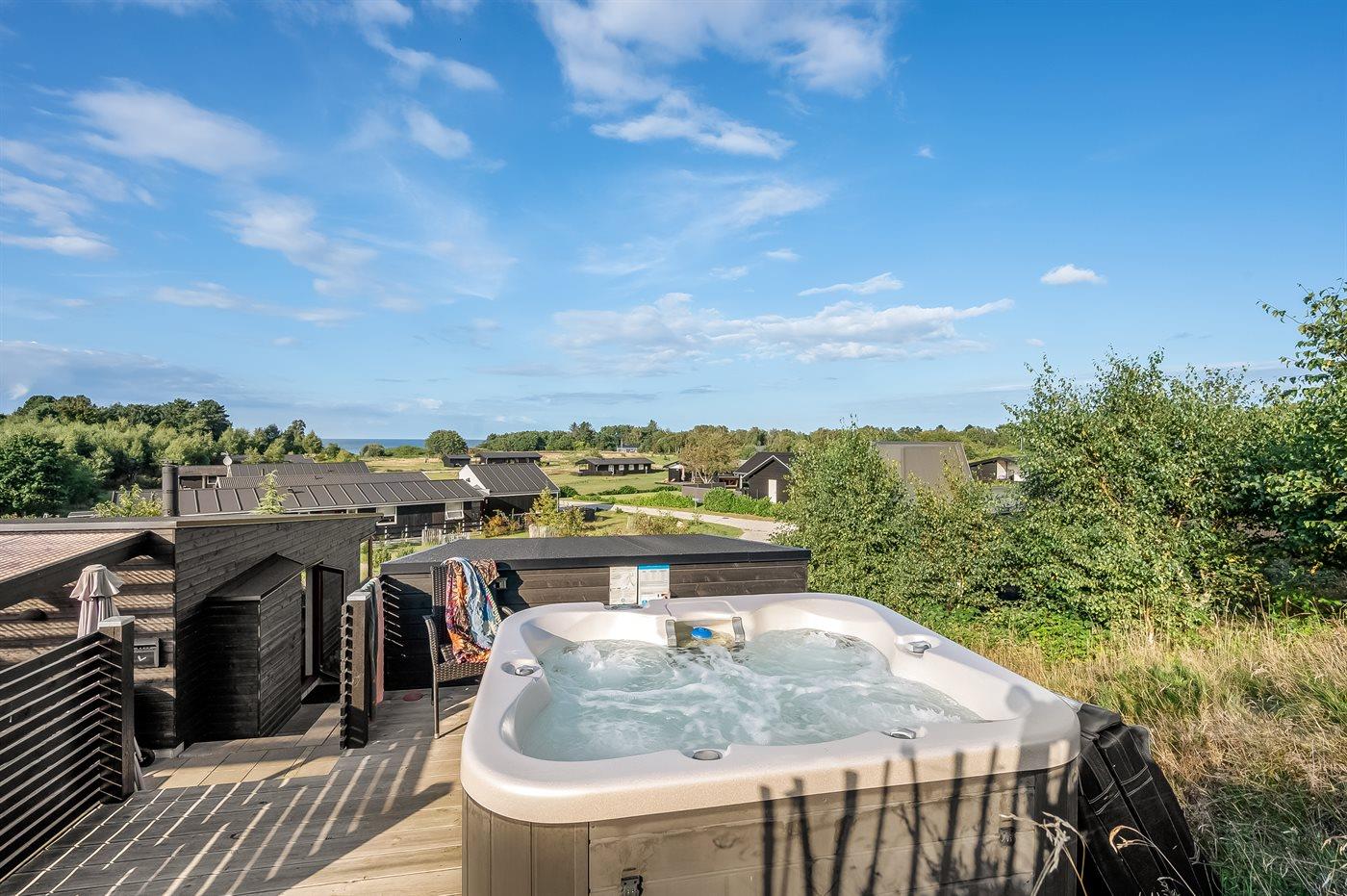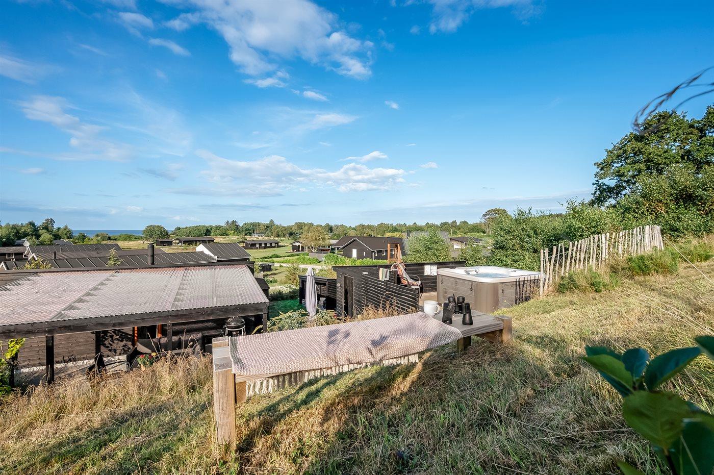 Moderne sommerhus fra 2021 med havudsigt og udendørs spa tæt på Bønnerup Strand.