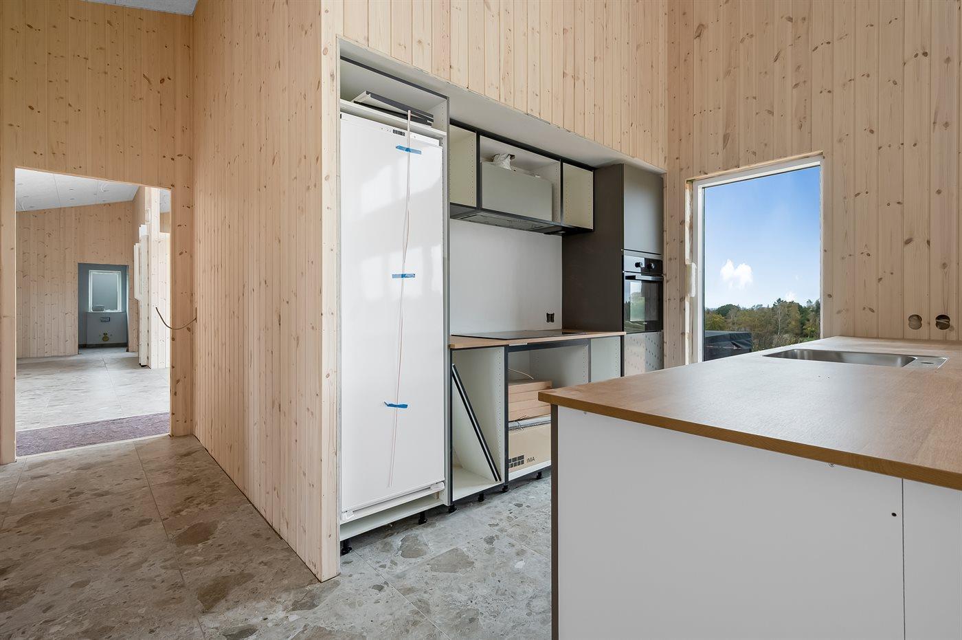 Køkkenet er udstyret med 1 køleskab. Der er 4 induktionskogeplader, varmluftovn samt opvaskemaskine.
