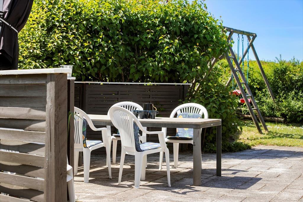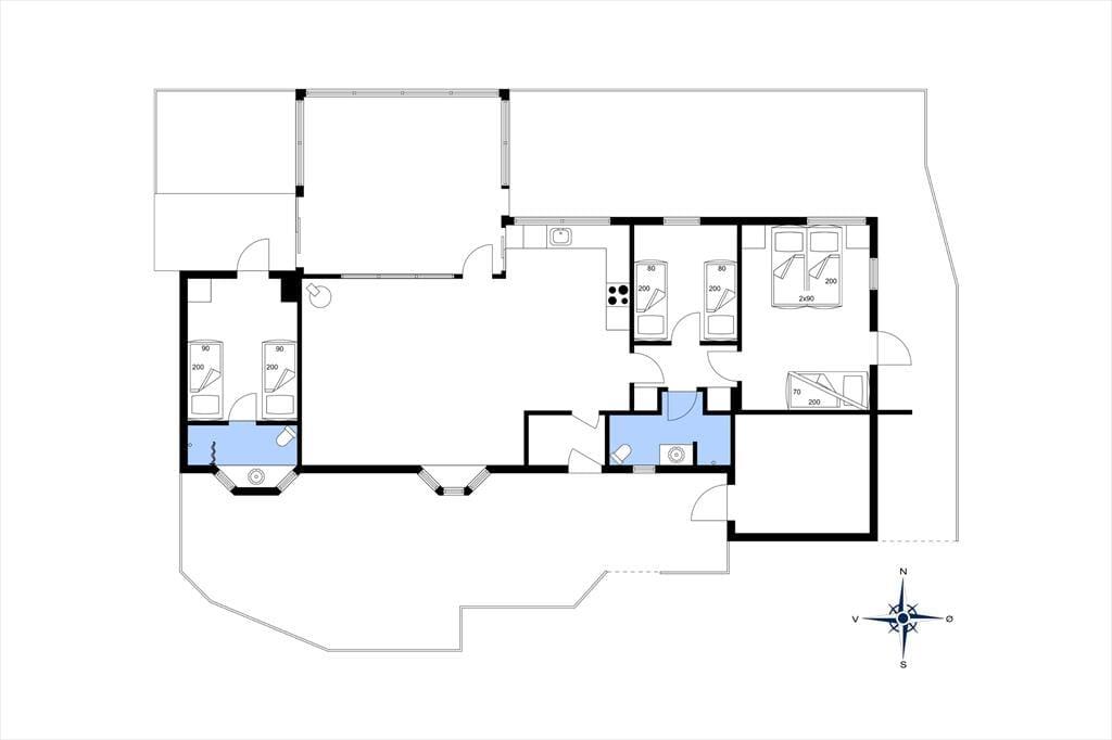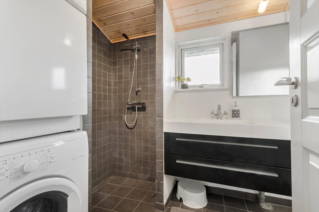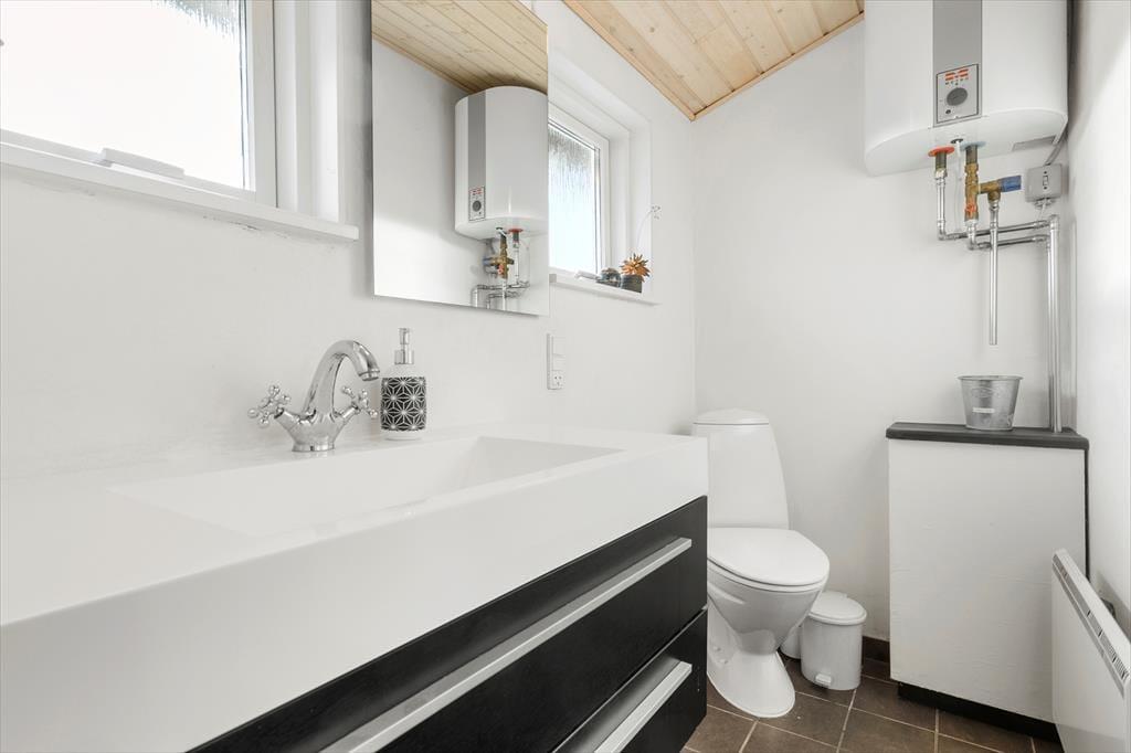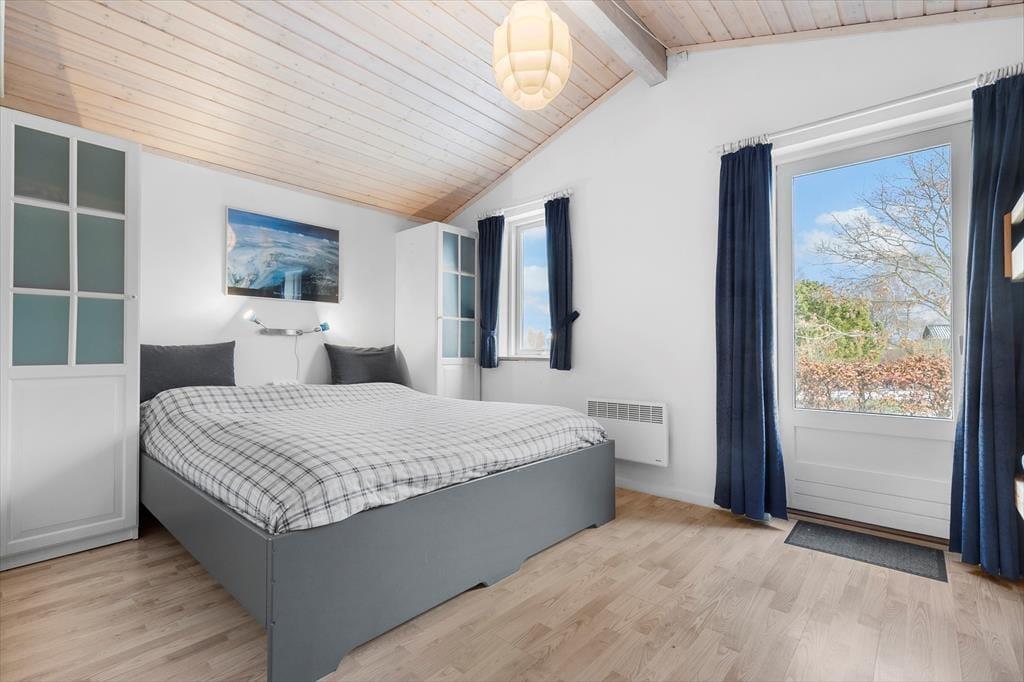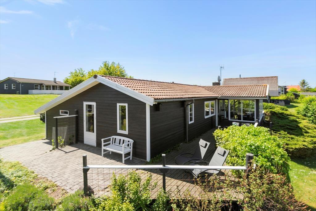 Hyggeligt og rummeligt sommerhus, hvor den store familie vil stortrives. Stort og veludstyret køkken i åben forbindelse med fin spiseplads samt dagligstue med gode møbler, hvor du kan se tv og slappe af til brændeovnens knitren. Fra køkken/stue er der udgang til dejlig havestue med spisepladser til alle husets gæster. Havestuen forlænger sæsonen eller gør en regnvejrsdag hyggelig. I den ene ende af huset er der badeværelse med vaskemaskine og tørretumbler samt 2 soveværelser - ét med dobbeltseng og køjeseng og ét med 2 enkeltsenge. I den anden ende er der ét stort soveværelse med 2 enkeltsenge samt badeværelse. En rigtig fin planløsning.