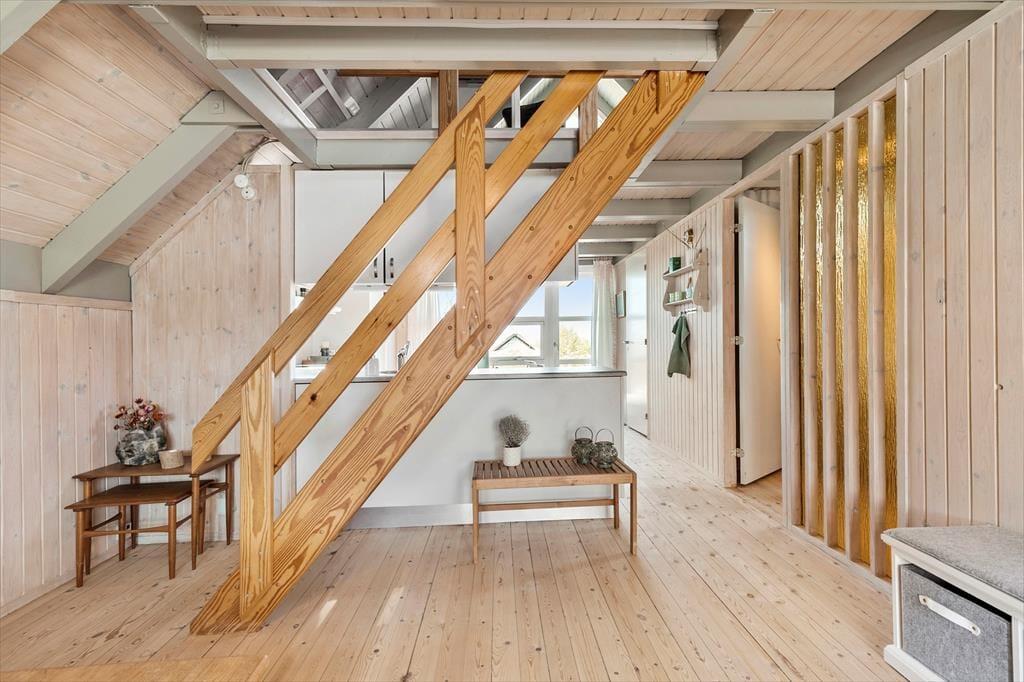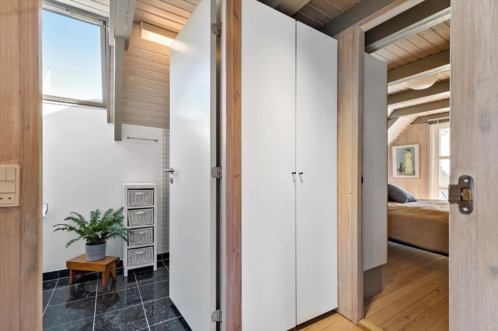 Velkommen indenfor: Træd ind i denne hyggelige familie oase, hvor hvert hjørne af det velholdte hus danner gode rammer for værdifuldt familiesamvær. Et sandt tilflugtssted, hvor roen hurtigt falder på, når I omfavnes af den dejlige atmosfære, der vækker minder om barndommens sommerhusferier. Gør dig klar til dagen med et frisk brusebad i det pæne badeværelse, inden du snupper den færdigbyggede kaffe fra køkkenet med på morgenterrassen. Her er parasollen slået op og børnene er allerede i fuld gang ned at lege i sandkassen, mens de glæder sig til strandturen i eftermiddag. Et glad, lyst og hyggeligt køkken med spisebordet tæt på og udgang til dejlig aftenterrasse samt 2 soveværelser. I stuen ovenpå danser solens stråler gennem vinduerne og I nyder udsigten og solnedgangen over havet i ”voksenhjørnet” efter, at de trætte feriebørn er puttet i det ene værelse lige neden under. De sover trygt i dobbeltsengen uden ben, så der ikke sker det store, hvis de skulle trille ud. I den anden ende af stuen ovenpå er der behagelig tv-afdeling med sovesofa. Herudover hyggeligt anneks med 2 gode enkeltsenge.