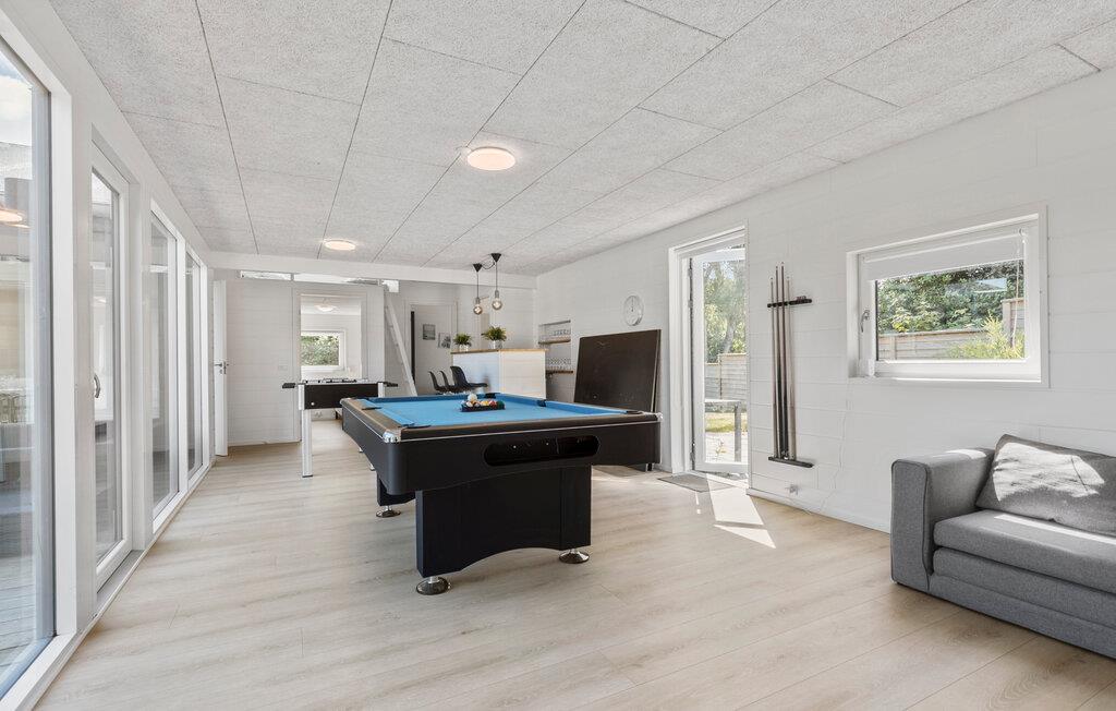 Dette yderst komfortable sommerhus på Bønnerup Strand lægger op til en ferie medren afslapning og en lang række fritidsaktiviteter. Huset er ideelt til flere familier eller en større gruppe, for der er masser af plads og kun få minutter til den maleriske kyst. Begynd dagene med en lækker morgenmad i det rummelige køkken og find sammen ud af, hvad dagen skal bruges på. I kan se frem til mange sjove stunder i indendørspoolen til masser af vandsjov samt afslapning i spabadet og saunaen. Der er også et spabad udenfor. Billard- og bordtennisbordene inviterer til en hyggelig hjemmedyst. Feriens yngste deltagere kan hoppe en tur på trampolinen, gynge og spille fodbold eller hygge sig med andre boldspil.