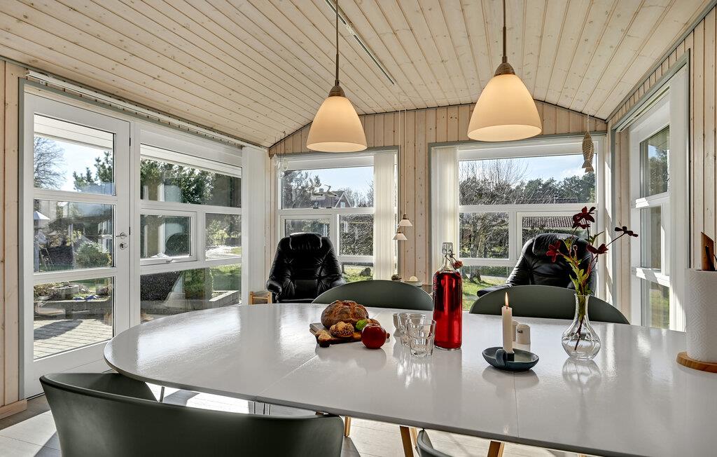Glæd jer til at slappe af med hele familien i de lyse værelser i det komfortable hus. Den hjemlige indretning sikrer en hyggelig atmosfære. Lav mad sammen med en vidunderlig udsigt til haven, nyd måltiderne ved spisebordet, hvor I også nyder en smuk udsigt til de grønne omgivelser. Senere kan I føle jer godt tilpas i sofaen, efter en vidunderlig dag på stranden eller på udflugter. Tænd op i brændeovnen om aftenen og arranger en selskabelig film- eller spilleaften.