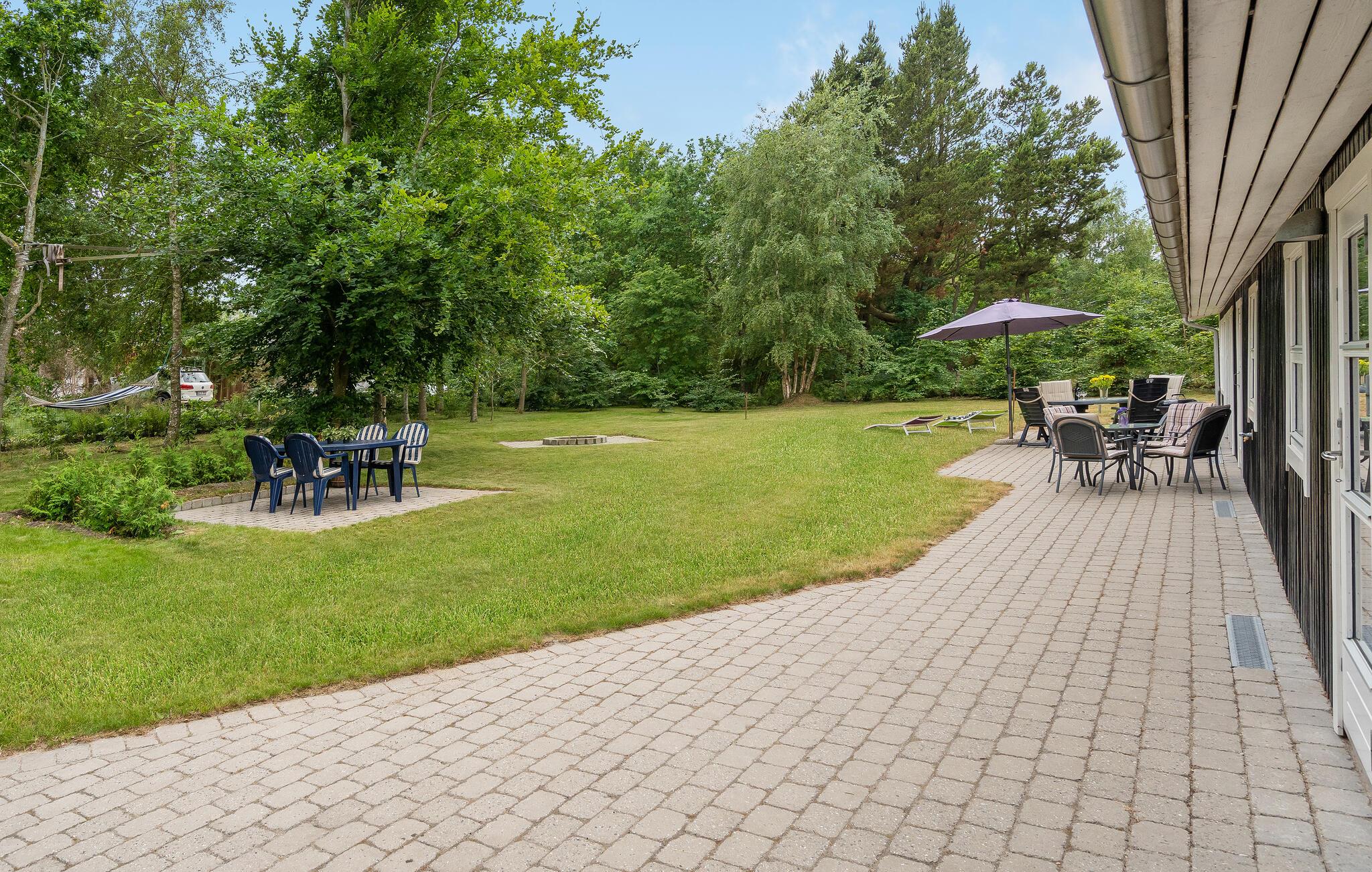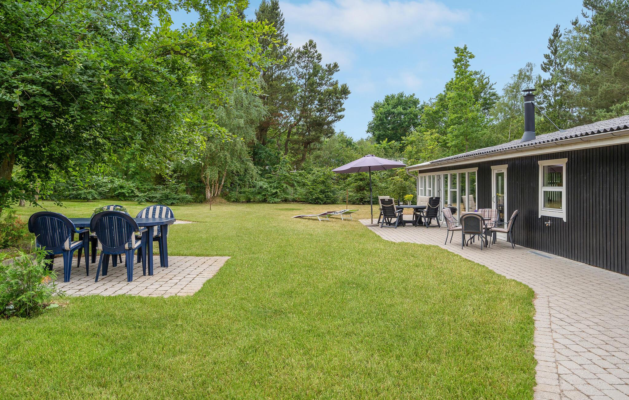 Feriehusets udvendige område er godt vedligeholdt. Her kan Iu slappe af i den indhegnede have, have en hyggelig grillaften og nyde mange gode timer udendørs.