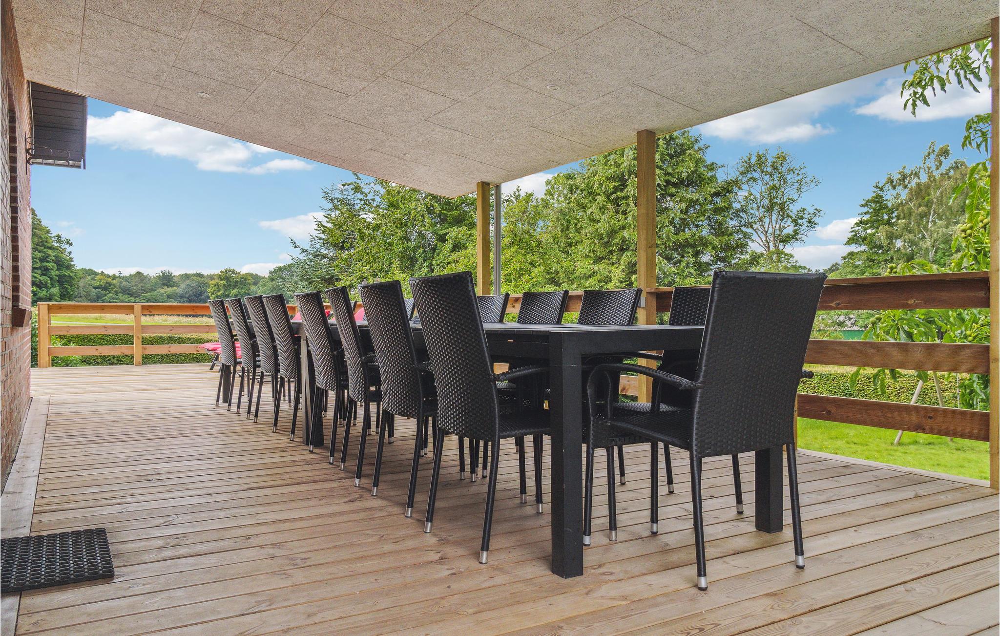 I Brøndstrup på Djurslands nordkyst ligger dette sommerhus på stor grund med fin have, med mange frugttræer og blomsterbede, samt plæne med plads til leg og boldspil. Huset var oprindeligt et stuehus og er nu renoveret og omskabt til et dejligt rummeligt feriedomicil. Her er bekvemme soveværelser og plads til i alt 17 gæster, med fire sovepladser på madrasser på gulvet. Der er slet ikke tid til at kede sig, for her er aktivitetsrum med billardbord og en stor stue med behagelige møbler og tv. Køkkenet er pænt og velholdt og har plads til at I kan lave mad sammen. Der er opvarmet garage med plads til to biler og her står der et bordtennisbord.