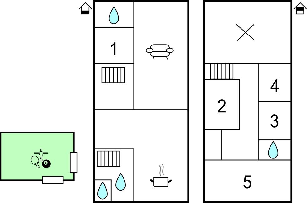 Soveværelse (nr. 5) - 1 Soveplads. (Enkeltseng(e)). 2 Sovepladser. (Dobbeltseng(e)).