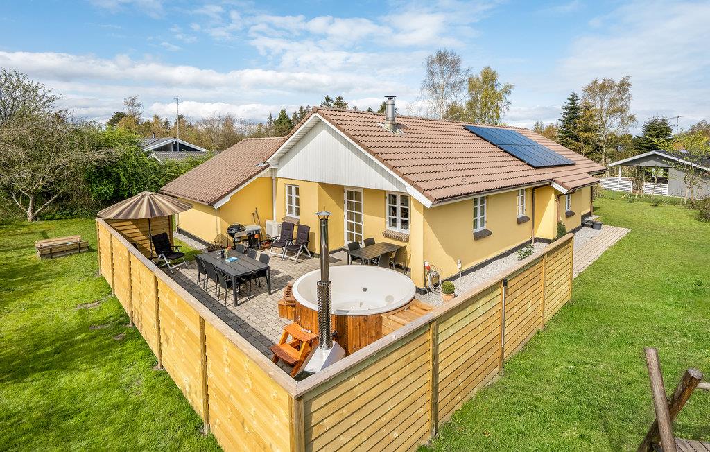 Dejligt feriehus i Glesborg med spabad, sauna, vildmarksbad og ladestandere til elbiler.