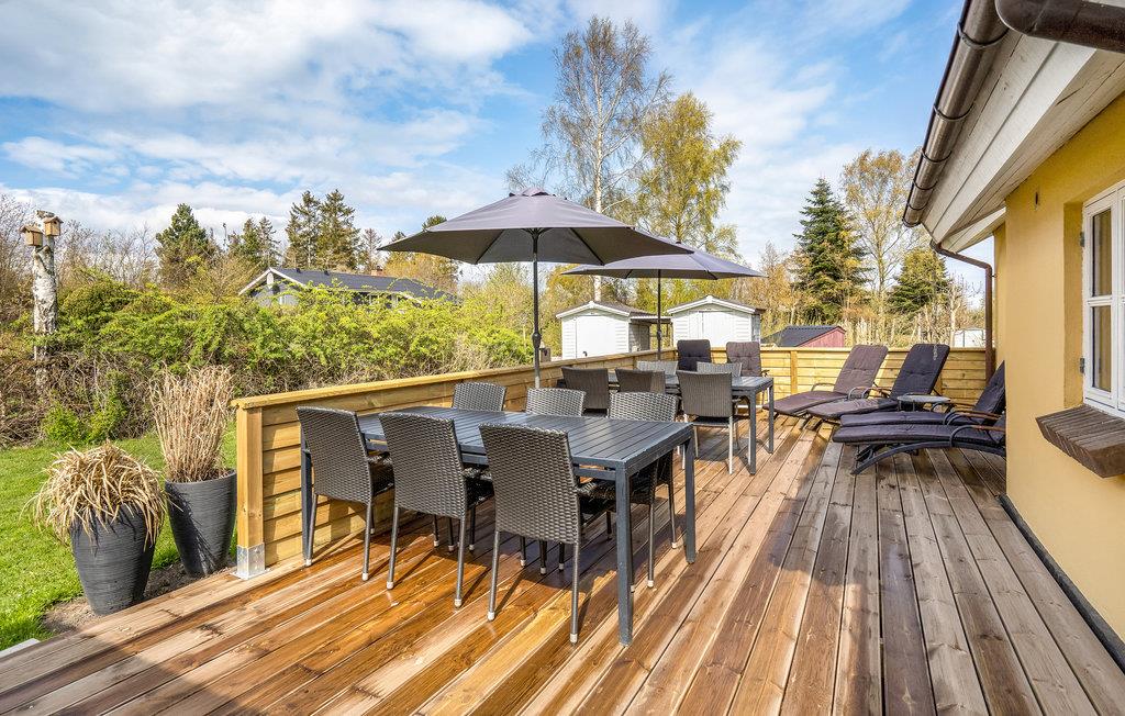 Udendørs finder I et luksus-vildmarksbad, hvor hele ni personer kan sætte sig til rette og bade i den friske luft. Imens kan børnene frit løbe rundt på den ene terrasse, som er indhegnet. Fra køkken-alrummet er der direkte adgang til endnu en terrasse på hele 50 kvadratmeter, så her kan I nemt bære retterne ud til en lækker sommermiddag. På parkeringspladsen er der to ladestandere til el-biler.