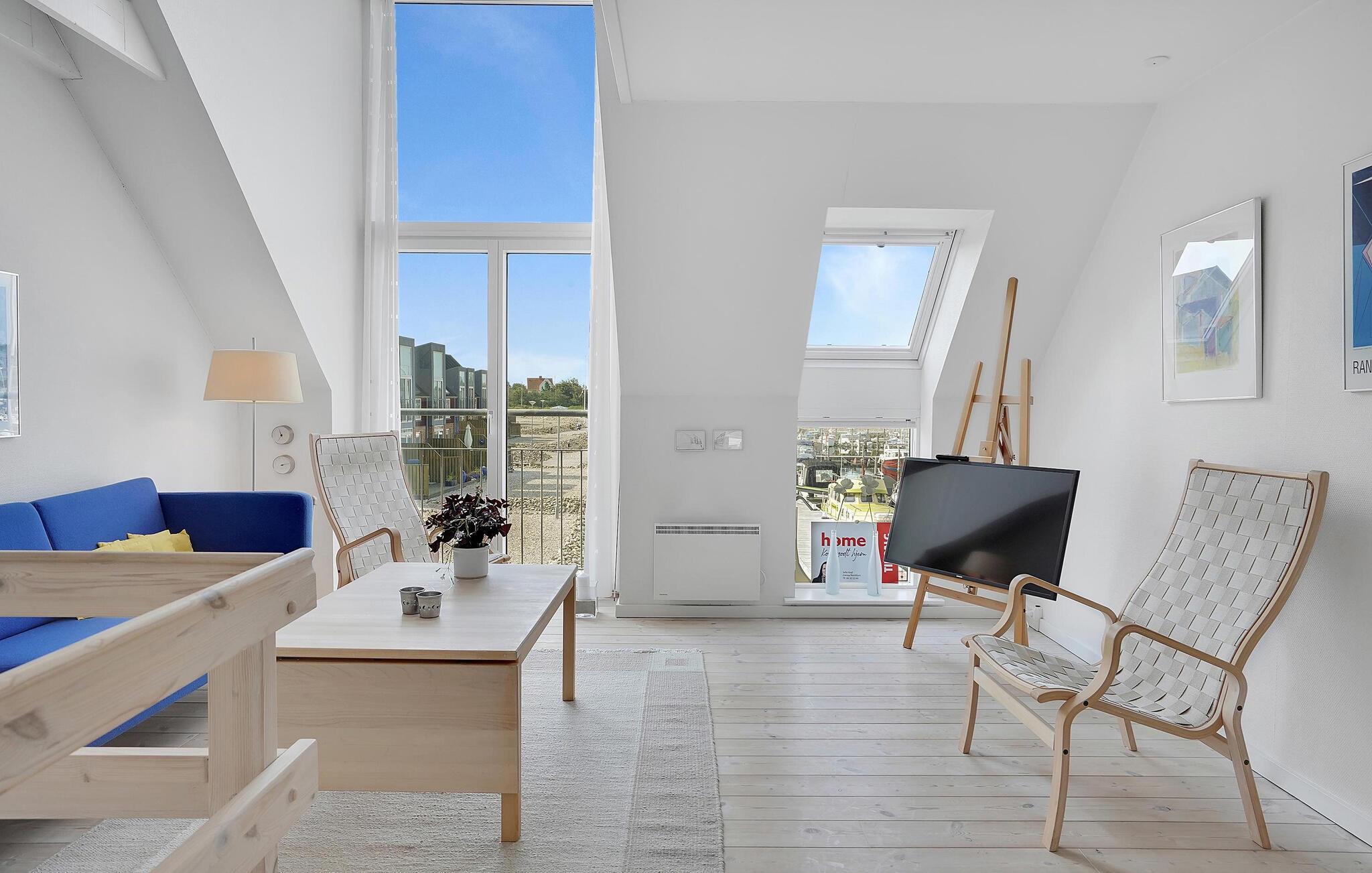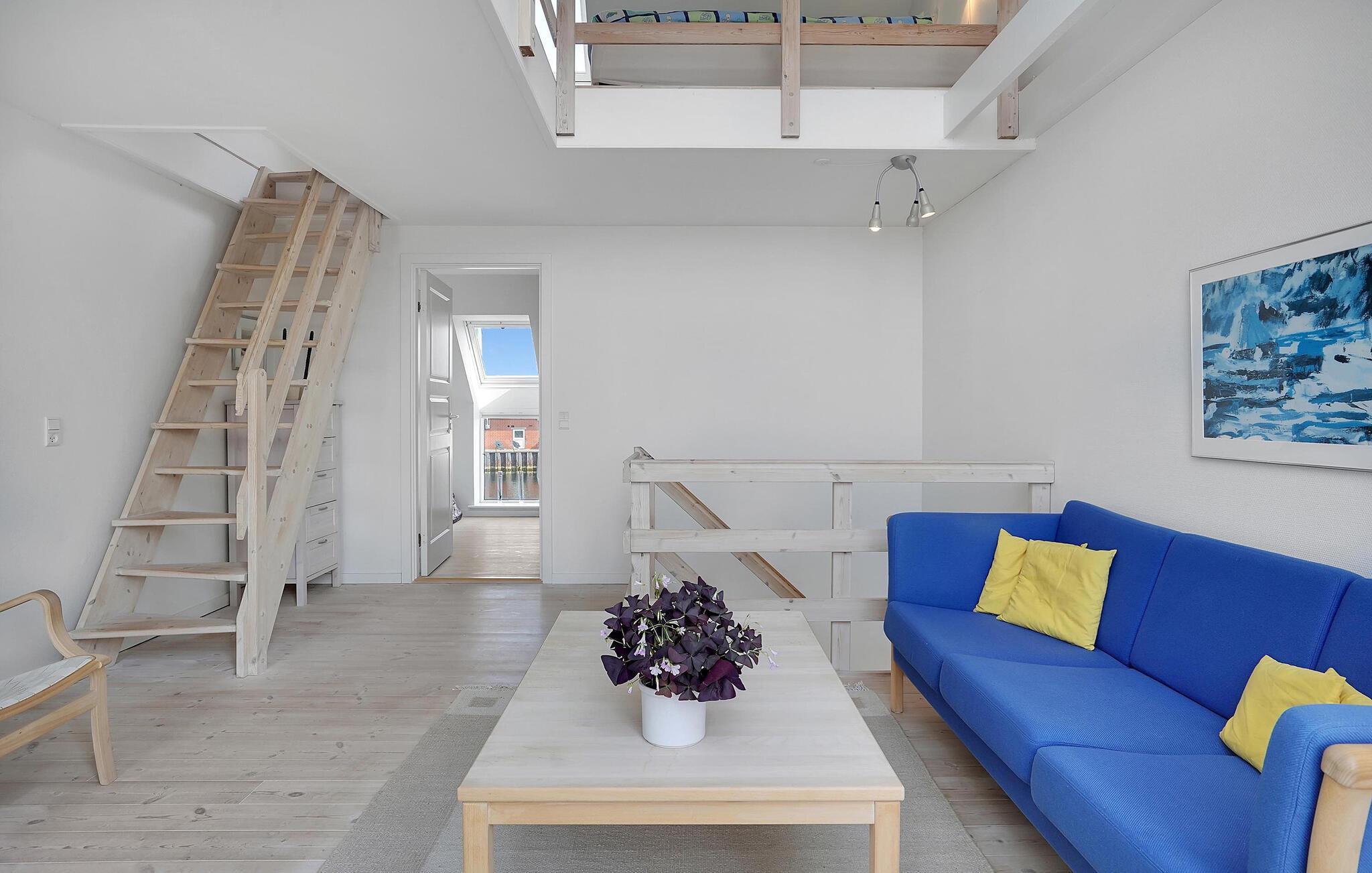 Oplev udendørsområdet og slap af på den vindbeskyttede terrasse. Nyd morgenmaden under den store parasol eller afslut dagen med et glas vin, mens I ser havnens travle liv. Den anden terrasse på bagsiden byder på endnu et behageligt opholdsområde.