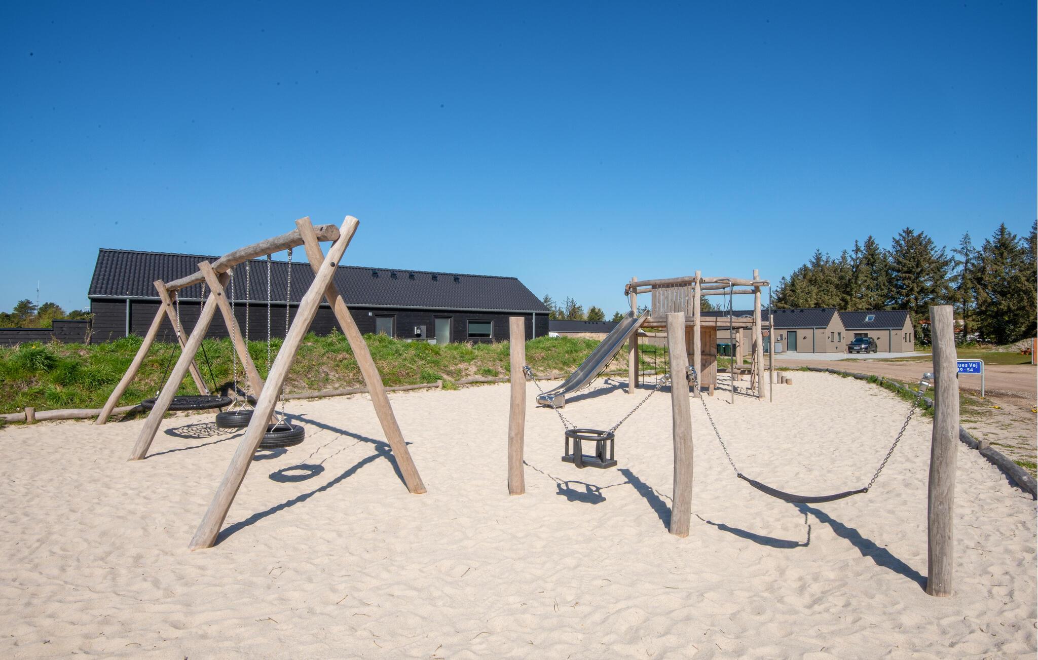 Udenfor venter den overdækkede terrasse – det perfekte sted til morgenkaffe i solen eller lange aftener under tæpper og stjernehimmel. Og som prikken over i’et er der en udespa, hvor boblerne gør arbejdet, mens I læner jer tilbage og nyder ferien.