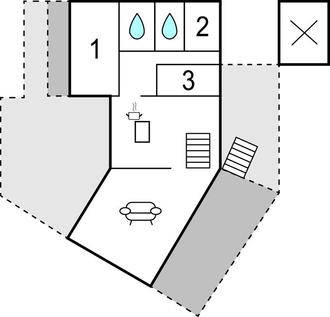 Badeværelse 6m2 (nr. 1) - WC. Varmt og koldt vand. Bruser