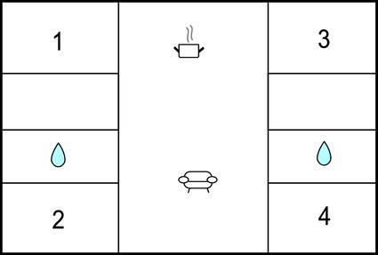 Køkkenet har v/k vand