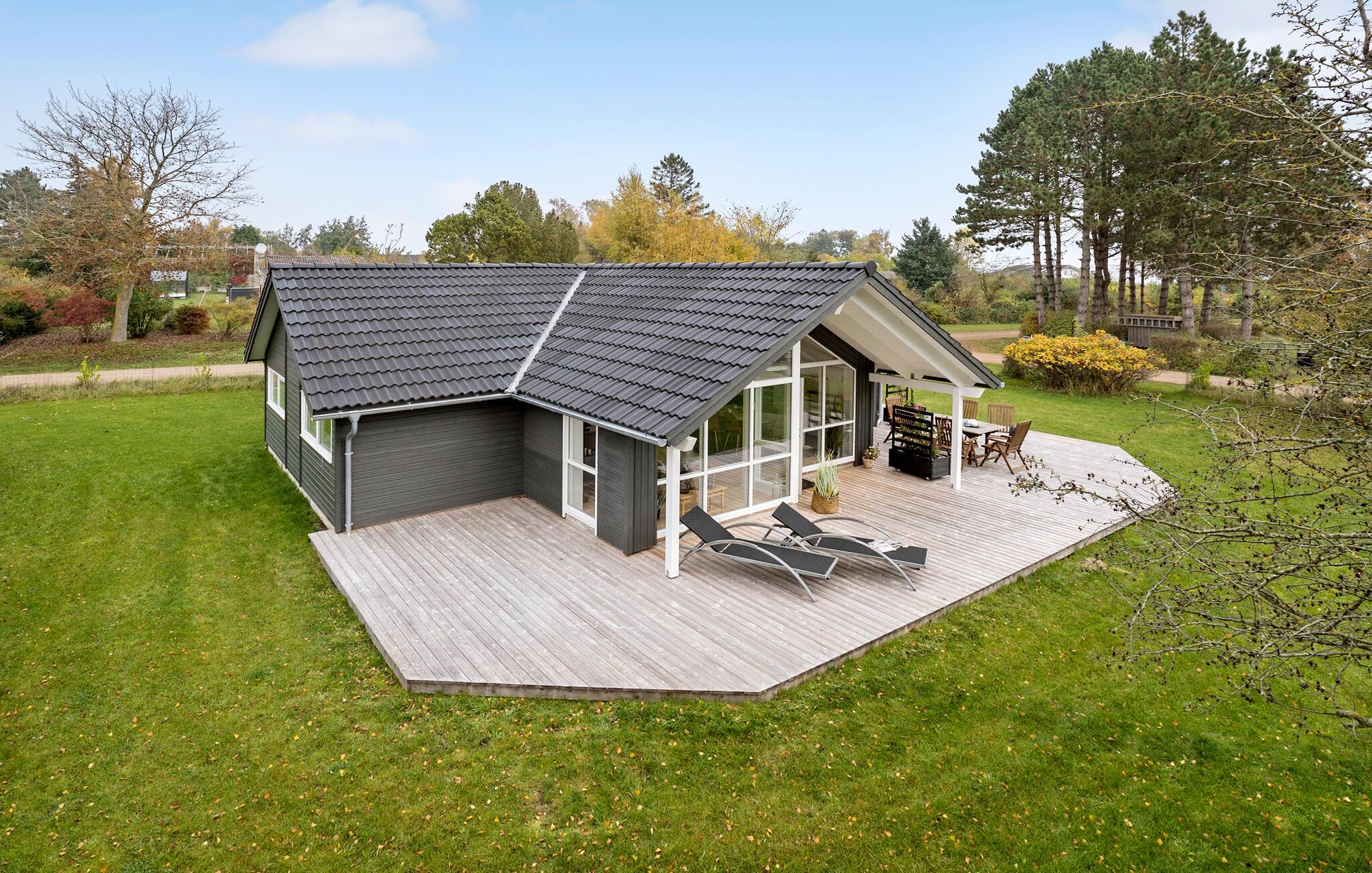 Charmerende feriehus ved Bønsvig Strand med stor terrasse og moderne faciliteter til afslapning.