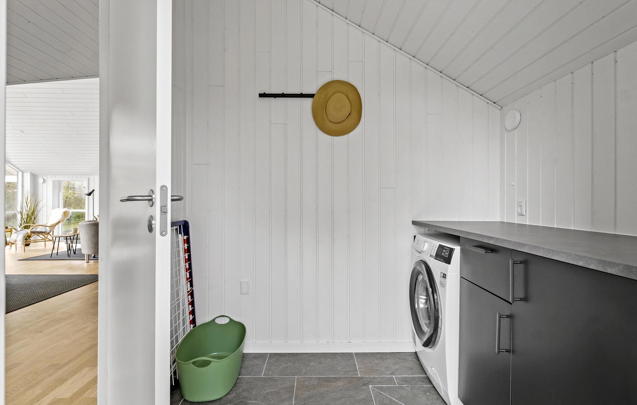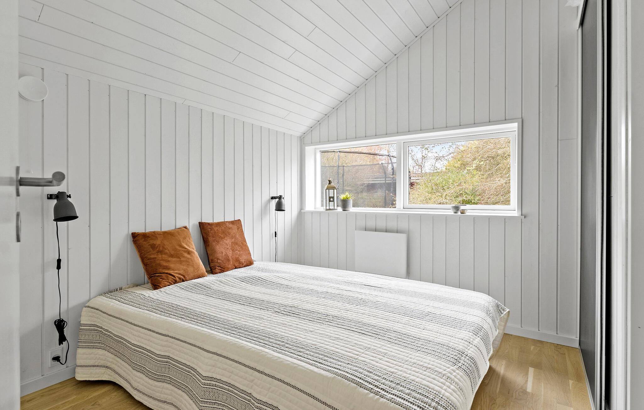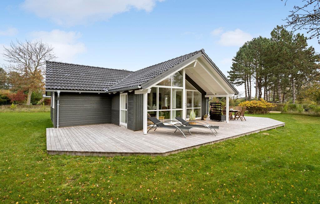 Dette smukke feriehus med store vinduespartier byder på et hyggeligt og indbydende miljø. Den smagfulde indretning og det velovervejede design skaber den perfekte ramme for afslapning og kvalitetstid med familien. Det rummelige og lyse opholdsområde er ideelt til at glemme hverdagen. Den store træterrasse, der omkranser store dele af huset, er perfekt til solbadning, grillmad og fælles måltider i det fri. Imens kan børnene lege og tumle frit i haven.