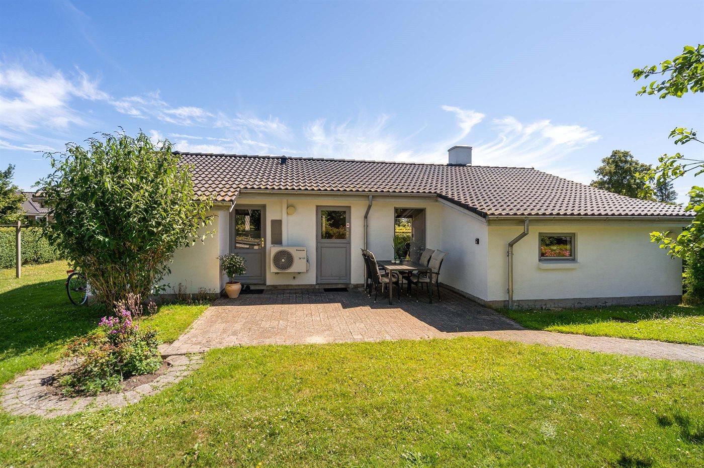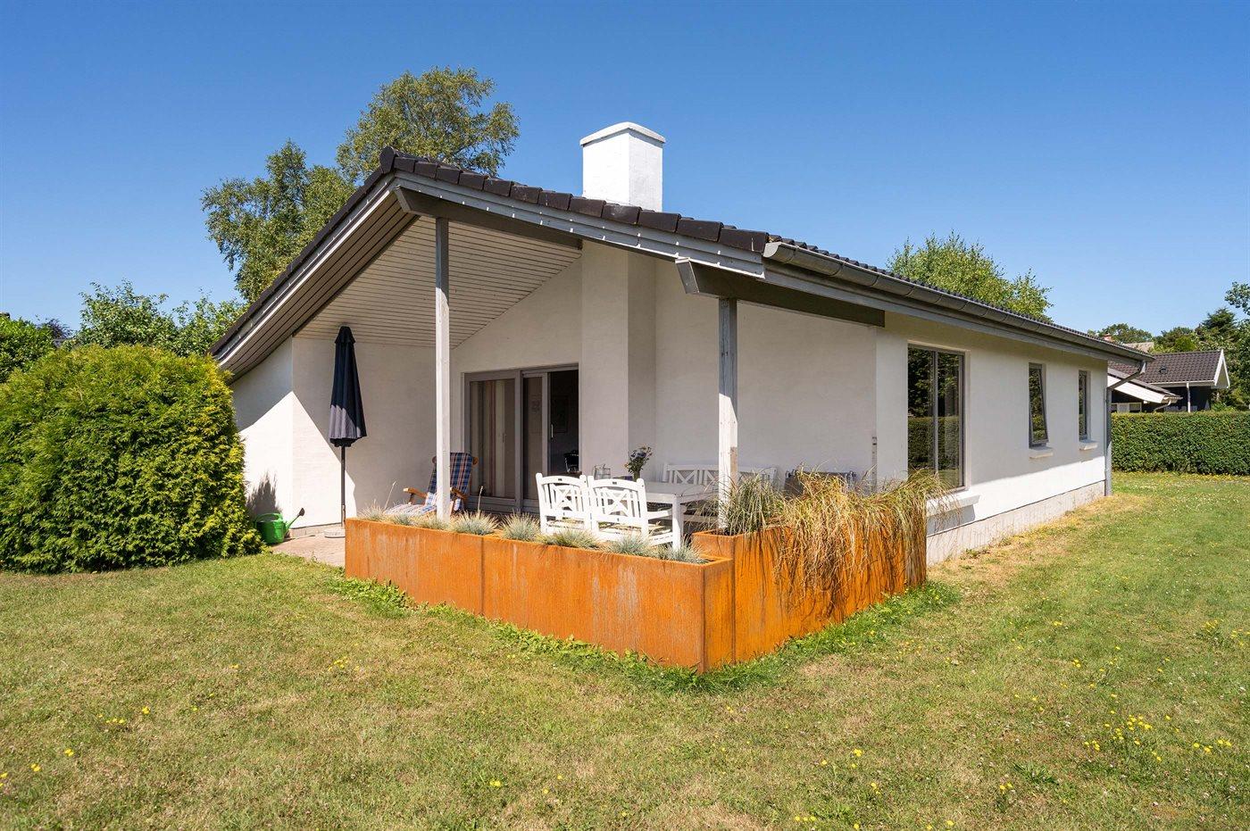 Hyggeligt sommerhus i Bøsøre med terrasse og kun 200 m til badestrand og badebro.
