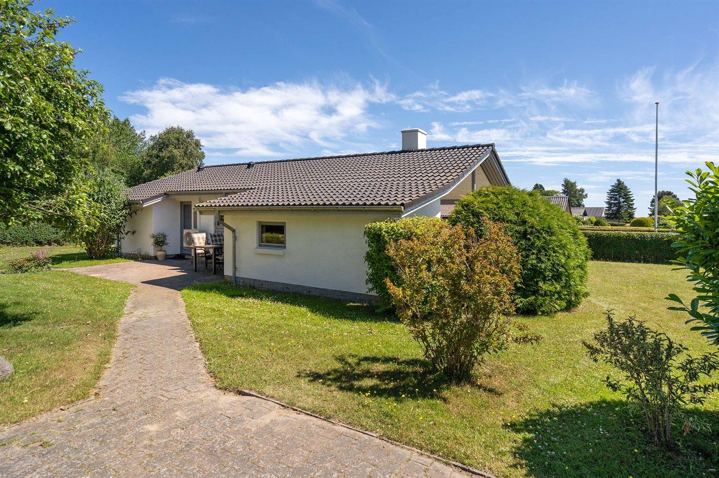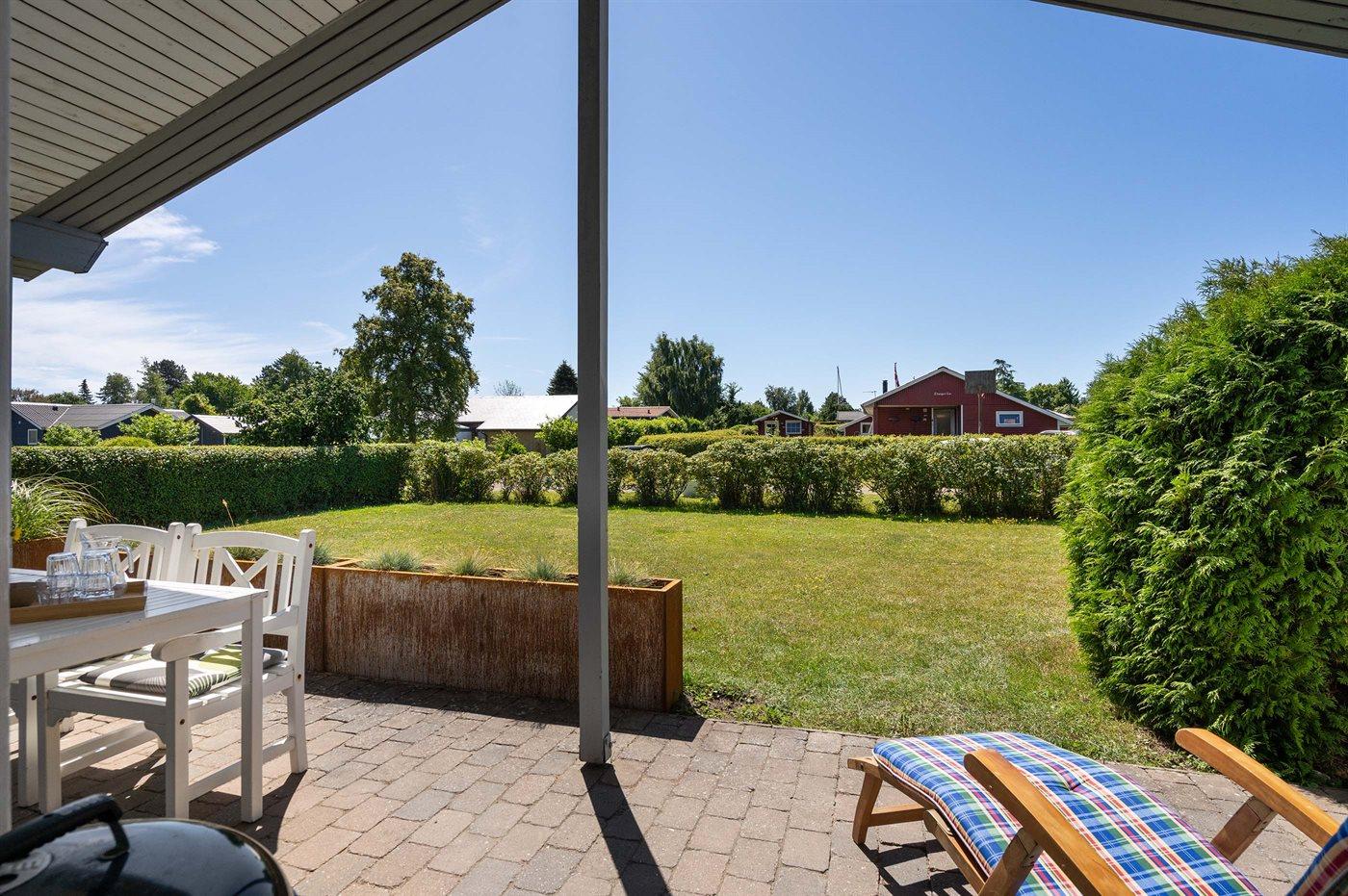 Ferieboligen er beliggende på en 800 m² stor havegrund. Der er 200 m til havet. Der er en badebro i nærheden. Nærmeste forretning er beliggende i en afstand af 1000 m. Til ferieboligen hører 15 m² terrasseareal. Desuden er der 24 m² overdækket terrasse. Grill til rådighed. Parkering ved ferieboligen.